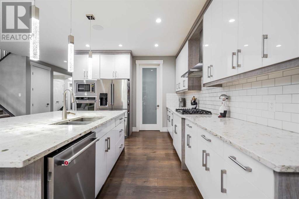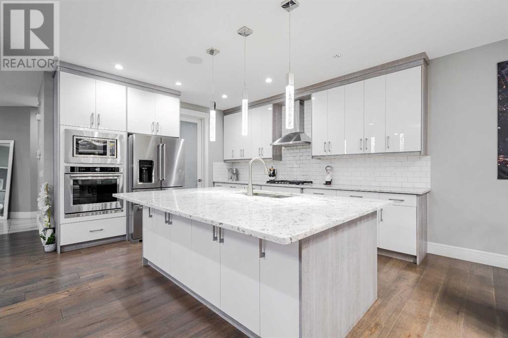 Welcome to an unparalleled residence in the heart of Evanston, Calgary, where luxury living and breathtaking views converge. This 2016-built gem offers an extraordinary living experience, boasting 5 bedrooms, 4 bathrooms, and a total of 3,746.0 square feet of beautifully designed living space.Prepare to be enchanted by the once-in-a-lifetime opportunity to own a home with stunning vistas that will leave you speechless. Enjoy captivating views from various vantage points, making every moment spent in this home a truly memorable experience.As you step inside, you'll be greeted by 9-foot ceilings on the main floor, creating an open and airy ambiance that exudes a sense of grandeur. The 8-foot doors on the main floor add a touch of elegance, complementing the overall upscale design.Elegance and practicality unite with the engineered hardwood flooring, offering both style and durability. The gourmet kitchen, complete with built-in KitchenAid appliances, is a culinary enthusiast's dream, providing the perfect space to create culinary masterpieces and entertain guests with ease.Step outside to discover the true essence of indoor-outdoor living, as two decks in the back of the house beckon you to embrace the serene surroundings and revel in the tranquility that Evanston offers.The basement is a true entertainer's paradise, featuring a sophisticated wet bar with a commercial wine fridge, ensuring that your collection of fine wines is always at the perfect temperature for indulgence.Parking is a breeze with a triple parking driveway, providing ample space for your vehicles and guest parking, making hosting gatherings a seamless experience.Located in the sought-after neighborhood of Evanston, this home offers the perfect blend of luxury, comfort, and convenience. Embrace the tranquil surroundings and enjoy the close proximity to amenities, schools, parks, and green spaces, making it an ideal place to call home.Seize this extraordinary opportunity to own a slice of paradise in Evanston, Calgary. Arrange your private viewing today and experience the epitome of luxury living in this remarkable residence. (id:22211)