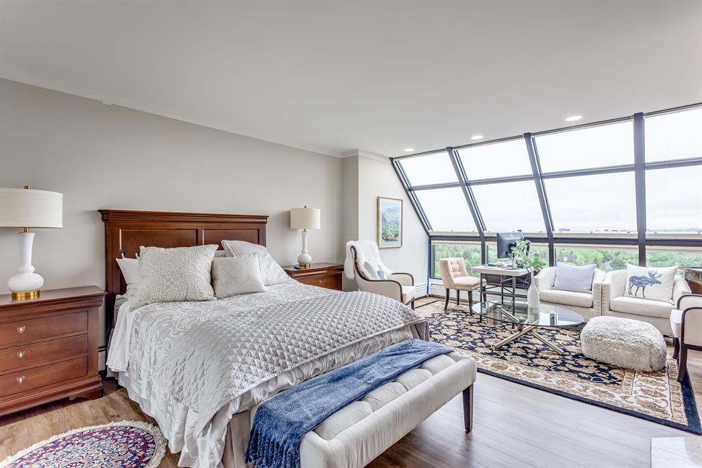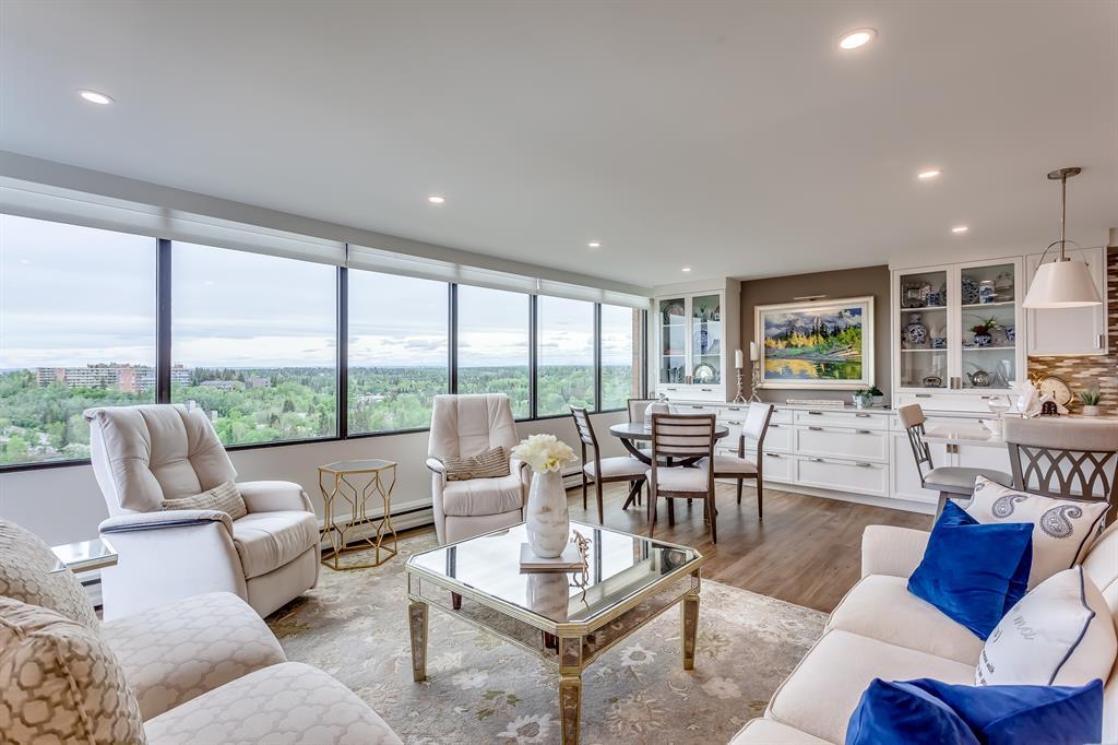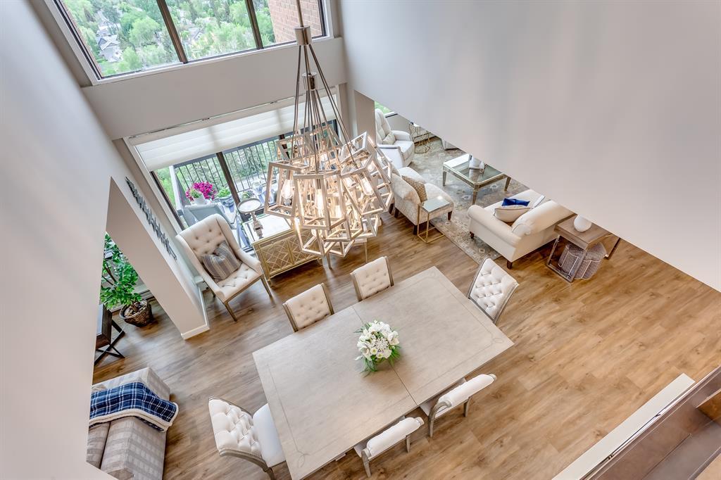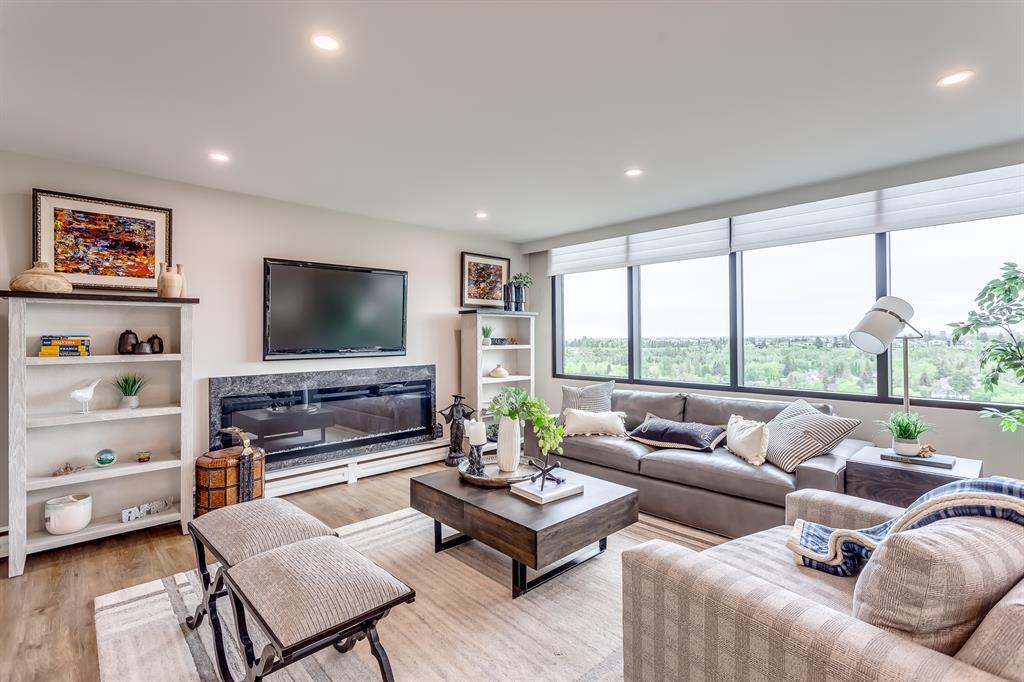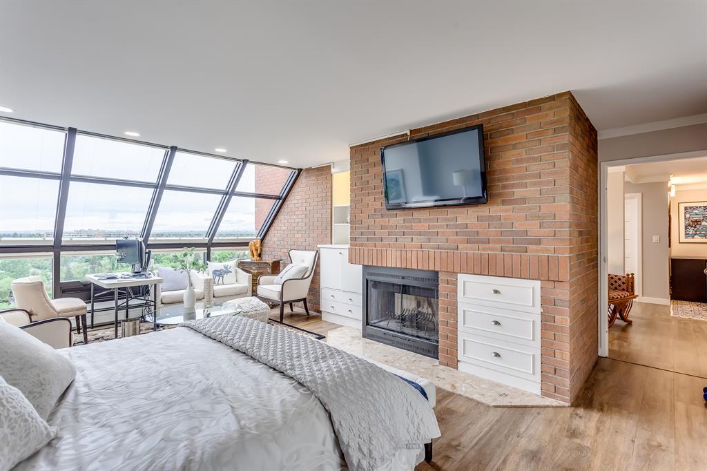 Welcome to an exquisite two-story Roxboro penthouse offering unrivaled views of the Elbow River valley and Rocky Mountains. This stunning residence presents a captivating open concept living space bathed in natural light. The contemporary-designed kitchen boasts custom cabinets, quartz countertops, Lutron lighting, and top-of-the-line S/S Bosch and Wolf appliances. The expansive island features a built-in oven, drawer-style microwave, and bar seating, creating the perfect atmosphere for entertaining guests. Adjacent to the kitchen, you'll discover a spacious living room, dining room, and a cozy family/TV room complete with a wet bar. The main level also showcases a flexible office space that can easily be transformed into an additional bedroom, offering breathtaking views of Stampede Park. A balcony, convenient 2-piece bathroom, and ample storage space complete this level.Ascend the elegant custom maple and glass staircase crafted by Artistic Stairs or make use of the adjacent elevator to explore the upper level. Here, you'll find the fully renovated primary bedroom, second bedroom, and a thoughtfully designed laundry room. The primary bedroom presents a grand walk-in closet measuring an impressive 15'8" X 9'8" and a luxurious 5-piece ensuite bathroom. Indulge in the sliding glass doors, large multi-head walk-in shower, soaker tub, double vanities, and heated floors, creating a spa-like experience within the comfort of your own home. The second bedroom offers its own 4-piece ensuite and a charming wood-burning fireplace, adding warmth and character. The conveniently located laundry room provides ample storage space for your convenience.This remarkable penthouse includes tandem above-ground parking for two vehicles and a dedicated storage unit, ensuring ample space for your belongings. The building itself boasts an array of outstanding amenities to enhance your lifestyle. Take advantage of the outdoor skydeck patio, complete with a BBQ area, as well as the refre shing pool, soothing hot tub, invigorating sauna, fully equipped gym, inviting party room, engaging library with pool and card tables, and practical workshop. For visiting guests, a 2-bedroom guest suite is available for short-term rental, providing comfort and convenience.Nestled in the sought-after Mission neighborhood, this property offers close proximity to an array of amenities. Explore the nearby pathways for outdoor activities, savor the culinary delights of local restaurants, conveniently access grocery stores for daily needs, and enjoy the convenience of nearby schools and The Glencoe Club for recreational and social activities.Don't miss the opportunity to call this exceptional penthouse your own. Schedule a viewing today with your realtor and prepare to immerse yourself in the epitome of luxury living. (id:22211)