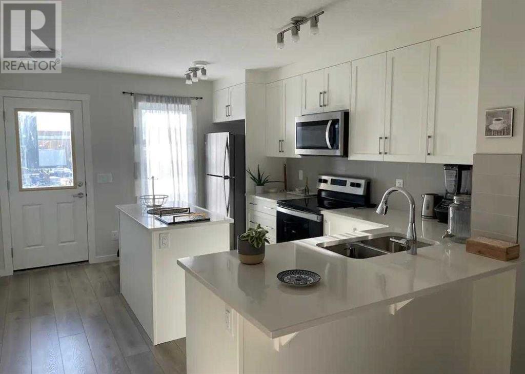 Welcome to Zen Urban Townhouses! This beautifully maintained townhome boasts stylish touches throughout, with a modern open-floor concept featuring quartz countertops, stainless steel appliances, and a kitchen island with room for seating. The main floor includes a spacious living and dining area leading to a rear kitchen that opens to a fenced back yard. There is also storage under the stairs that can be used for your pets. Upstairs, you'll find two large bedrooms and a 4-piece washroom with a laundry area on the second floor. The primary bedroom includes a 3-piece ensuite. The top level can be converted into a third bedroom with the addition of an armoire or used as an office, with access to a rooftop patio. No size restrictions on pets and Airbnb allowed, this home offers flexibility and is perfect for anyone looking to invest. The home features a newer central air conditioner with tons of upgrade through out, and is steps away from a playgroup, South Health Campus, shopping, theatres, restaurants, parks, and pathways. The world's largest YMCA, equipped with a surf simulator, NHL-sized ice rink, climbing wall, and more, is also nearby. Welcome home to comfort, convenience, and modern living. (id:22211)