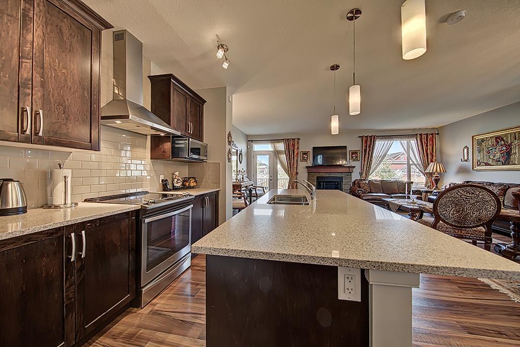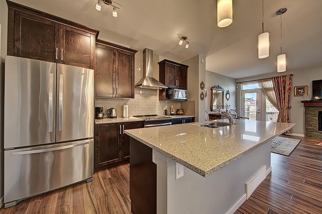 Welcome to this stunning 3 Level split home boasting over 2100 SqFt of living space in the friendly community of Cranston! As you step inside, you will be greeted by a spacious and open main floor, with upgraded laminate flooring, dark cabinets, a large island and a stone surround natural gas fireplace making it the perfect home for relaxing with family and friends or for those who love to entertain. This 3 bedrooms, 2 & 1 half bathrooms home you'll find a large bonus room, which could be used as a media space or as a playroom great for growing families. The master bedroom features a 4-piece ensuite, with soaker tub, two sinks, stand alone shower and a walk-in closet. The two additional bedrooms are perfect for kids or guests and a shared second full bathroom. This home has been recently painted, giving it a fresh look and the large windows throughout the home allow for plenty of natural light, creating a warm and inviting atmosphere. Located on the south side of Cranston, this home is just minutes away from shopping, restaurants, and the hospital with quick access to Deerfoot Trail. In addition, this beautiful home is situated near the ridge, where you can enjoy scenic views, walks and outdoor activities. It's also nestled in a family-friendly cul-de-sac, providing a place for growing families to play outside. With so many great features and a prime location, this home is the perfect place for families or anyone looking for a comfortable and convenient lifestyle. Don't miss your chance to make this stunning home yours. Contact us today to schedule a viewing! (id:22211)