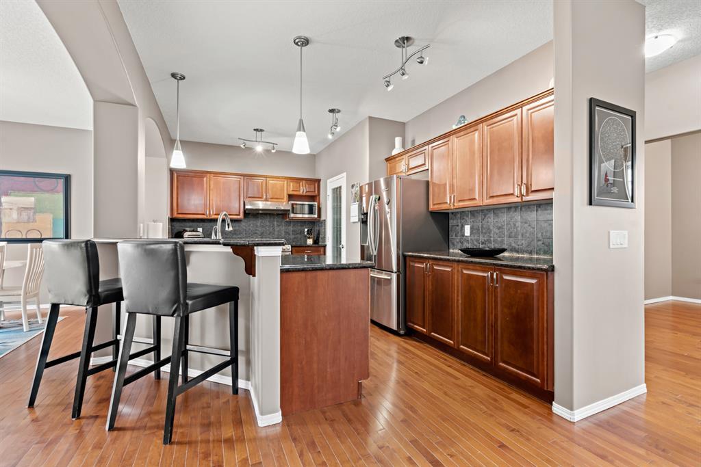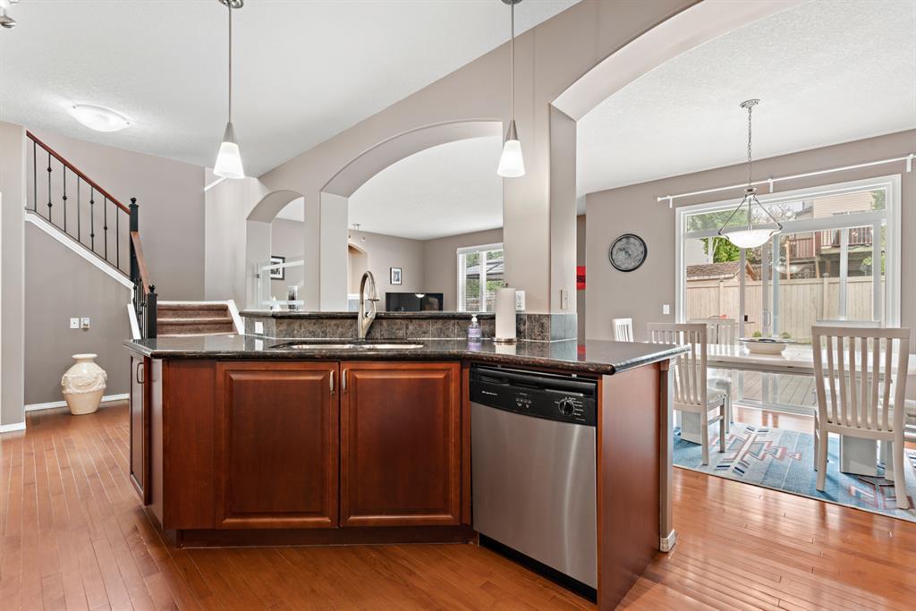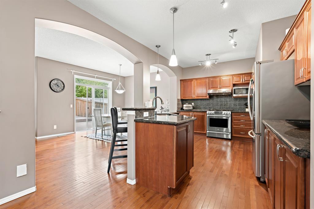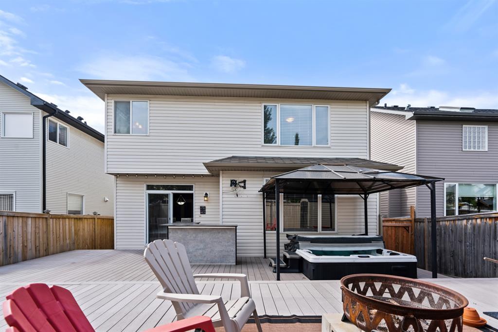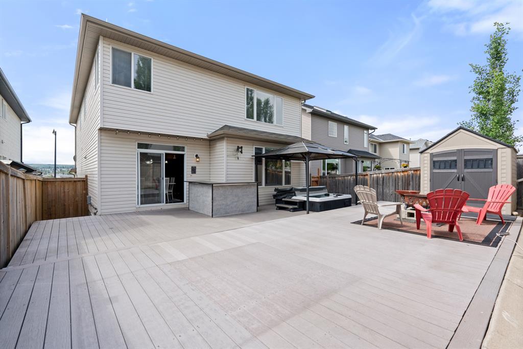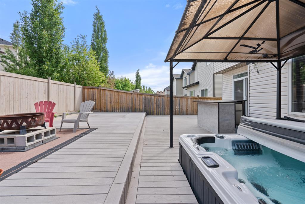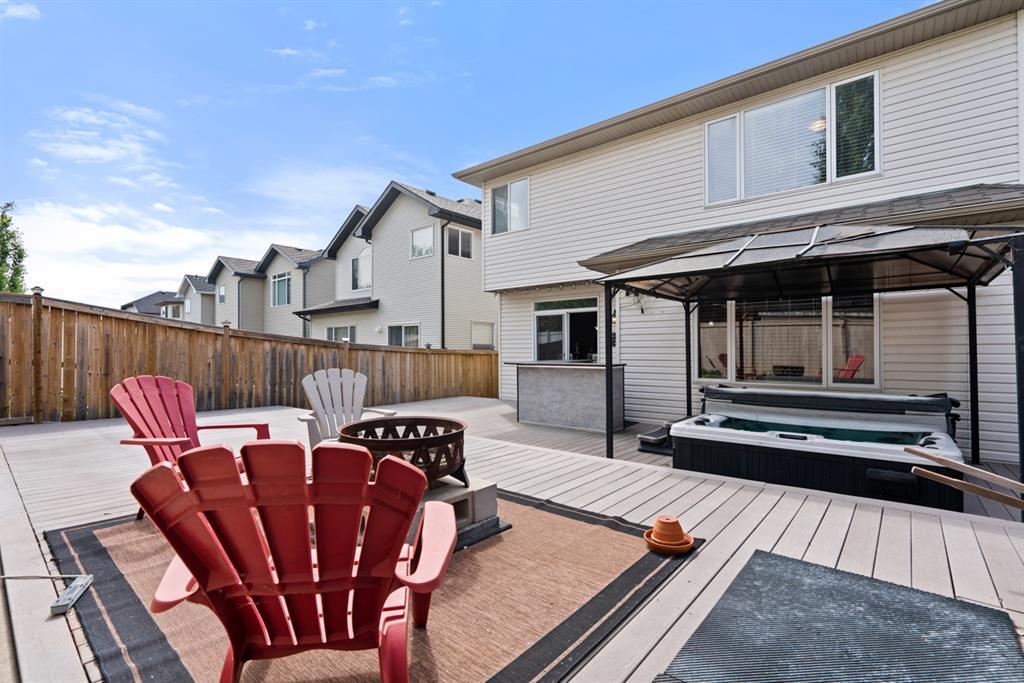 Welcome to your dream home at 34 Evansmeade Circle NW in Calgary, Alberta! This stunning front drive home boasts over 2513 sq. ft of livable space, with 4 bedrooms and 3.5 baths. From the moment you step inside, you'll be struck by the semi-open concept living, dining, and kitchen area, complete with high ceilings, a gas stove, a cozy fireplace, and gorgeous granite countertops. Whether you're entertaining guests or simply enjoying a quiet evening with family, this space is perfect for all your needs.The walk-through pantry leads to the laundry room and double-car garage, making it easy to keep your home tidy and efficient. The tucked-in half bathroom on the main floor is a convenient feature that adds to the overall functionality of the home. The den on the main floor is a versatile space that could be used as an office, library, or even a playroom for children.One of the most impressive features of this home is the breathtaking view from the front of the house. You'll love spending time in your backyard, which features a hot tub and a fully decked area perfect for entertaining guests, barbecuing, or simply relaxing.Upstairs, you'll find a spacious master bedroom with an ensuite featuring a soaker tub, perfect for unwinding after a long day. There are also two additional bedrooms with a Jack and Jill bathroom with a double sink for both kids, making it easy for everyone to get ready in the morning. The bonus room has vaulted ceilings, adding to the overall grandeur of the home.The basement is fully developed and features a den that could be used as a game room for kids, an entertainment room, a full bathroom with a stand-up shower, and an additional bedroom making it a perfect space for young families. The air conditioning unit will keep you cool in the summer months, ensuring that you're always comfortable.For families with young children, this home is ideal as it is within walking distance to Kenneth D Taylor Elementary School for children in K to Grade 6. T he playground, pond, and walking path right in front of your home ensure that you'll always have something to do.Don't miss out on the opportunity to own this amazing home in a fantastic location. Schedule you’re viewing today and experience the best that Calgary has to offer! (id:22211)