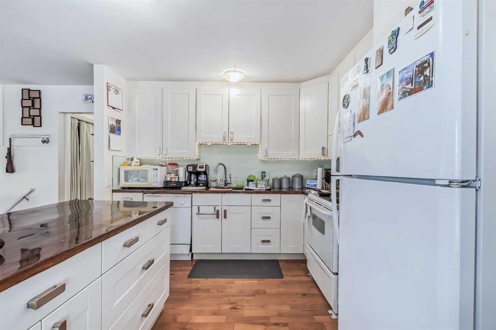 VIEW NOW USING THE VIRTUAL WALKTHROUGH •A great investment opportunity, live up and rent below, or rent out both. This bi-level duplex has two SEPARATE ENTRANCES. The MAIN FLOOR offers 847 sq.ft and the LOWER LEVEL 655 sq.ft. both with TWO BEDROOMS, ONE BATHROOM and LAUNDRY. •The duplex is situated in the community of Woodlands with good transit routes just a few steps away, Woodbine Square across the street with grocery store and other amenities. The local elementary school is in easy walking distance, and there are an array of parks and playing fields in the vicinity. Fish Creek Park is short walk/bike ride away providing access to the 2nd largest urban park in Canada. And the nearby Woodcreek Community Association offers many facilities and programs. This is a great community to live in.•The current owner has carried out several updates during their 8 years of ownership including: Hot water tank (2023), NEW high efficiency FURNACE (recent), laundry centre on main floor (2021), washer and dryer in basement, roof, and gutters. •Upstairs features an entry with built-in shoe storage; open plan living room with a large window over-looking the established tree in the front yard and across to Woodbine Athletic Park; dining area with built-in banquette seating; kitchen with island and varnished wood counters; two bedrooms; a bathroom with good size vanity; and a laundry closet. There is HARDWOOD flooring throughout the living area and bedrooms.•The lower level features a tiled entry area, with wood stairs leading down to the living area; a light, bright open plan living space with wood burning fireplace; a corner kitchen with quartz counters and space for a dining table; two bedrooms with egress windows; a bathroom with double-vanity; separate washer and dryer located in the mechanical room; and understairs storage. The windows on the lower level are all vinyl double-pane. Flooring throughout is VINYL PLANK.•On the exterior there is stamped concre te paving at the entrance that flows through the back to a patio area. There is a good-sized back yard with an established tree, a shed for storage, hose-bibs on back and side, and the back gates open up for access to a PARKING PAD. There is also plenty of street parking as there are no properties across the street. •This property is the perfect investment. Make this your right move! (id:22211)