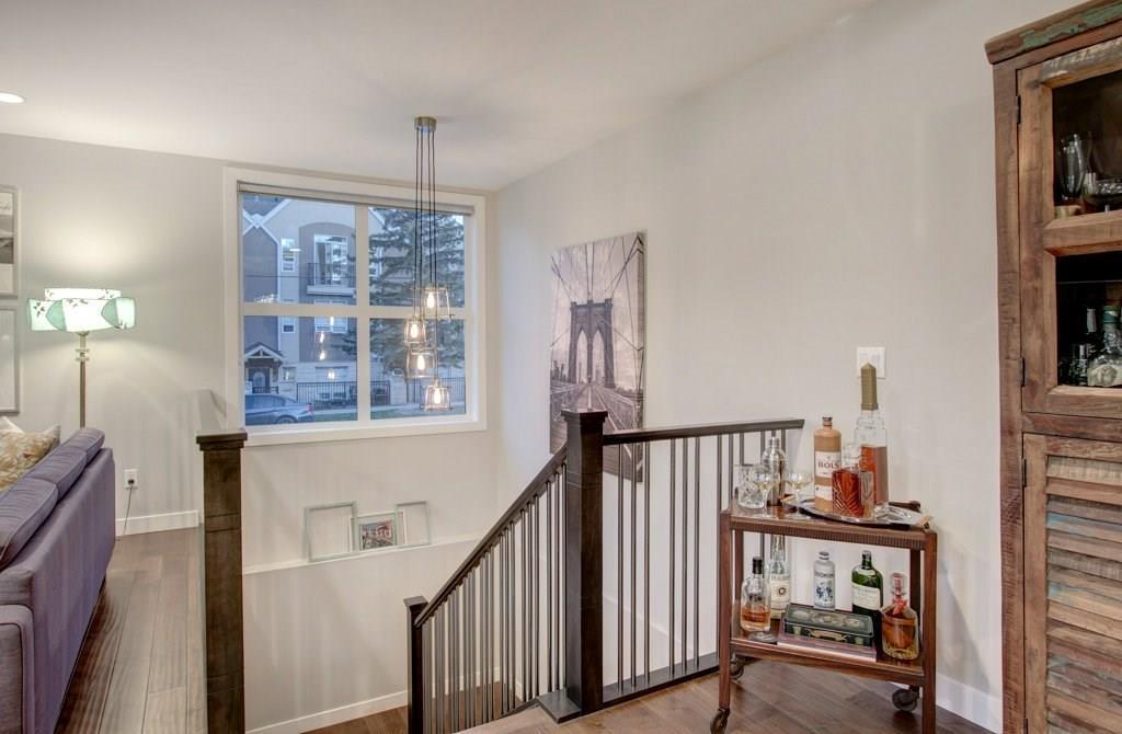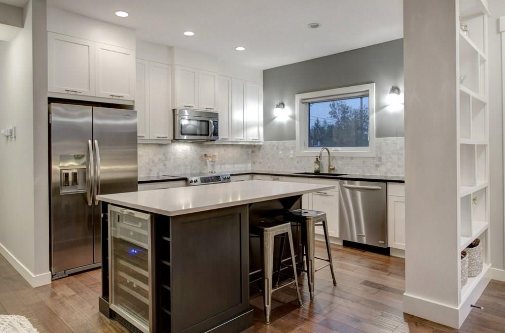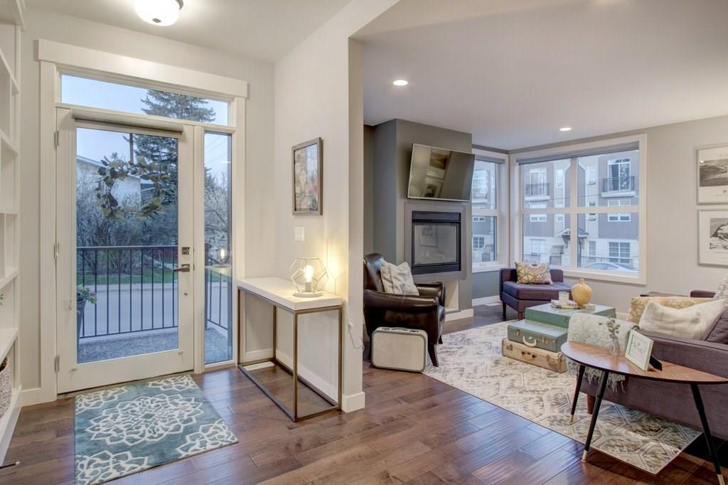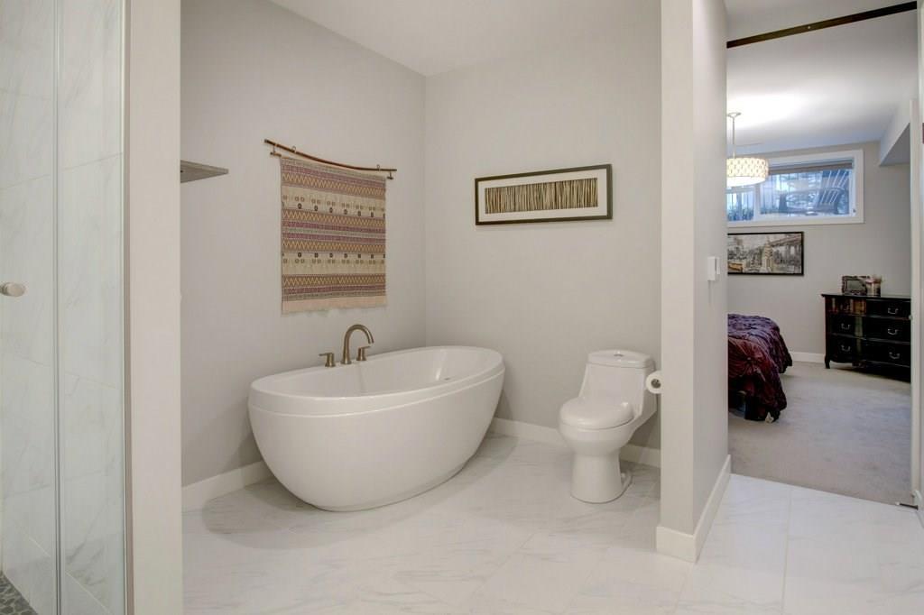 This spectacular residence boasts a gorgeous 1,508 square feet of fully finished living space. As you drive into the highly desirable area of Marda Loop and begin to feel the work day slip away, you are coddled in luxury as you enter this fabulous, upscale home that oozes quality everywhere. Nestled back from the main road, this home is located in the heart of the Marda Loop action, but protected from the main traffic of 33rd Ave. This is a location offering amazing choices between downtown nightlife or a sunset stroll through the popular village. Your're only minutes away from your favorite coffee bars, boutique shops, and restaurants. This luxurious two bedroom home has a wonderful combination of class and comfort few properties offer. Located on the lower level, both master bedrooms have been designed with their own beautiful en-suite bathrooms. Primary bathroom is equipped with heated floor. Both ensuite bathrooms have free standing tubs, and beautiful fixtures. There is an additional half bath located on the main level. its unique design, this property has a stunning street presence and wonderful curb appeal. Offering expansive views to the outdoors, the home feels tranquil and spacious. The welcoming, bright entry, opens to nine foot ceilings and a palette of colours and architectural design that says you've arrived. The gorgeous chef's kitchen has high end stainless steel appliances that include a flat slide-in cook top, built-in wine fridge, and the convenience of a built-in microwave. With Brazilian hand scraped hardwood featured throughout, the main living area is enhanced with a modern designer fireplace. Off the main area you have easy access to your lovely patio for those lazy mornings or relaxing evenings. For convenience and security, you have a single attached garage. To top it all off, this home has very low monthly condo fees. This residence provides incredible value and a rare opportunity. Don't miss out. Call today while it's available. (id:22211)