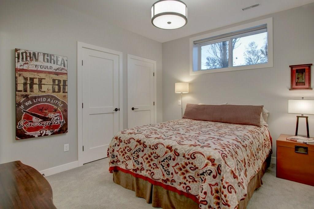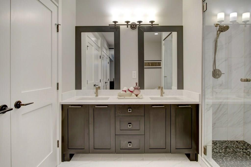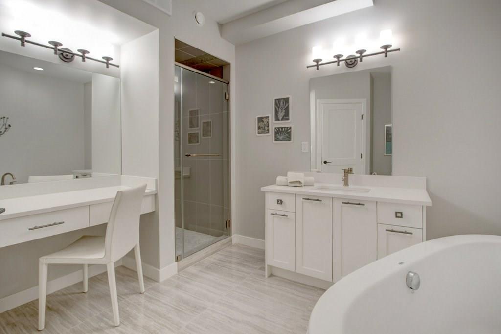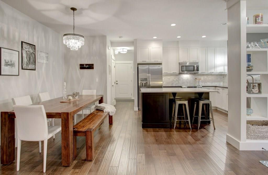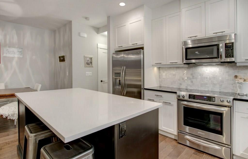 This spectacular residence boasts a gorgeous 1,508 square feet of fully finished living space. As you drive into the highly desirable area of Marda Loop and begin to feel the work day slip away, you are coddled in luxury as you enter this fabulous, upscale home that oozes quality everywhere. Nestled back from the main road, this home is located in the heart of the Marda Loop action, but protected from the main traffic of 33rd Ave. This is a location offering amazing choices between downtown nightlife or a sunset stroll through the popular village. Your're only minutes away from your favorite coffee bars, boutique shops, and restaurants. This luxurious two bedroom home has a wonderful combination of class and comfort few properties offer. Located on the lower level, both master bedrooms have been designed with their own beautiful en-suite bathrooms. Primary bathroom is equipped with heated floor. Both ensuite bathrooms have free standing tubs, and beautiful fixtures. There is an additional half bath located on the main level. its unique design, this property has a stunning street presence and wonderful curb appeal. Offering expansive views to the outdoors, the home feels tranquil and spacious. The welcoming, bright entry, opens to nine foot ceilings and a palette of colours and architectural design that says you've arrived. The gorgeous chef's kitchen has high end stainless steel appliances that include a flat slide-in cook top, built-in wine fridge, and the convenience of a built-in microwave. With Brazilian hand scraped hardwood featured throughout, the main living area is enhanced with a modern designer fireplace. Off the main area you have easy access to your lovely patio for those lazy mornings or relaxing evenings. For convenience and security, you have a single attached garage. To top it all off, this home has very low monthly condo fees. This residence provides incredible value and a rare opportunity. Don't miss out. Call today while it's available. (id:22211)