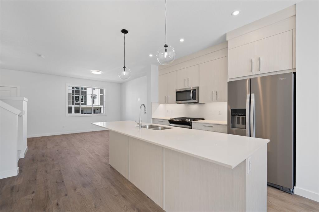 TRUMAN Street Town in the sought after community of Cornerstone with easy access to Stoney Trail, nearby Playgrounds, Pathways, and Shopping. Step inside this 3 Bedroom Open Concept plan featuring a Bright Chef's Kitchen with Full Height Cabinetry, Soft Close Doors & Drawers, Eating Bar with Quartz Countertops, and Stainless Steel Appliance package opening to the Dining area and Great Room. The Main Floor features 9' Ceilings, LVP Flooring, and 2 piece Bathroom. Step upstairs to the Primary Suite with highlights such as a 4 piece ensuite with Shower, Dual Vanities with Quartz Countertops and Walk in Closet. The Upper Floor features 2 additional Bedrooms, Full Bathroom and Laundry area. The unfinished Basement awaits your personal touch. This home features a detached Double Garage and No Condo Fees. This bright and airy TRUMAN home is Move in Ready. Live better. Live Truman. (id:22211)