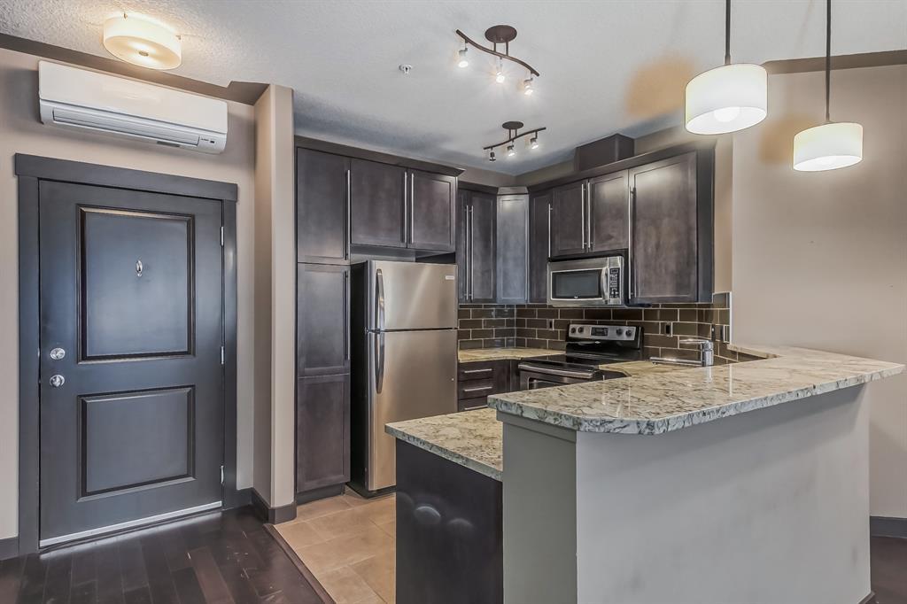 Awesome views, marvelous inner city location, Luxurious, amenties rich complex. Close proximity to Pearce Estate Park, Inglewood Bird Sanctuary, the Inglewood Wildlands & natural greenspaces along the Bow River. Only minutes to the historic & eclectic Inglewood district, with quick easy access to downtown & Deerfoot Trail. Immaculate unit with 9 feet ceilings, airconditioning , two spacious bedrooms ,6 Piece en-suite washroom, walk-in closet, another full washroom, chef's pride kitchen with maple cabinets, granite counters and tiled backsplash, stainless steel appliances, spacious living room with gas fireplace, in unit laundry room with storage . East facing patio and extremely well landscaped courtyard. Monthly condo fees include heat & water-sewer, plus access to the residents amenities: media room, lounge with pool tables & kitchen, friendly concierge, bike storage & huge-state of art fitness centre. A titled storage locker is also included . So, please grab your favourite realtor and book it's showing before it's gone!!! (id:22211)