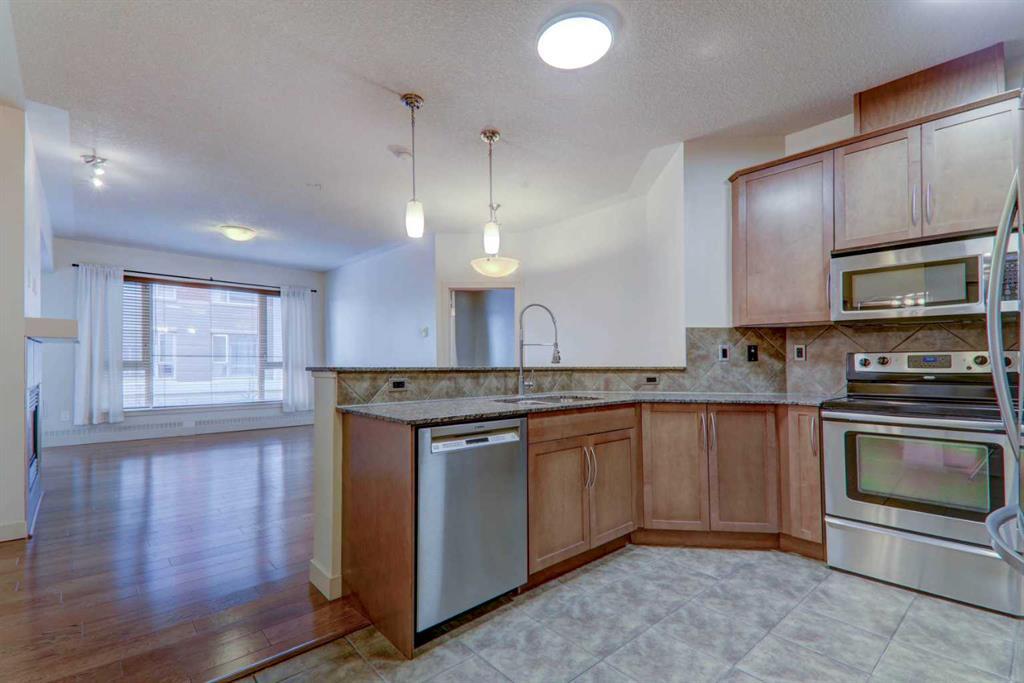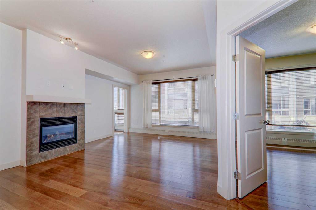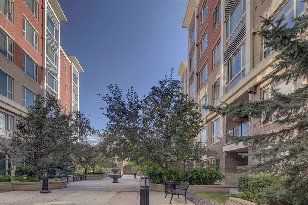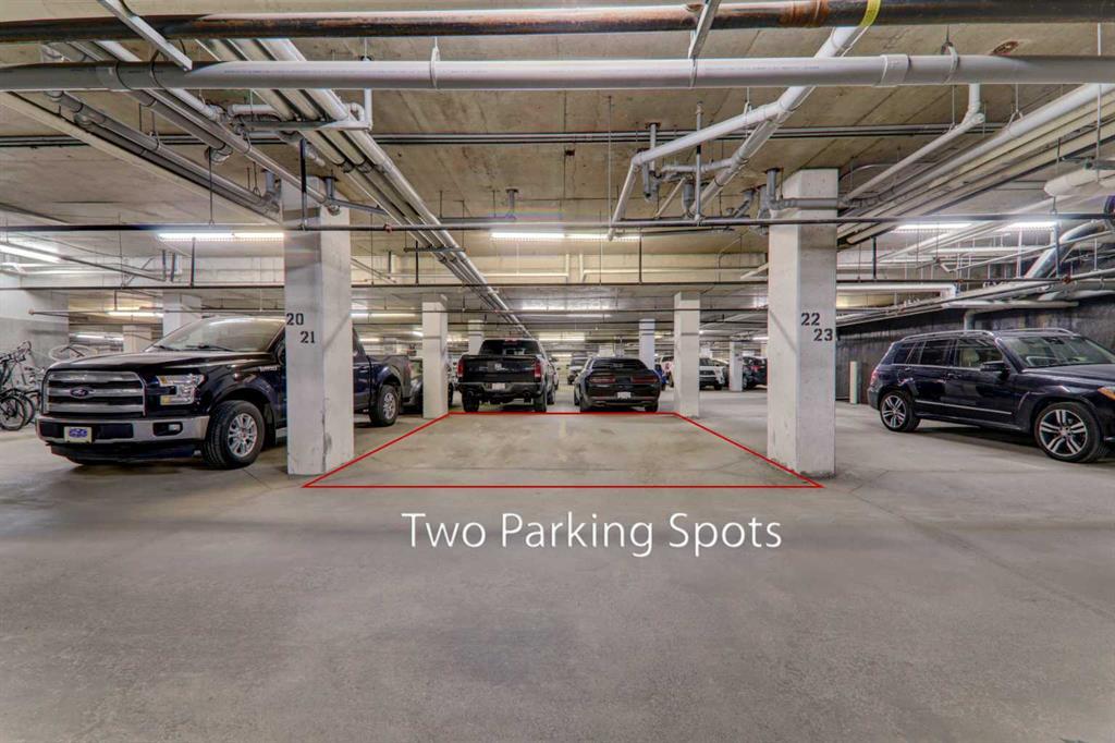 Perfect for the outdoor enthusiast with PEARCE ESTATE PARK and HARVIE PASSAGE right outside your door! This beautifully upgraded unit is complete with upgraded stainless steel appliances, HARDWOOD FLOORS, 9FT CEILINGS and GRANITE COUNTERS. The primary bedroom overlooks the central courtyard and is host to a walk-in closet and a 5PC ENSUITE. The very spacious 2nd bedroom provides you with a walk-in closet and frosted FRENCH DOORS leading you to the bright DEN surrounded by windows and views. The 3pc bath and IN-SUITE LAUNDRY are conveniently tucked away. Enjoy the open floor plan with a GAS FIREPLACE, dining area and RAISED BREAKFAST BAR for additional seating in the kitchen. This CONCRETE building has everything for the working professional including a FULLY EQUIPPED GYM, PARTY ROOM and MOVIE ROOM and TITLED STORAGE. Very few units come available with 2 TITLED PARKING STALLS so don't miss out on this incredible opportunity! (id:22211)