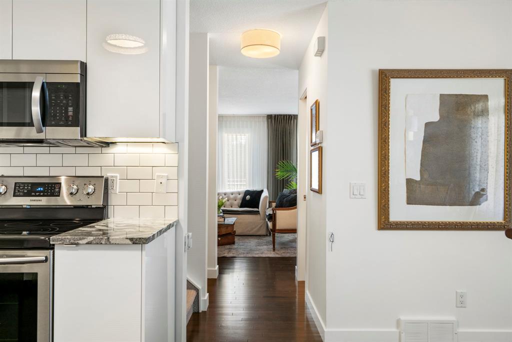 Exceptional value with just under 1800 square feet of total living space on a tree lined street in the heart of Altadore. Enjoy this professionally designed and decorated, 3 bedroom, 3.5 bath townhome close to Marda Loop, downtown Calgary, trendy shops, restaurants, boutique gyms and more. Fabulous features and upgrades include a private, west facing front patio area with mature landscaping and new lattice/privacy screens and stonework, ideal for BBQ’s to enjoy with family and friends. Great layout featuring a wood burning fireplace with stylish new brass cladding along with a large kitchen with stainless steel appliances, new designer backsplash, granite countertops, and spacious kitchen/dining area, perfect for entertaining. The main floor also features hardwood flooring, ample storage and a conveniently located powder room.Upstairs you will appreciate 3 bedrooms and 2 full bathrooms! The second storey has a fabulous balcony to enjoy evening sunsets along with custom blackout custom draperies in the primary bedroom and custom draperies in the other bedrooms.On the lower level, you will love the massive steam shower in the full bathroom. A large rec room with ceramic tiles can be used as a home office or family room. A new high end humidifier was recently added and the HVAC system has been maintained regularly. Ample storage throughout the home along with a decent size utility room.This impeccably maintained home is a designer’s dream in the heart of one of Calgary’s most desirable locations…….only 1.5 blocks from the off-leash dog park, minutes to the best patios in south Calgary and a stone’s throw to downtown only 10 minutes by public transport.Don’t miss this opportunity. This home won’t last long!! (id:22211)