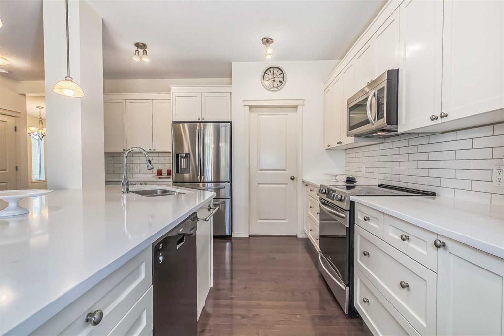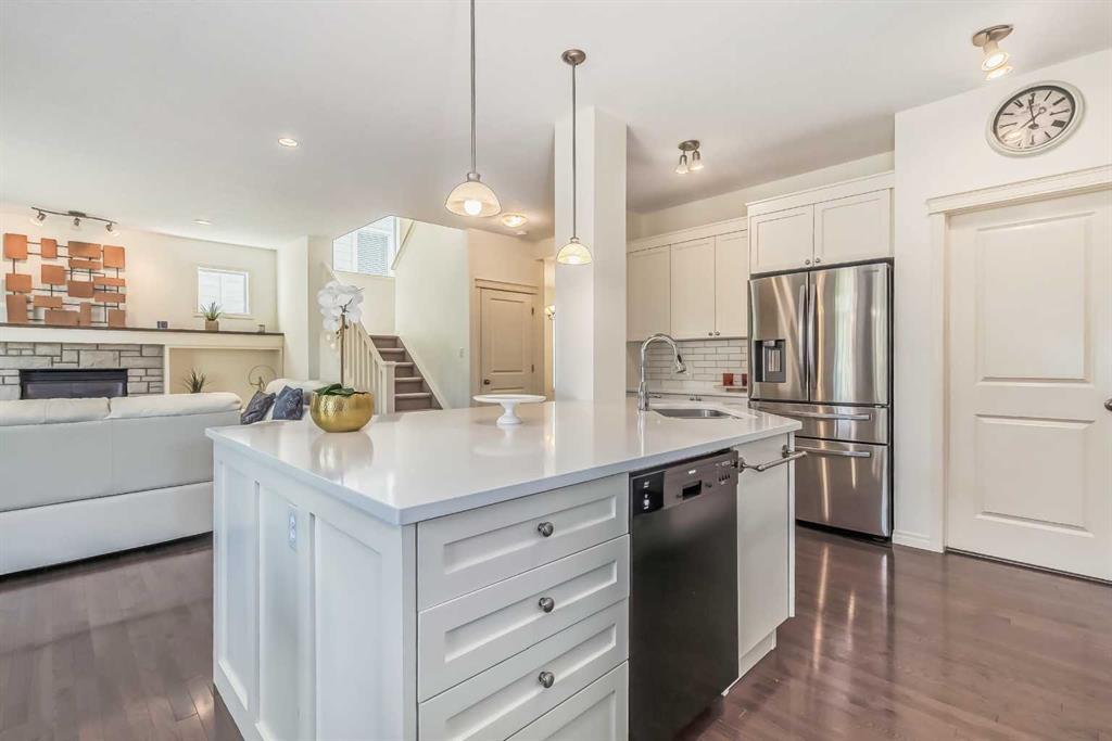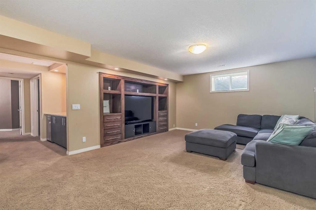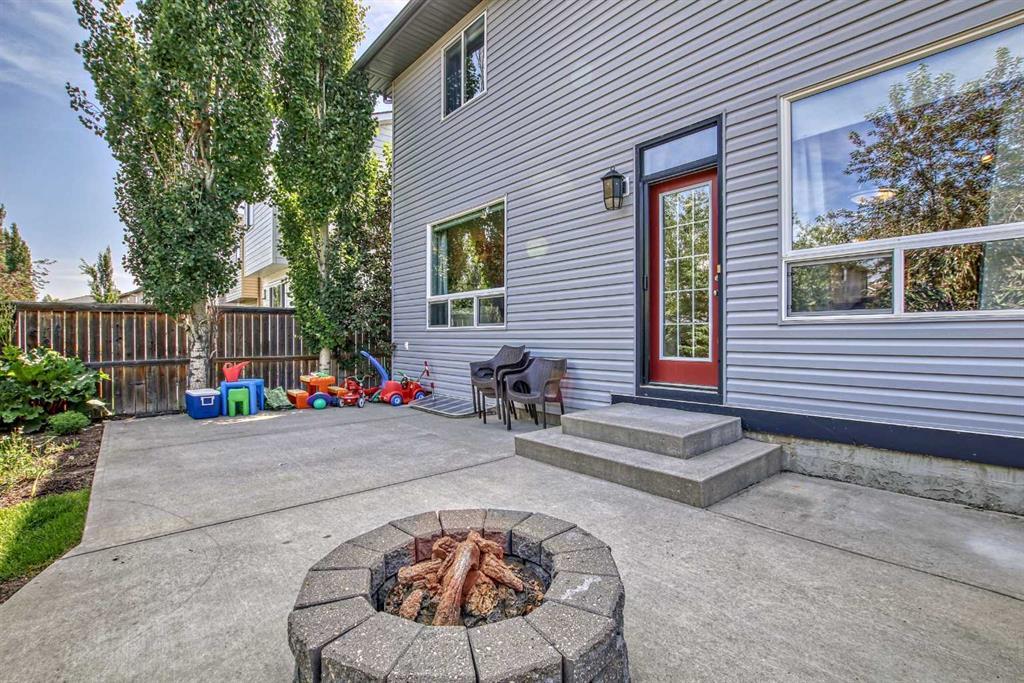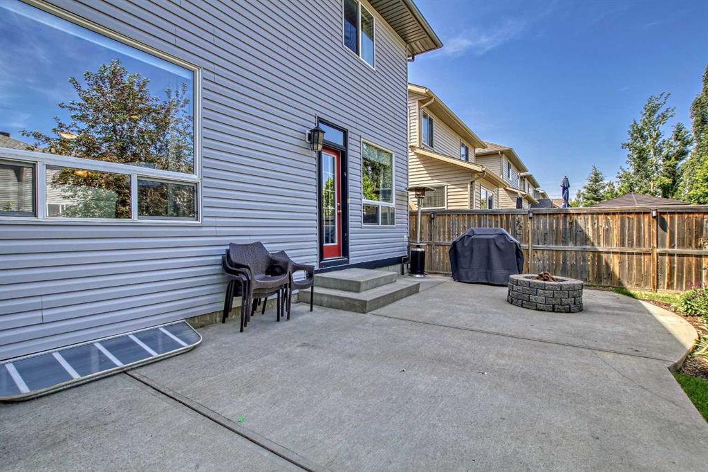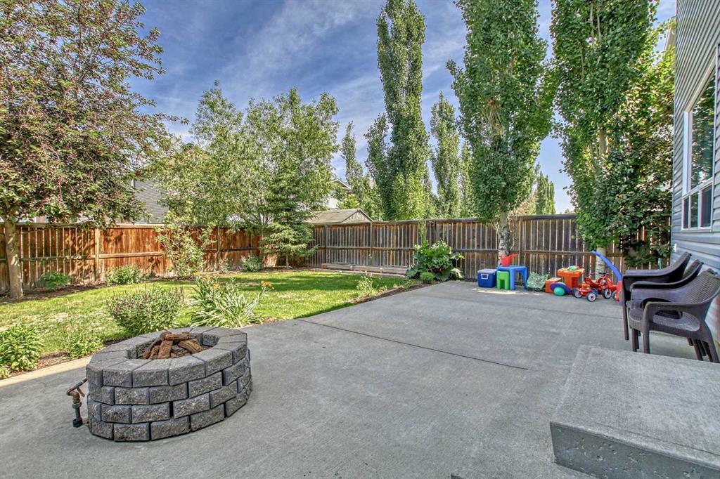 Welcome to this gorgeous 5 bedroom Chaparral home! Statistically one of the safest communities in all of Calgary! The front entrance opens up to the dining/flex room then really opens up to the open concept kitchen/eating area/living room with hardwood floors underfoot. The bright modern kitchen has stainless steel appliances & a fantastic large island with breakfast bar equipped for seating & complete with quartz countertops. The walk-in pantry walk-through to the mud room which has built in seating & shelving for the transition from the double attached garage to house. The living room has an elegant stone faced gas fireplace situated between built-in mantle & shelving. 2pc bathroom located just off the mud room. The top floor has 4 bedrooms. The master bedroom has a 5pc ensuite with his & hers sinks & his & hers walk in closets, soaker tub & stand-up shower. Closet space is ample in the 3 other upstairs bedrooms as they each have walk-in closets. 4pc bathroom & a conveniently located large laundry room also on the top floor. The 5th bedroom is located in the fully finished basement which has a 4pc bathroom, very large rec/flex room & dry bar. Outside the backyard has a large concrete patio with a natural gas bbq hook-up as well as a built in concrete fire pit with natural gas hook-up. Fully fenced & mature trees frame in the back yard. Exterior siding & roofing finishes all new within the last 2 years. Chaparral has all the amenities plus lake access with the HOA. (id:22211)