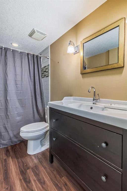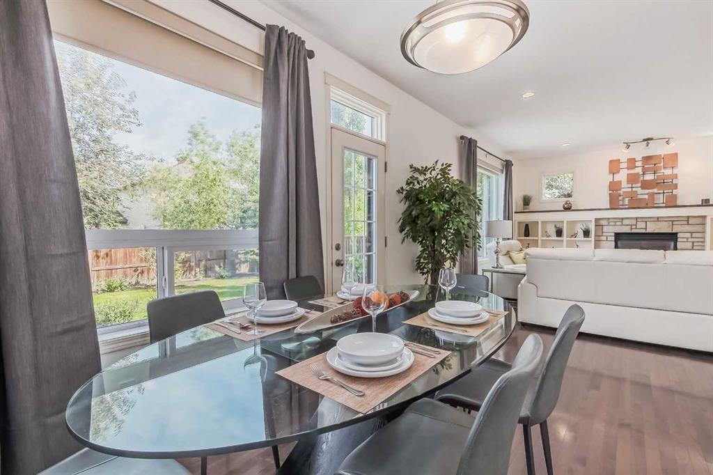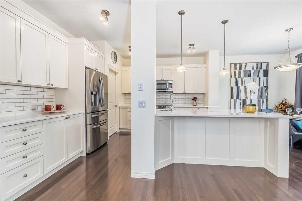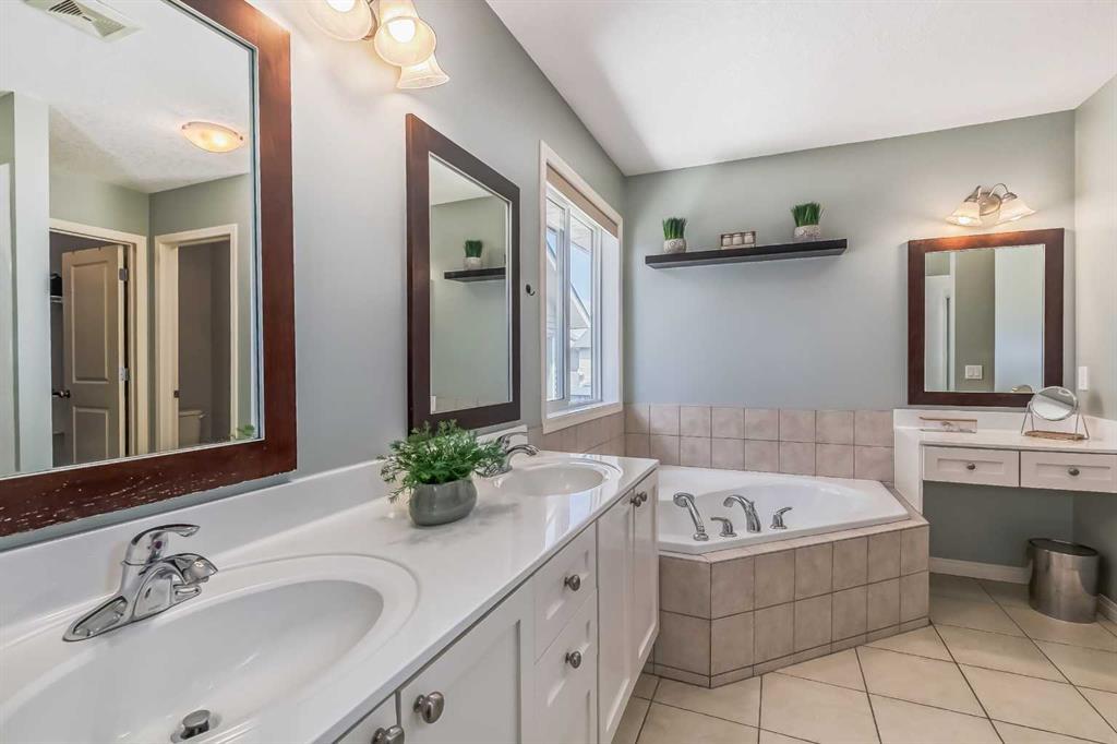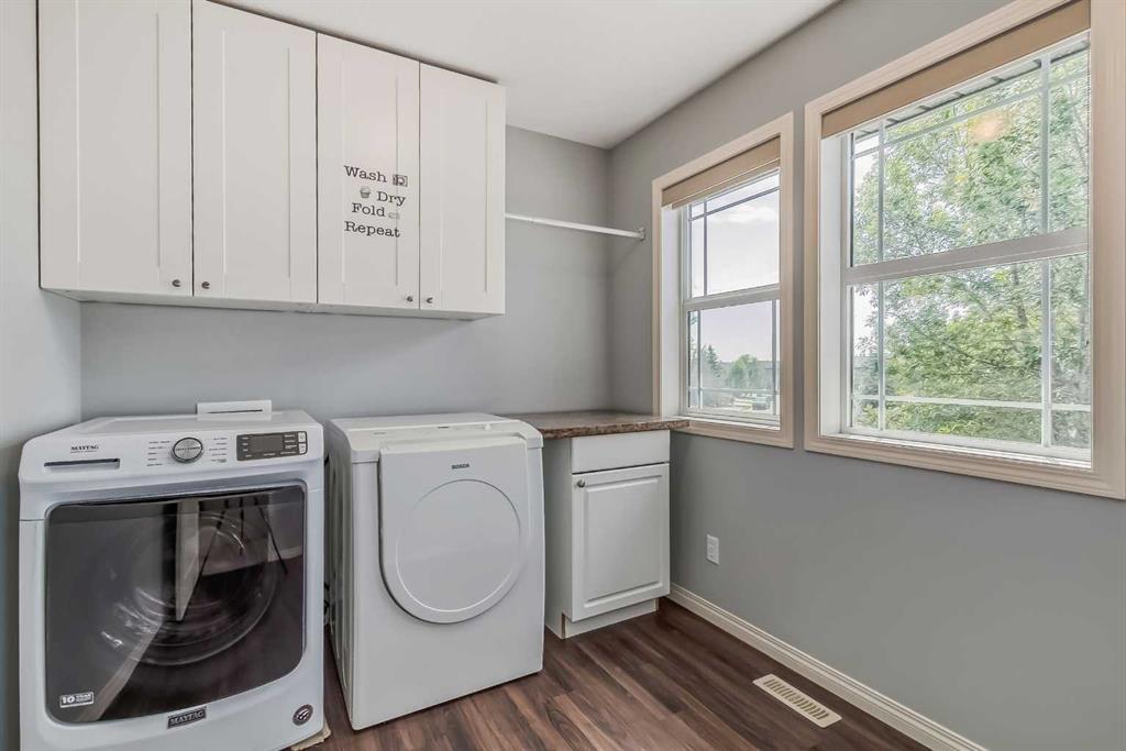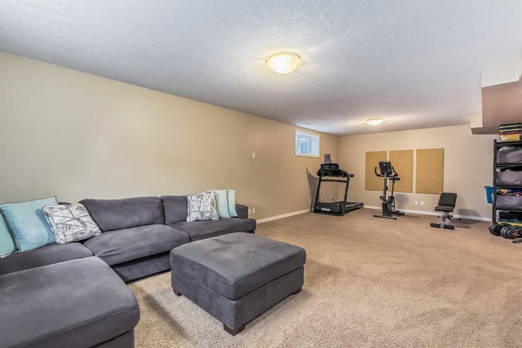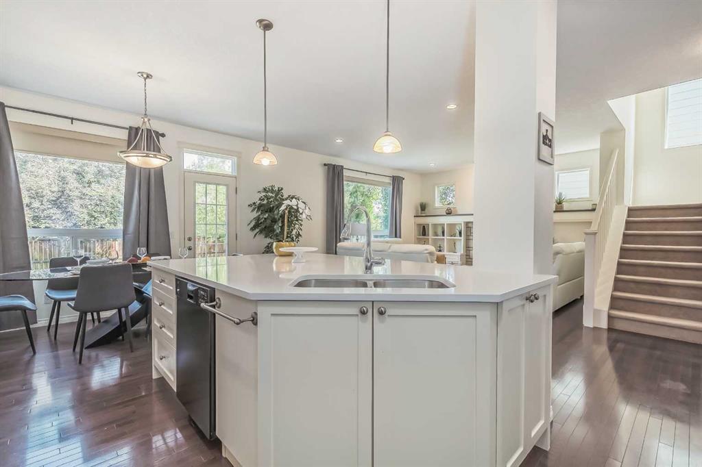 Welcome to this gorgeous 5 bedroom Chaparral home! Statistically one of the safest communities in all of Calgary! The front entrance opens up to the dining/flex room then really opens up to the open concept kitchen/eating area/living room with hardwood floors underfoot. The bright modern kitchen has stainless steel appliances & a fantastic large island with breakfast bar equipped for seating & complete with quartz countertops. The walk-in pantry walk-through to the mud room which has built in seating & shelving for the transition from the double attached garage to house. The living room has an elegant stone faced gas fireplace situated between built-in mantle & shelving. 2pc bathroom located just off the mud room. The top floor has 4 bedrooms. The master bedroom has a 5pc ensuite with his & hers sinks & his & hers walk in closets, soaker tub & stand-up shower. Closet space is ample in the 3 other upstairs bedrooms as they each have walk-in closets. 4pc bathroom & a conveniently located large laundry room also on the top floor. The 5th bedroom is located in the fully finished basement which has a 4pc bathroom, very large rec/flex room & dry bar. Outside the backyard has a large concrete patio with a natural gas bbq hook-up as well as a built in concrete fire pit with natural gas hook-up. Fully fenced & mature trees frame in the back yard. Exterior siding & roofing finishes all new within the last 2 years. Chaparral has all the amenities plus lake access with the HOA. (id:22211)