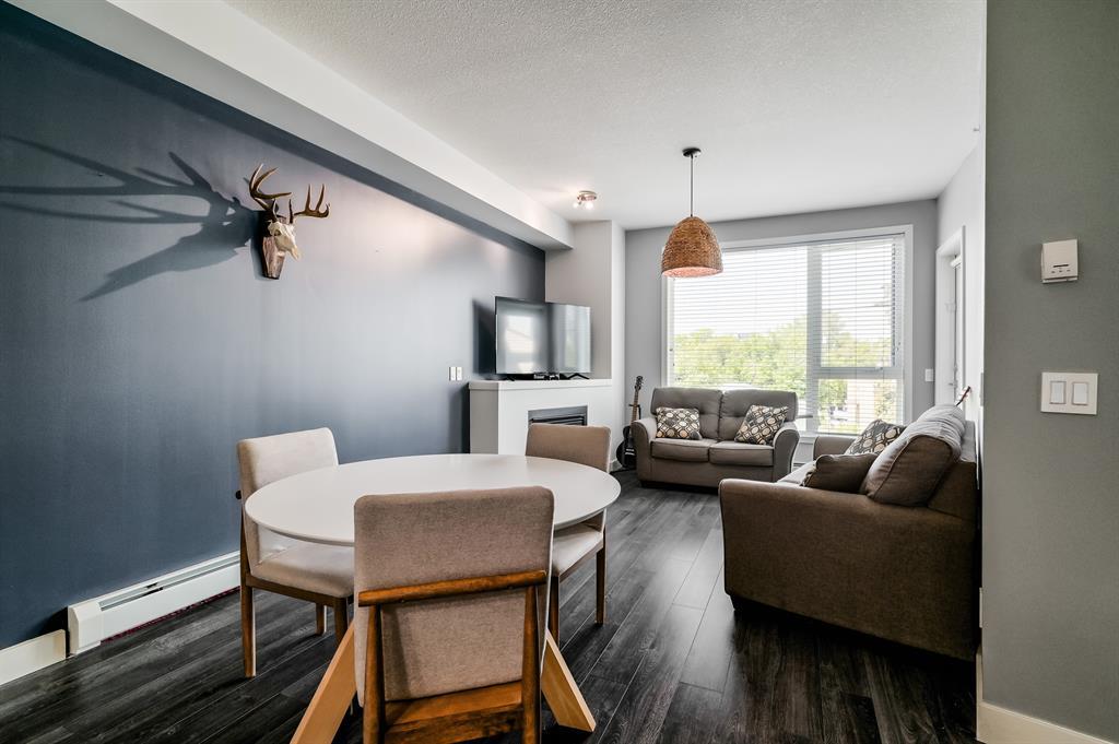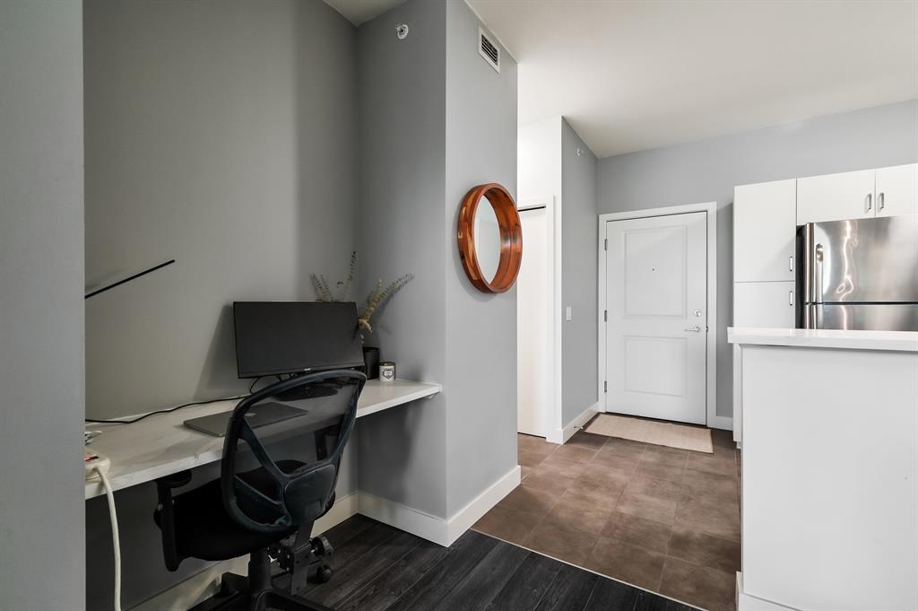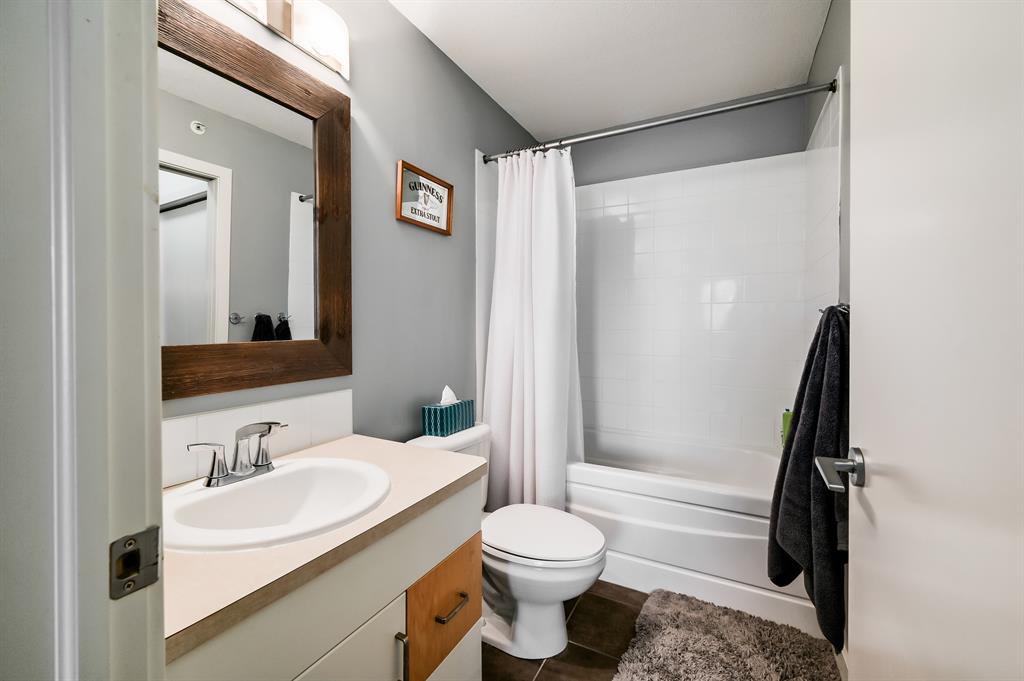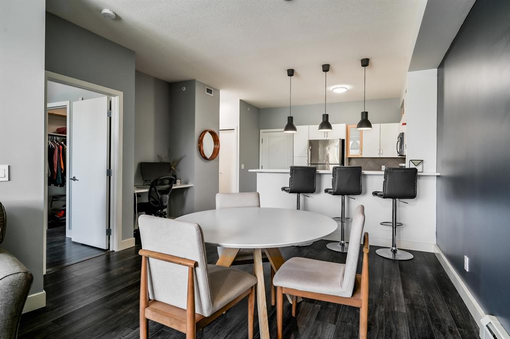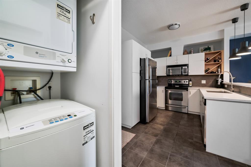 TOP FLOOR unit located in the sought after SW community of Altadore. This bright one bedroom, one bathroom condo apartment offers an open concept floorplan with a modern design. Upon entering the unit you are immediately greeted by the spacious kitchen featuring brand new quartz countertops, stainless steel appliances, over the range microwave hood-fan combo and an island with breakfast bar. Next to the kitchen is the dining area and a separate built-in desk. Cozy up in the living room next to the gas fireplace or head out the door to your west facing private balcony to wind down the day. The large window in the living room allows for a ton of natural light. The nice size bedroom, 4-piece ensuite bathroom and in-suite laundry round off this fabulous home at the trendy Kabo. This 3-storey securecondo building is well maintained and is within walking distance to restaurants, cafes, shopping, parks and pathways. Underground parking, separate storage and designated bike area. Close to transit and easy access to downtown. Don’t miss out. Call today for more information or to schedule a private viewing. (id:22211)