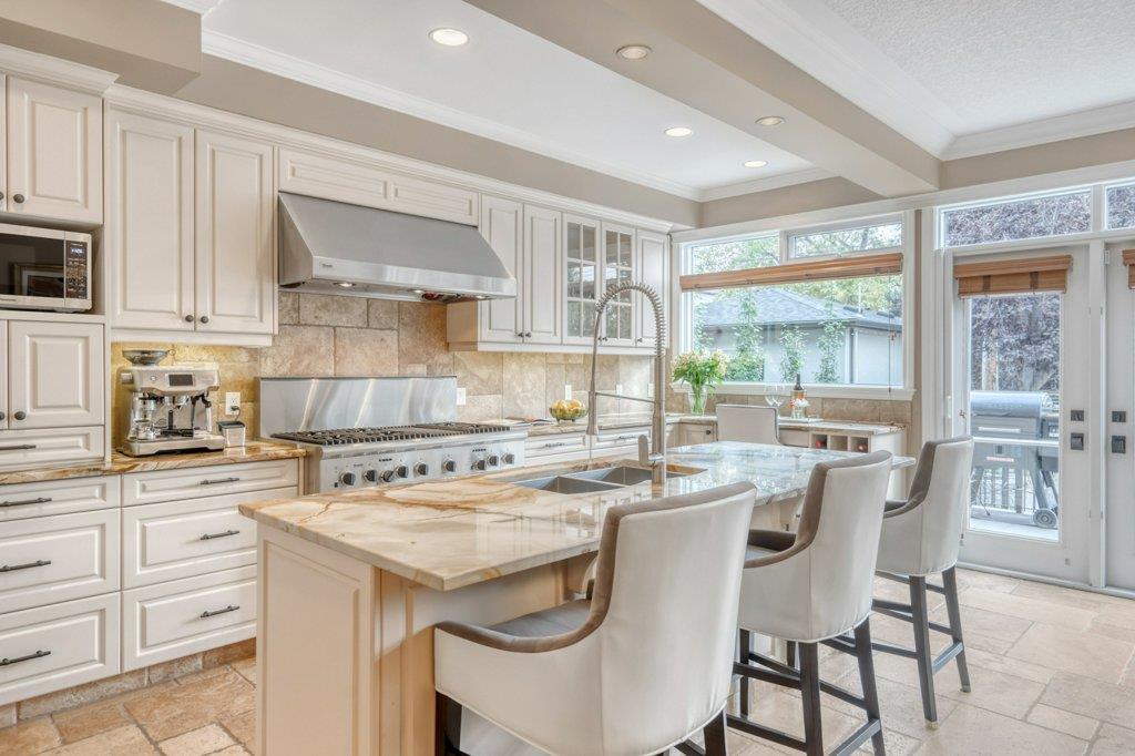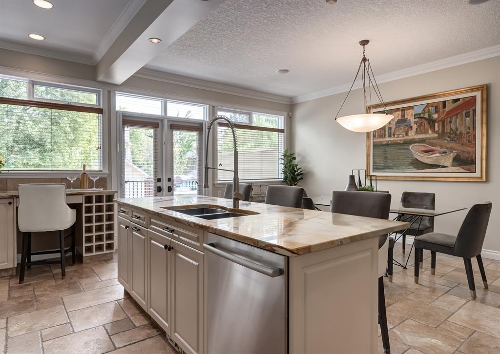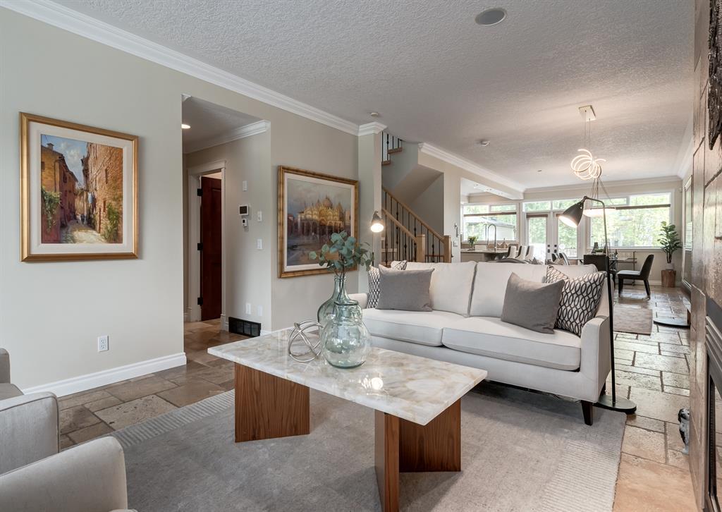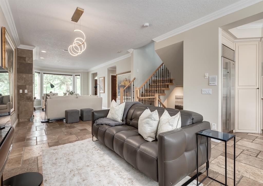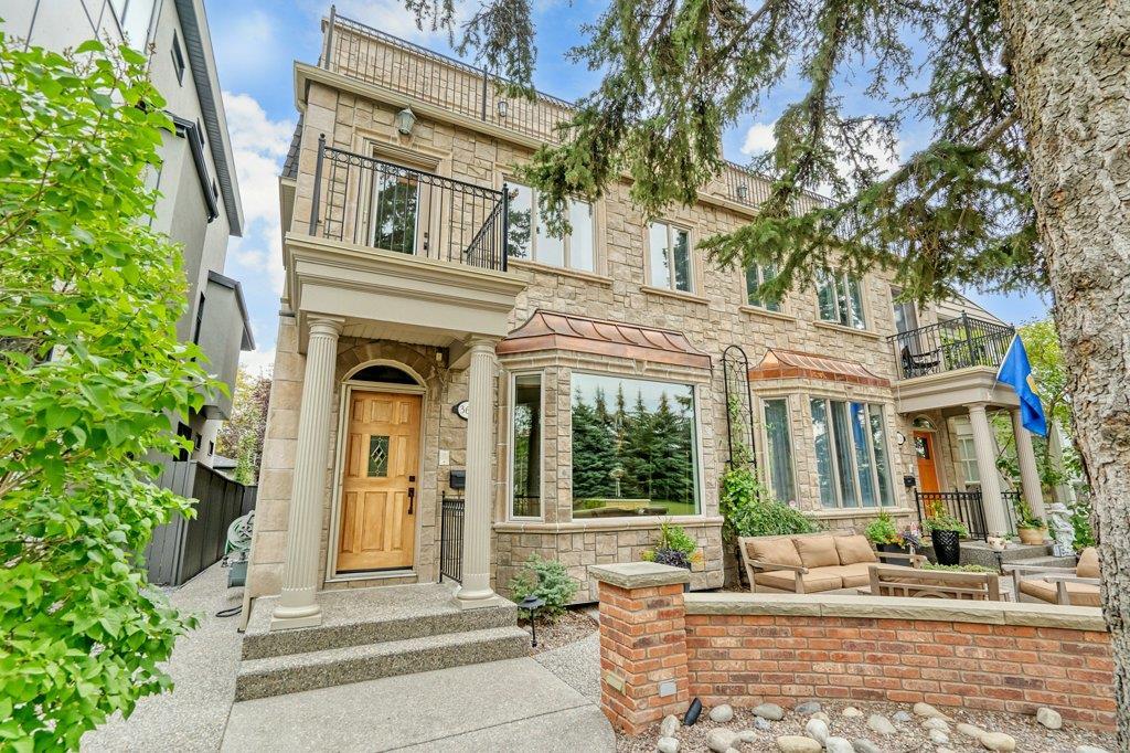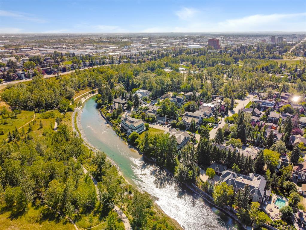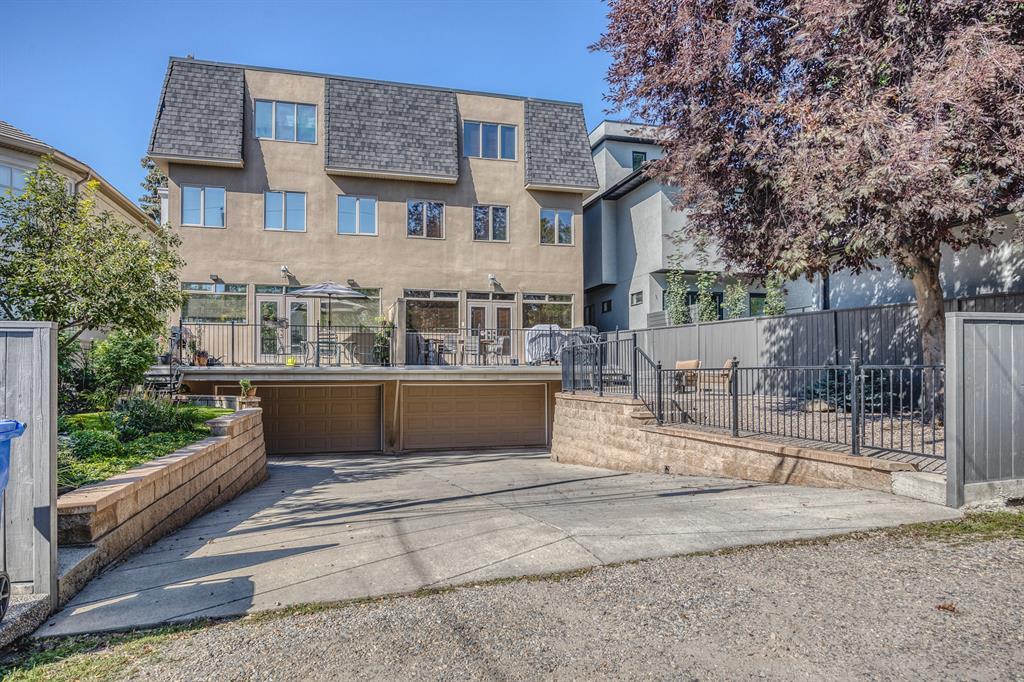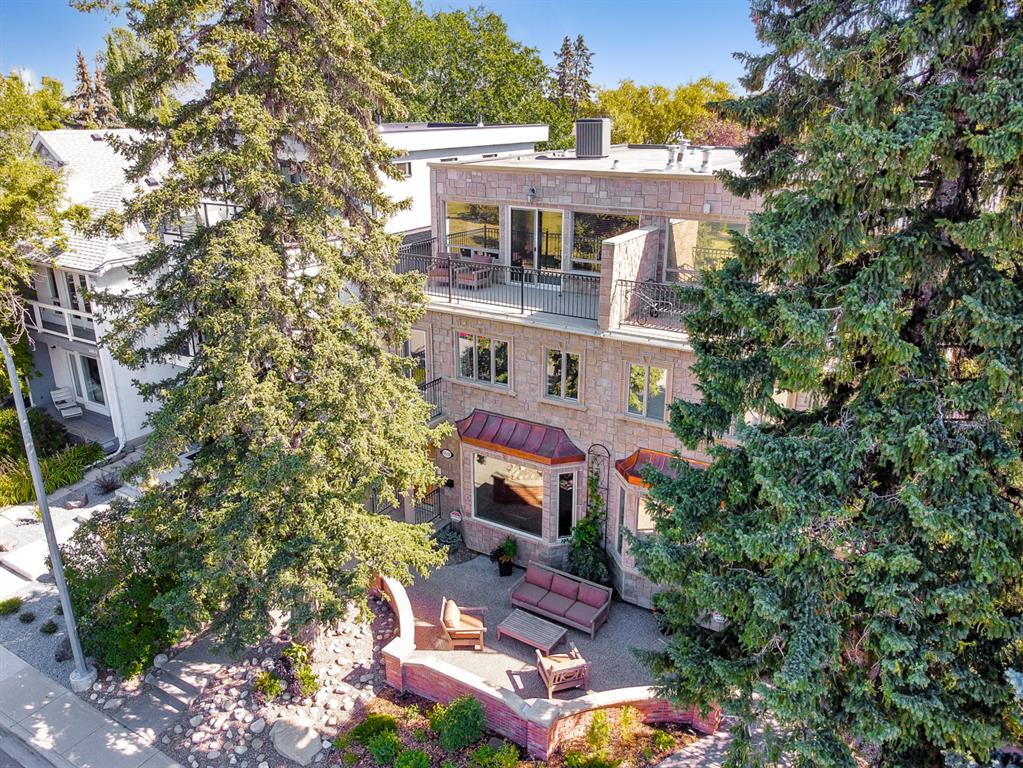 Location Location Location! A truly rare find and an incredible opportunity to live on one of Calgary’s most sought-after streets. Situated across from a beautiful green space and surrounded by parks and the Elbow River, this home offers outstanding views including those of the majestic mountains! Offering over 3000+ sq.ft. of total living space on 4 levels, this immaculate and stylish home has been extensively renovated using only the finest materials and workmanship, with no expense spared. The thoughtful nature of this home is a perfect fit for those looking for an awesome inner-city experience with all of the views, space, privacy and function imaginable. With a total of 3 bedrooms, 4 bathrooms, two family rooms, multiple large patios, air conditioning, 9' ceilings on main level and a triple garage this home truly ticks ALL of the boxes. The wonderfully open main floor offers an inviting foyer with great storage areas, an elegant & cozy living room with gas fireplace overlooking the park, limestone floors, a spacious and bright chef-inspired kitchen that includes high-end custom cabinetry, stunning Palomino quartz countertops, top-notch appliances including a Sub-Zero side by side fridge/freezer, 48" Thermador Professional range and matching hood, Bosch dishwasher and a large corner pantry. Open to the kitchen is a large dining area which leads to a large back deck and private backyard with fire pit, perfect for those who love to entertain family and friends outdoors. The front living room overlooks the private courtyard and green space making it a perfect place to relax after a busy day. The powder room is a true showstopper and features incredible custom walnut millwork. All of the doors in this home are solid maple and have Emtek hardware which is another example of superior workmanship found throughout the entire home. On the second level you will be captivated by the spacious master retreat with a spa-inspired ensuite equipped with Kohler, Grohe and Toto bathroom fixtures, a steam shower, soaker tub and absolutely gorgeous custom walk-in closet with built-in cabinetry. The third floor is truly exceptional and features a large bedroom with walk-in closet that would also make for a great home office, a 3 piece bath, a built-in kitchen (with bar fridge and dishwasher), a bright and inviting family room with a gas fireplace, pool table and expansive deck facing west showcasing spectacular mountain views. The basement offers a private gym, tons of storage space and a rare triple garage which holds three full-sized vehicles. This home is a perfect fit for those looking for a more lock-and-go lifestyle as it offers beautiful low maintenance landscaping and absolutely no condo fees. Only a 5-minute walk to trendy 4th Street and less than a minute to the river pathways. The home is a walk-in ready gem! (id:22211)
