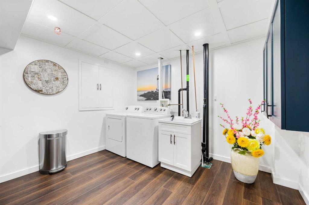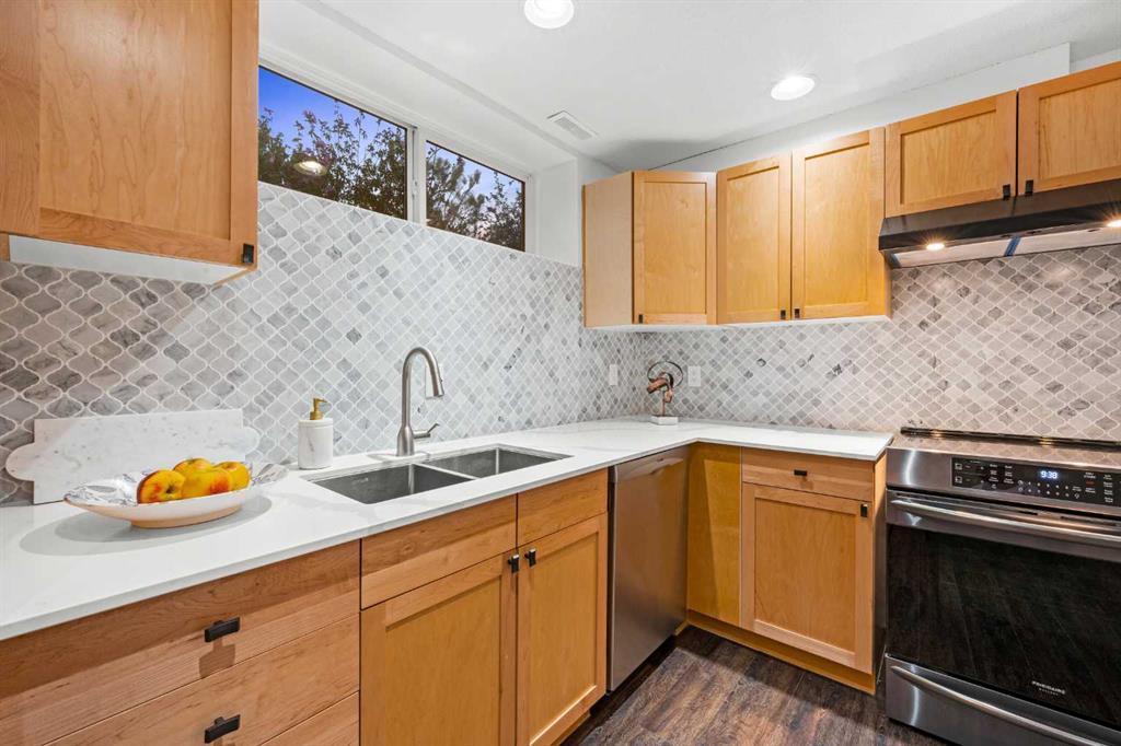 Proudly Presenting 3756 – 36 Ave SW – A Remarkable Renovated Bungalow in the Heart of Rutland Park, the complete embodiment of lifestyle, location, functionality, and pride of ownership. This extensively and beautifully renovated 1950's bungalow is a true gem in the mature community of Rutland Park. What sets this home apart is that it was thoughtfully renovated for the owner, not a flip. With 6 bedrooms and 2 full bathrooms, including a legal secondary suite, this home offers over 2,500 sq ft of developed living space, providing ample room for a growing family or potential revenue generation. As you approach the property, you'll be immediately drawn in by the curb appeal and the meticulously landscaped front yard featuring dark Hardie Board and lush green grass. The property sits on a quiet cul-de-sac and boasts a detached oversized double garage with additional parking space for up to 3 cars, a rare find in this inner-city beauty. Step inside, and you'll be welcomed by gleaming and contrasting hardwood floors throughout the main floor, creating a seamless flow from room to room. The open floorplan allows for a light and airy ambiance, perfect for entertaining. The living room showcases beautiful built-ins and ample window space, filling the space with natural light. The chef's kitchen is a true delight, featuring chic white and blue two-toned cabinets, elegant quartz countertops, under-cabinet lighting, and high-end stainless-steel appliances. A large peninsula adds extra counter space for socializing, while the adjacent formal dining room is perfect for hosting gatherings. The main level leads out to a large composite deck in a park-like setting, overlooking one of the largest private lots in the area, of almost 9,000 square feet. The backyard offers a peaceful and private oasis with easy-to-maintain landscaping and newer fencing, featuring a spacious deck with glass panels and metallic privacy panels, seamlessly blending indoor and outdoor living. The h ome offers three well-sized bedrooms on the main floor and an additional three bedrooms in the fully developed basement. The basement is a legal secondary suite, complete with a private entrance, making it ideal for an extended family or generating rental income. With a short 10-minute drive to Calgary's downtown core, this home epitomizes everything you're looking for in an inner-city, family bungalow. It's conveniently located just steps away from Rutland Park playground and close to schools, shopping, public transit, and easy access to the downtown core.. and just 10 minutes walk to Mount Royal University, making this property even more appealing. Don't miss the opportunity to make this exceptional home your own. Call today for your private viewing and be prepared to fall in love with this beautifully renovated and Legal suited, bungalow in Rutland Park! (id:22211)