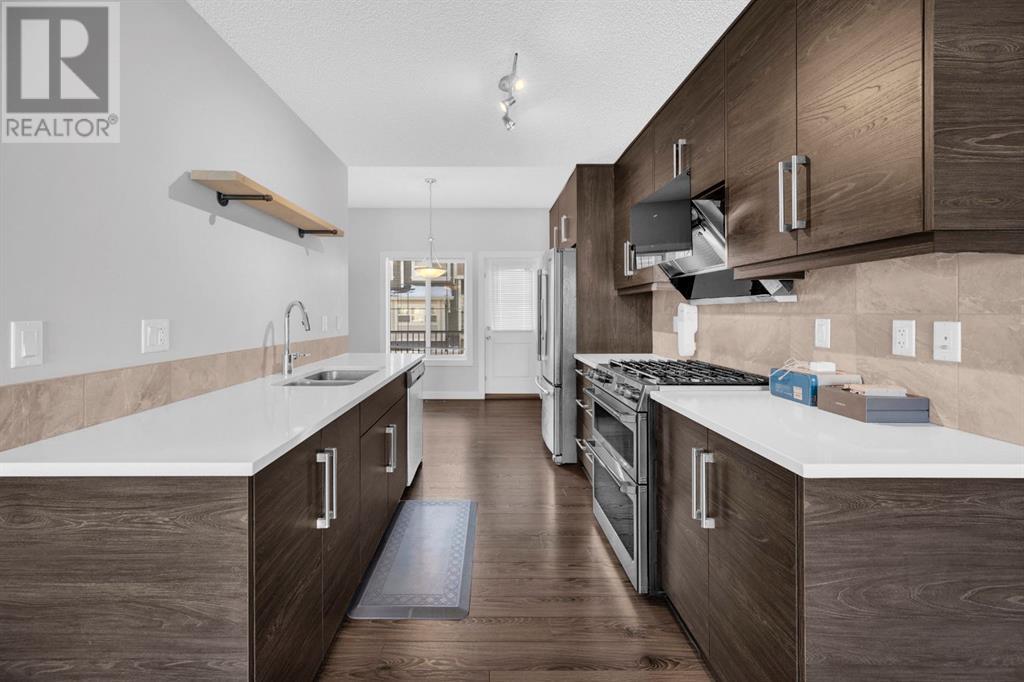 Move-in ready, 3-storey townhouse featuring 2 Beds, 2.5 Baths with 2 car garage, and 1,177 sqft of living space in Nolan Hill! As you step in, the heated double-car garage with plenty of storage space makes it a perfect place for your Cars and more. As you walk up to the main floor, you will enjoy a bright east-facing living room with 9' high ceilings and an open floor plan throughout. The kitchen is equipped with Quartz countertops, SS appliances, an upgraded Gas stove, an upgraded hood fan, and more. Additionally, a balcony with gas hookup and a half bathroom finish off the main floor. The third floor offers 2 bedrooms with its own Ensuite baths. Its west-facing primary bedroom is bright and sunny with a large window, offering his/her closet and 4pc Ensuite. The second bedroom is no less and offers a large walk-in closet with a 4pc Ensuite. The laundry is also conveniently located between the two rooms on this level. Moreover, the home features Central A/C and its near proximity to parks, playgrounds, and public transit makes it a perfect fit for families. Situated minutes from Stoney Trail, Costco, YMCA, T & T Supermarket, and more! Book your showing today and don't miss out on this spectacular opportunity! (id:22211)