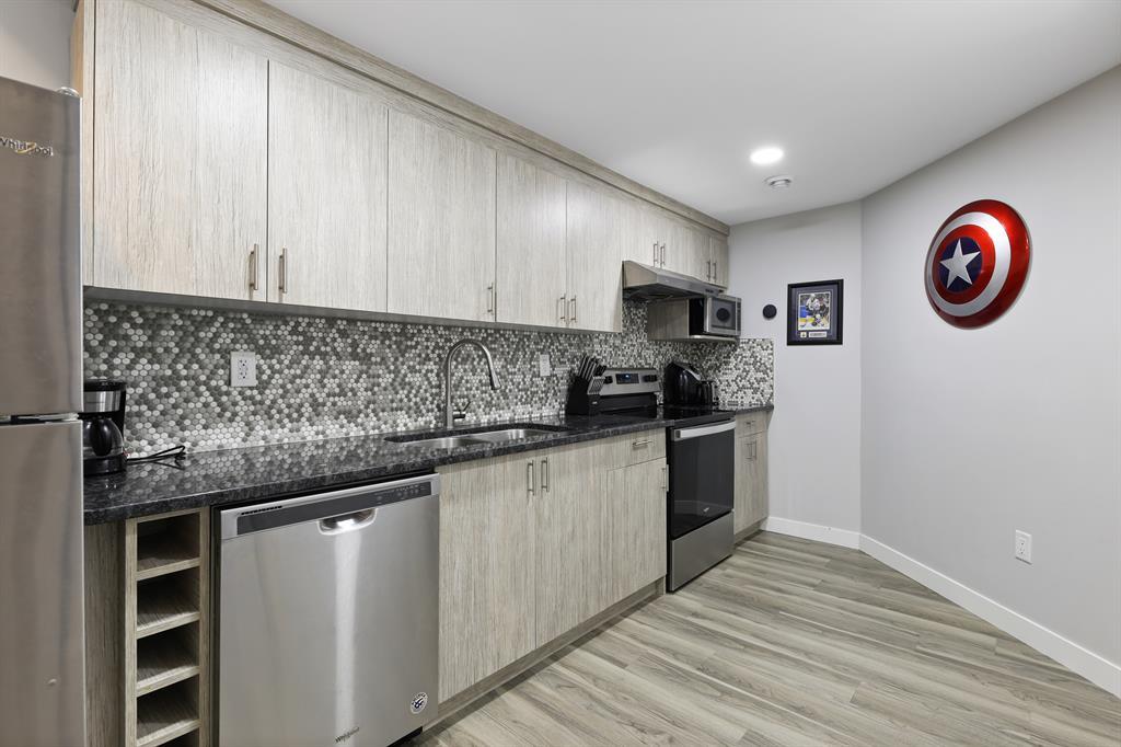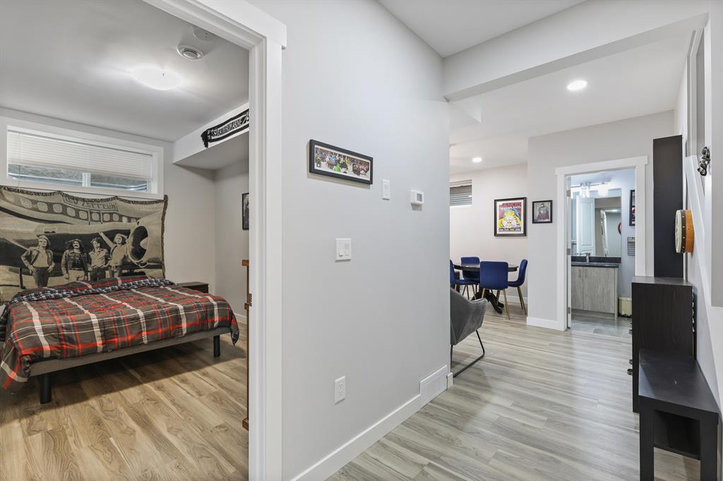 ** Future Park and School location across the street ** Income Producing Mortgage Helper ** Professionally developed legal suite with a private rear entrance and indoor stairwell ** Move in this Summer and start enjoying this convenient Mahogany Lake Location - Steps away from the Clubhouse, lake, ponds, Ice rink, parks, pathways, schools, shopping, soccer, bike paths, South Pointe Hospital, transit and the major south expressways. A wonderful air conditioned urban style home with many upgraded features & meticulously crafted - Truly a custom built dream home. 2800 SF of living space offering 4 bedrooms, 4 bathrooms, 9' main floor ceilings, Double attached garage and a rare basement legal suite ... Check out the floor plan and 3D tour! This OPEN design features a smart CHEF's kitchen all over looking the dining area and great room. Upgraded Fit & Finish features include: luxurious vinyl plank floors, light & plumbing fixtures, modern white painted baseboard, doors, casings, and glass railings... and so much more! The kitchen is masterfully designed for efficiency and entertaining (elegant white cabinet doors & trims), quartz counter tops, electric cooktop with hood fan cover, upgraded stainless steel appliances & big walk in pantry, mosaic tiled backsplash, recessed lighting, dramatic central island with pendant lighting, an eating bar for four & under mount granite sink. Upstairs includes an oversized primary bedroom with a spa like ensuite and walk-in closet. Plus, two more generous sized spare bedroom, central bonus room and upper laundry room. NOTE: A 17' x 13' upper Bonus room is conveniently located at the top of the staircase for modern family living and movie nights. Other impressive features include: West facing rear 24 x 11 wood deck, fully fenced, rich front curb appeal with Hardie Board exterior and smartboard wood details, stonework, paneled garage door and covered front entry. You must put this home onto your 'Must See List! BONUS: A lake lifestyle ame nity beyond compare - Mahogany’s Central Beach site is the home of the community’s grand Beach Club, where residents have exclusive access to sandy beaches, a splash park, tennis courts, play equipment, a fishing pier and non-motorized marina, indoor and outdoor fitness equipment, barbeque pits, a hockey rink and more. The 22,000 sq.ft. Beach Club facility hosts a wide range of activities including educational and recreational programs, meetings and private functions. Purposefully designed as the focal point for the community, the Beach Club also includes a dedicated skate room, full-size gymnasium, multiple meeting rooms, plentiful storage and shower facilities. As a gathering place that will be beloved for generations, the Mahogany Beach Club is a place of shared laughter and joy, where neighbours gather year-round to enjoy the best of four-season lake living. Call your friendly REALTOR(R) to book a viewing! (id:22211)