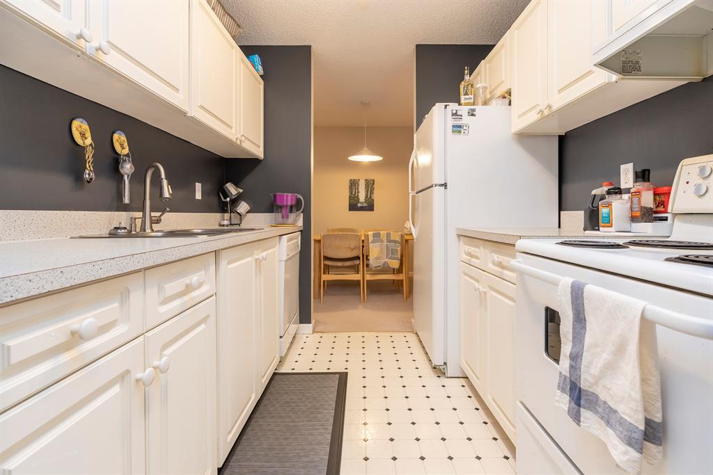 Lovely, bright main floor condo located close to shopping, parks and schools in Patterson. This condo offers two spacious bedrooms, both with large closets and north-facing windows; cool rooms away from traffic noise! Bedrooms share a four-piece bath with a tub-shower combo.This home has a well-planned galley-style kitchen with lots of storage, with a dining area conveniently located beside it. The living room is large has a fireplace, and patio doors onto a private, north-facing patio with a privacy fence.Located steps from Old Banff Coach Road, this home has excellent access to downtown either by car or public transit. There are a variety of parks and pathways within a short walk and shopping is a two-minute drive. An excellent choice if you're looking to live in a quiet established neighbourhood. (id:22211)
