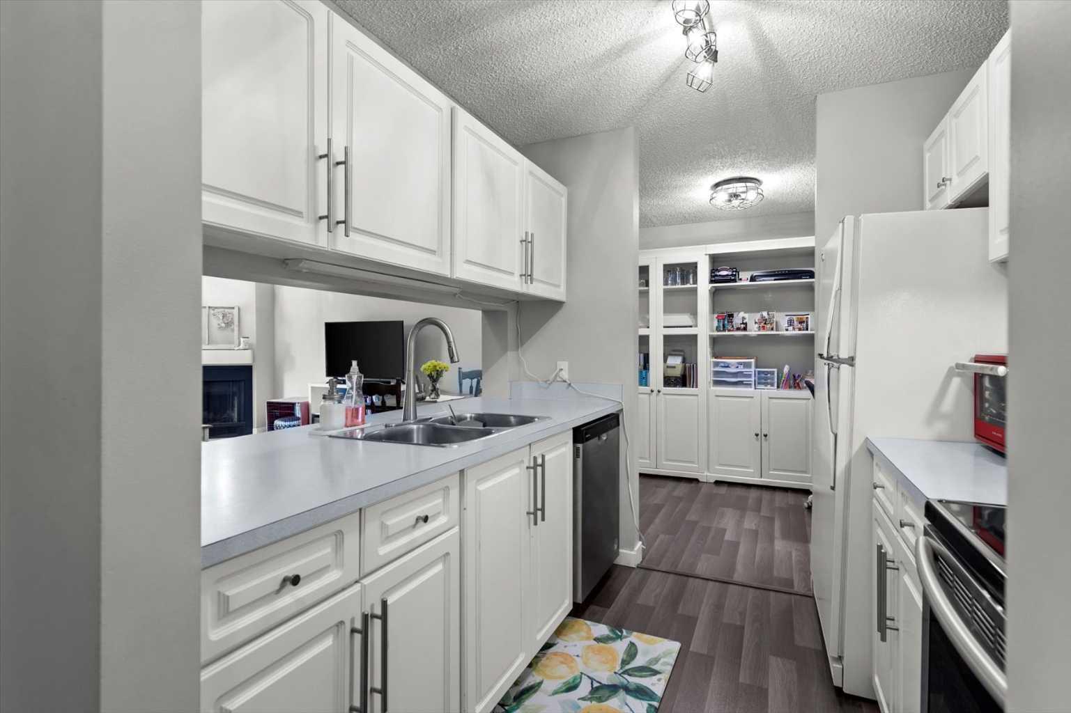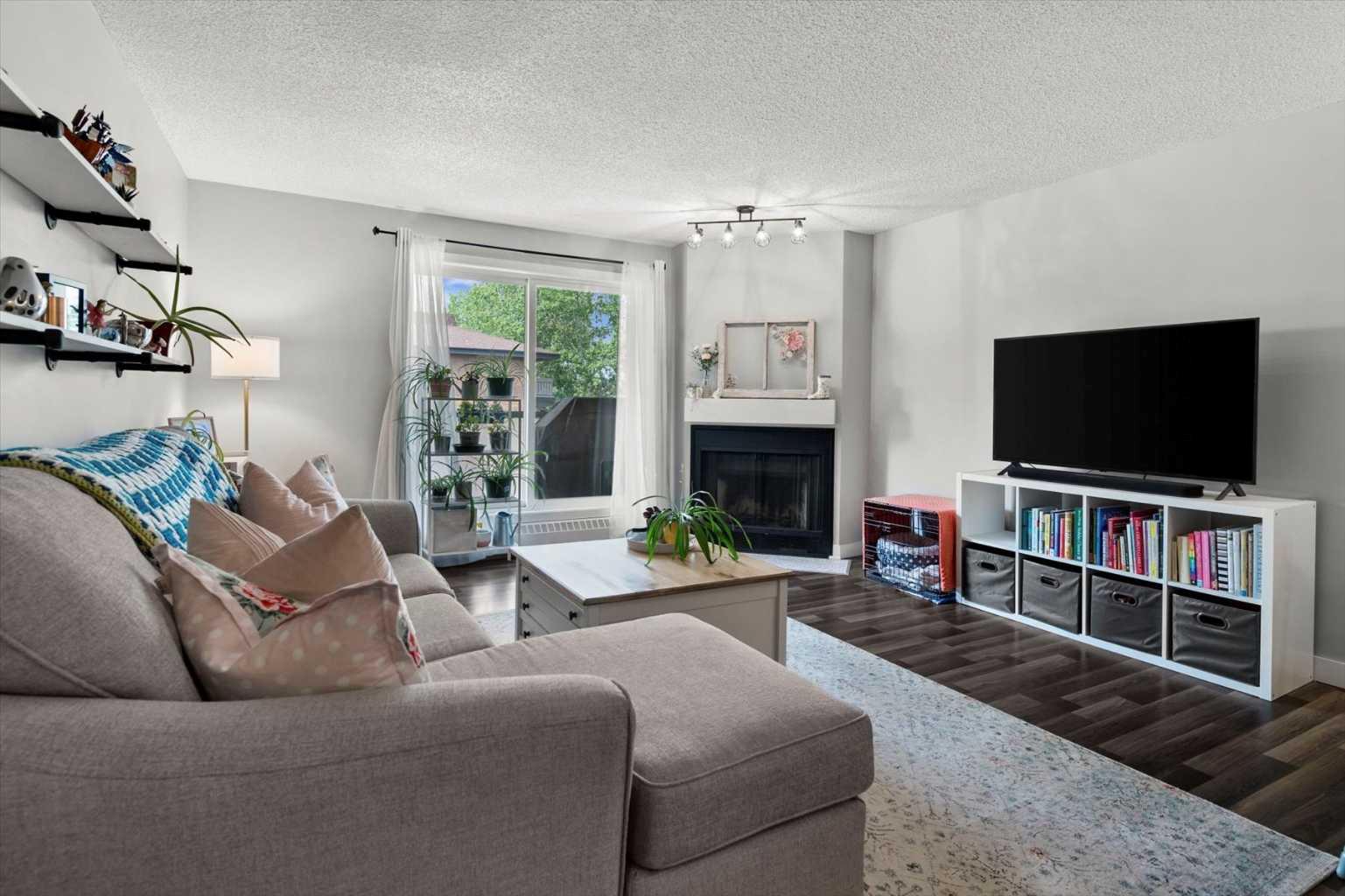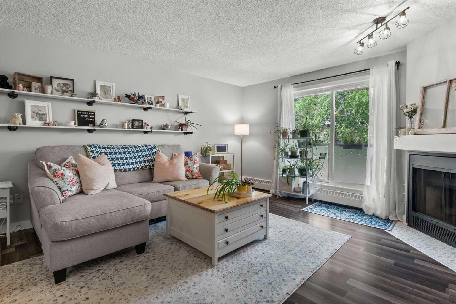 Welcome to this beautifully updated top-floor unit in the sought-after community of Patterson! Ideally perched at the top of Patterson Hill, this home offers unmatched convenience, just minutes to downtown, steps to transit, and with easy access to the mountains, Bow Trail, West Springs shopping, and nearby parks and walking paths. With updated flooring throughout, this move-in-ready condo is perfect for first-time buyers, as our client has enjoyed, or for investors seeking a reliable addition to their portfolio. As you enter, you're welcomed by an abundance of natural light from the southwest-facing exposure. To your right, the kitchen features timeless white cabinetry, updated appliances, and thoughtful finishes. A large pantry with wire shelving and additional storage, along with in-suite laundry, adds everyday functionality. Just beyond the kitchen, a versatile den serves perfectly as a home office or as an extension of the living space. The open-concept living room is centered around a cozy wood-burning fireplace, while sliding patio doors invite even more natural light and lead to your private balcony- deal for relaxing or summer BBQs. The primary bedroom is a true standout in the complex, offering exceptional size, ample closet space, and direct access to a well-appointed 4-piece bathroom. Its generous proportions and thoughtful layout make it a rare find. Whether you're strolling nearby walking paths, or commuting downtown, this location effortlessly combines urban access with peaceful surroundings.