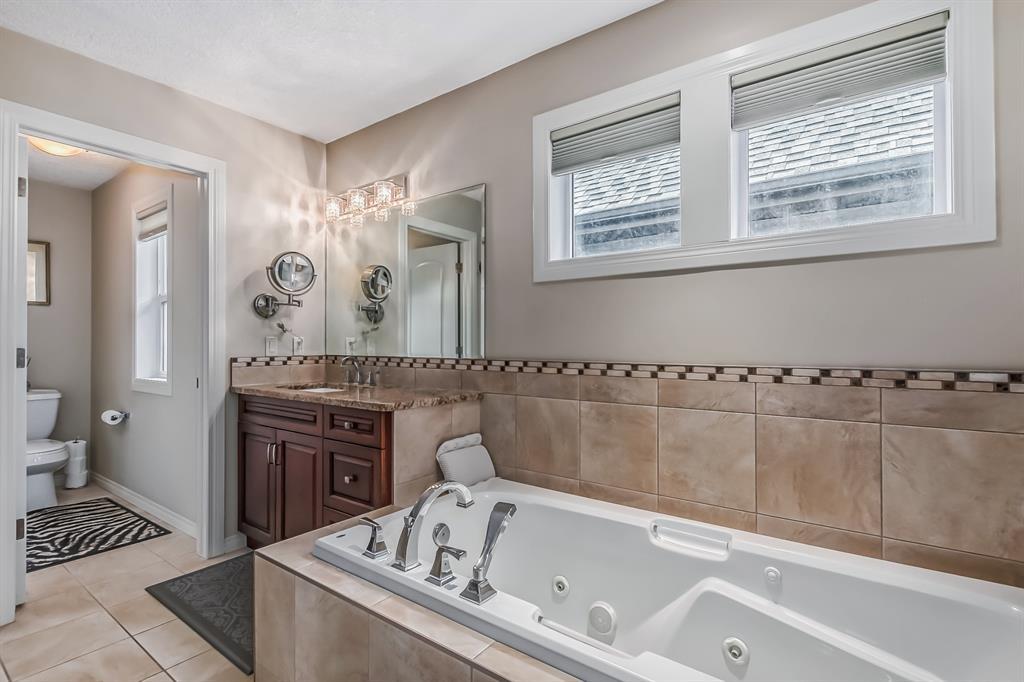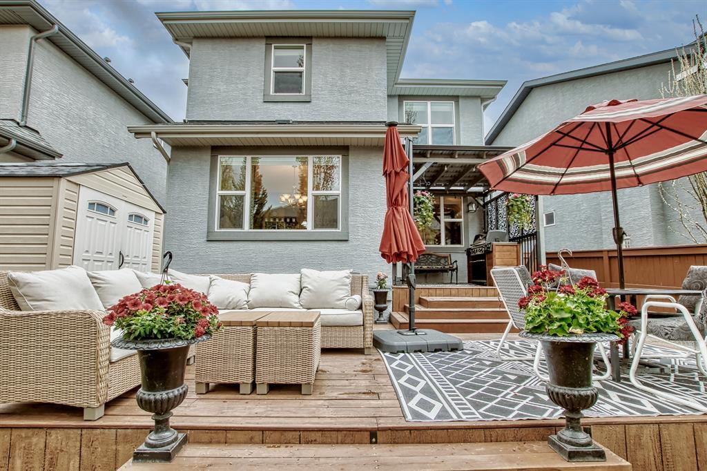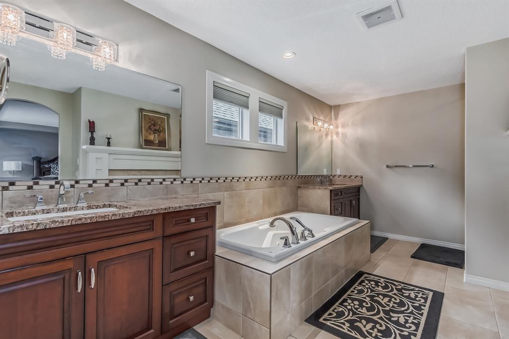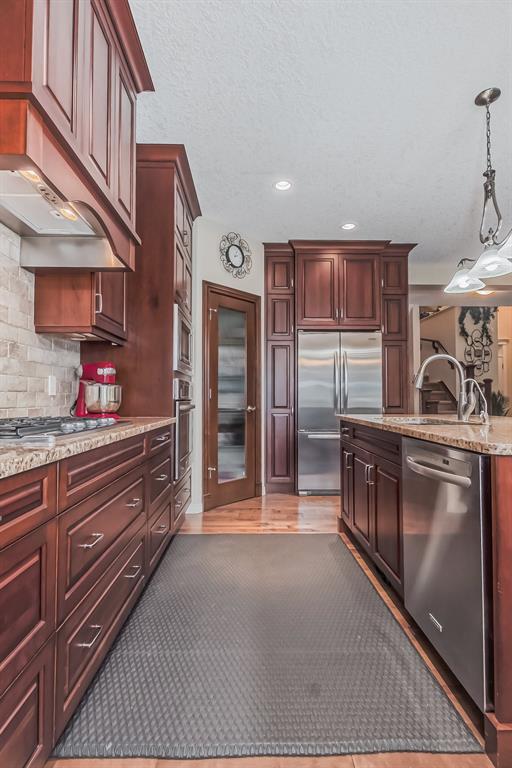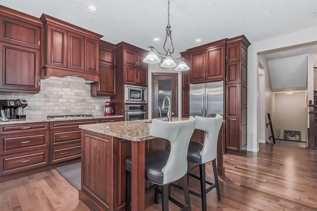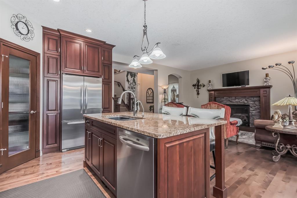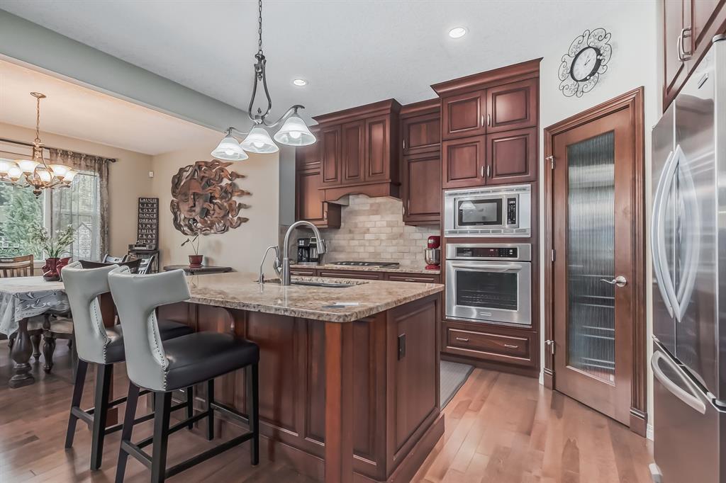 Custom built home, loaded with extras and in the heart of Cranston. Right from the front door you will feel the rich elegance immediately. Warm hardwood floors, iron railing, stunning fireplace and an outstanding kitchen including cherry wood cabinets, granite countertops, stainless steel appliances and this is only the beginning. The 2’ ADDITION added to the dining area gives you room for a large family table. Garden doors leads out to your private covered pergoda to enjoy all year round. Stepping down to the 10 x 22’ tiered deck offers enough space for all of your patio furniture to make the most out of the great outdoors. A maintenance free yard includes artificial turf both front and back, exposed aggregate sidewalk/driveway, completely fenced yard which gives you peace of mind when travelling. Heading upstairs you will find a fantastic bonus room featuring vaulted ceiling, large window, electric blind and a 4’ EXTENSION added to the room which gives you space for a big screen tv and sectional couch. The primary bedroom is a treat to yourself … designer ceiling, hardwood floors, 2 sided fireplace and a unique ensuite that will catch your eye. Offering a walk in closet, 2 vanities, large corner shower, jet tub to enjoy with a glass of wine while watching the fire. The lower level, professionally developed by the builder includes large rec room, third bedroom and full bath. A double front attached garage large enough for 2 vehicles and the work bench you have always dreamed about (ADDITIONAL 4’ added at construction time). Freshly painted fence/trim on the house and exposed aggregate resealed. Steps away from several walking/bike paths with a view of the river, a great place for a picnic, dog walking or family time together. Just move in and enjoy! (id:22211)