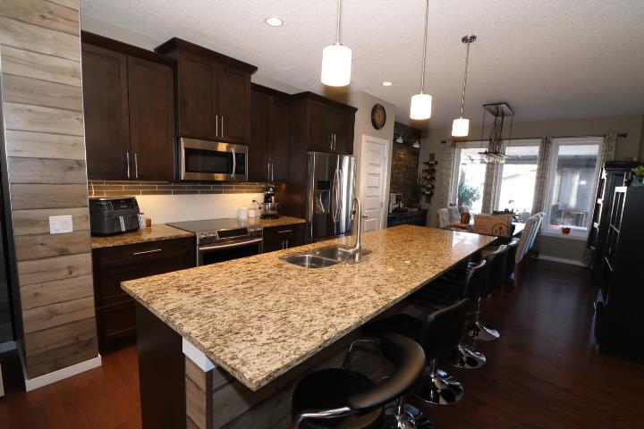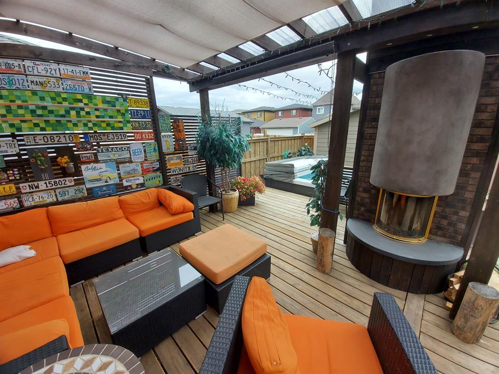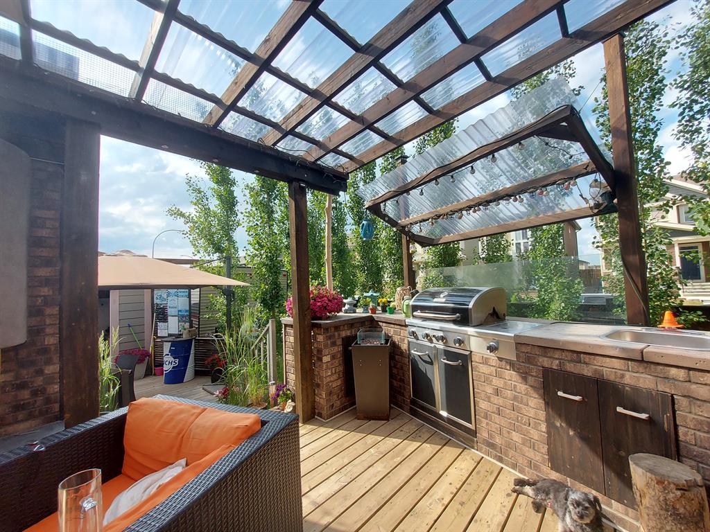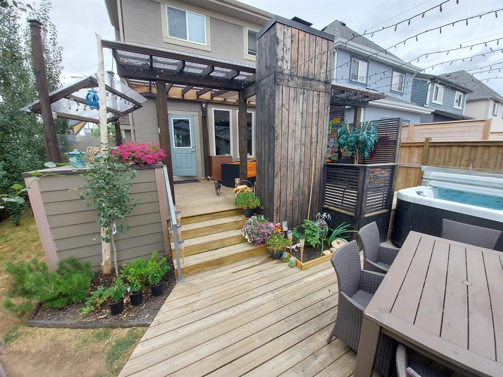 Welcome to a fantastic developed home in Mahogany. This 2 story 3 bedroom home with 3.5 bathrooms has been fully developed with a terrific family room in the lower level, an outdoor kitchen and entertainment space with built in BBQ, covered pergola, hot tub, exterior hanging lights and a wooden patio connected to the deck. A double garage, extended RV parking space that is gated, completely fenced yard, a poured concrete front sidewalk and central air conditioning completes the outside features added to the home since it was built in 2015 which has been immaculately maintained. This 3 bedroom home based on an open concept features maple hardwood floors, tall maple kitchen cabinets, large kitchen island, granite counter tops, two added feature walls in the living room and dining area add further custom appeal to the main floor. The powder room on main floor has also been accented with a stone detailed wall. The dining room over looks the covered deck with a pergola. Stainless appliances add that brilliant touch to the kitchen. A big master bedroom with walk in closet plus ensuite bath and large windows is the perfect place to settle back for a night's good rest. Two other large bedrooms and a 4 piece main bathroom makes this the perfect family home with close walking distance to parks and schools. The basement has a large family room space that could be converted into an extra guest space with a Murphy bed or turn it into a entertainment theatre space. A three piece bath in the basement adds more lower level function as a possible 4th guest bedroom if needed. Other influencing amenities are the community lake access, parks, playgrounds, schools, shopping, hospital and quick access to Stoney Trail or Deerfoot Trail adds travel convenience. A short walk from the home puts you into a community nature park space to enjoy in all four season. Easy access to Stoney Trail and Deerfoot Trail whisks you in to the downtown core, airport or any of the other city quadra nts in quick time. (id:22211)