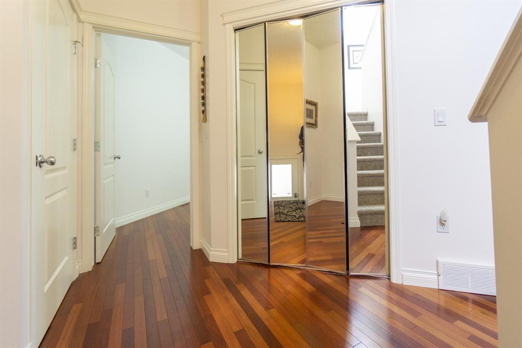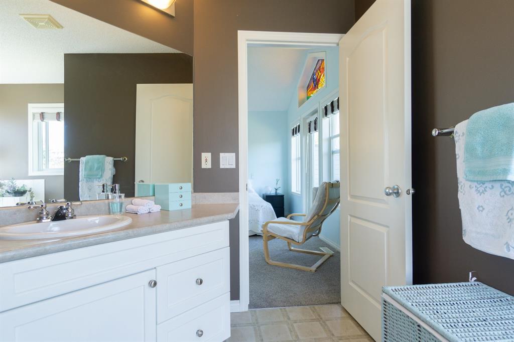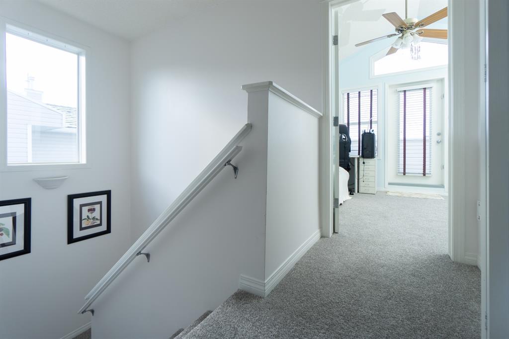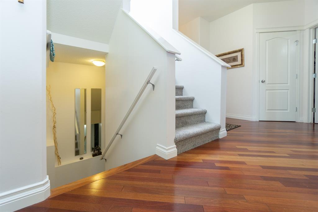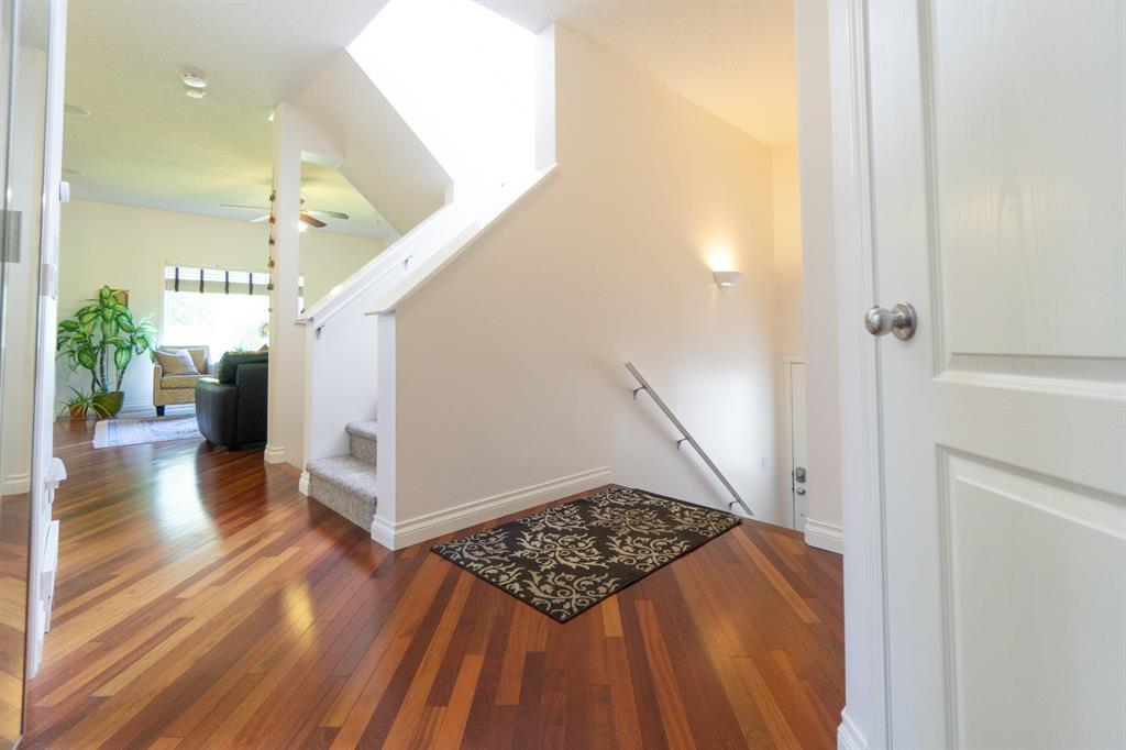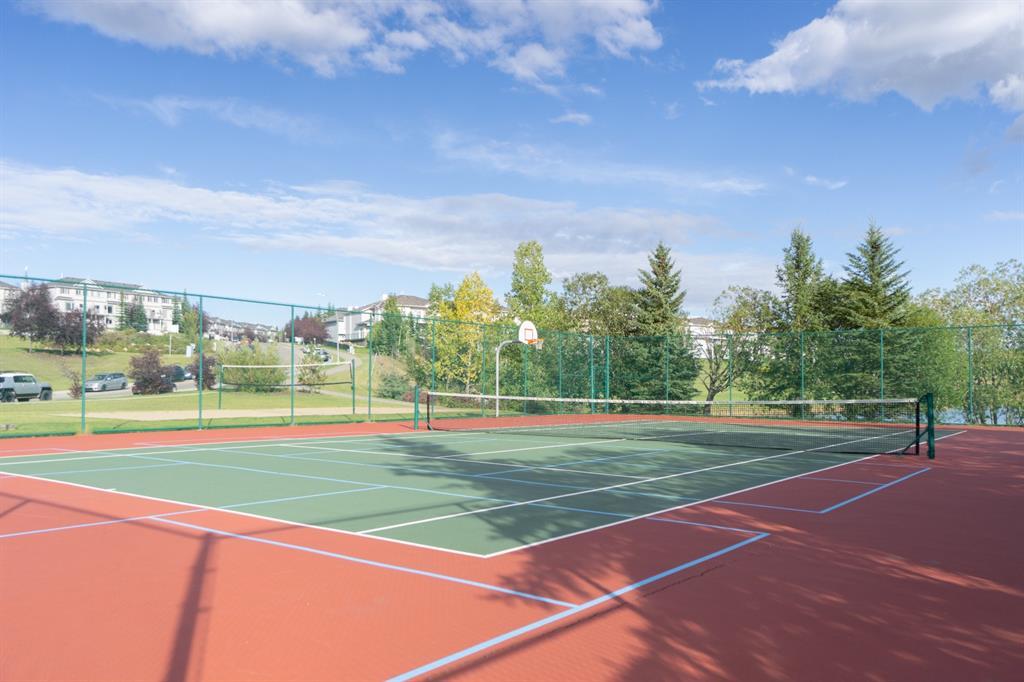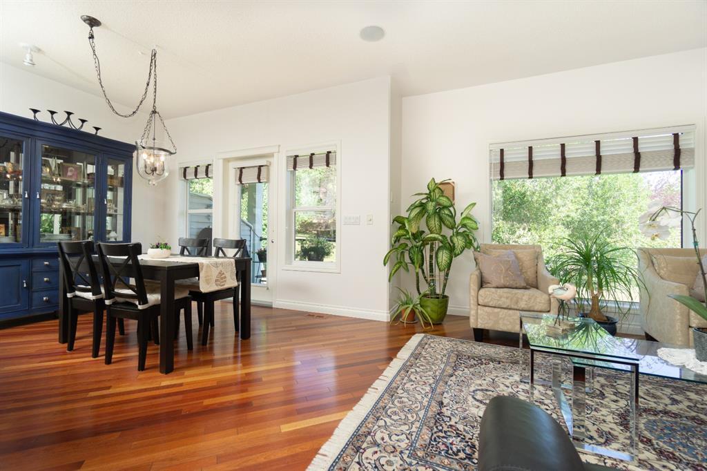 This beautiful and stylish two-storey townhouse enjoys a wonderful location, backing onto a quiet, treed green-space. You will love the bright and open layout with nine-foot ceilings and gorgeous cherry hardwood floors. The large kitchen, with its granite counter-tops & new stainless-steel appliances, along with a spacious dining area, make this a perfect home for entertaining. The corner fireplace warms up the comfortable living room and the garden door in the dining area open to the deck, overlooking the ponds and green space. A half-bath and den make up the remainder of the main floor. Upstairs you will find two master bedrooms with vaulted ceilings, walk-in closets and full ensuite baths. Each bedroom also enjoys its own private balcony for you to relax and take in the views. Completing this level is the handy laundry area with new Bosch washer and dryer. The fully developed basement offers another bedroom and a three-piece bath, along with a spacious family room. This level walks out to the attached double garage from a convenient mudroom. Other thoughtful features of this home include built-in sound system, four ceiling fans, custom blinds, new carpet and fresh paint. Outside, you can enjoy strolling or cycling the paved paths, a game of tennis or some beach volleyball. The Rocky Ridge Brownstones enjoy the amenities of The Lakes at Rocky Ridge, which include a gym, theatre, activity room, and library. The LRT station is a just 7-minute walk, and there is quick access to shopping, restaurants, and the Rocky Ridge Leisure Centre. Nothing to do but move in and enjoy this beautiful home and the surrounding amenities. (id:22211)