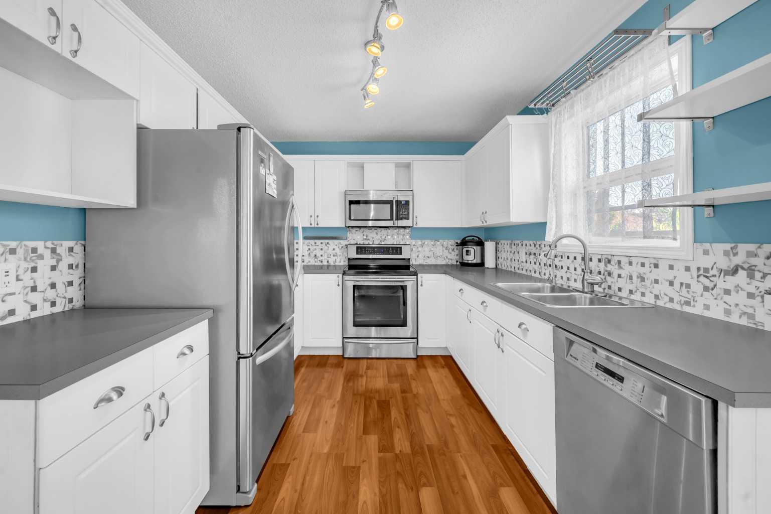 Step outside into the beautifully maintained backyard, a cheerful, sun-filled retreat with a generously sized deck, ideal for summer barbecues, evening gatherings, or simply unwinding in the fresh air. A new roof installed in 2021, offering both durability and peace of mind. Ideally located with easy access to Metis Trail and within walking distance of the L.R.T. station, this home is also close to parks, walking paths, schools, shopping centers, and a wealth of amenities. Everything you need is just moments away!