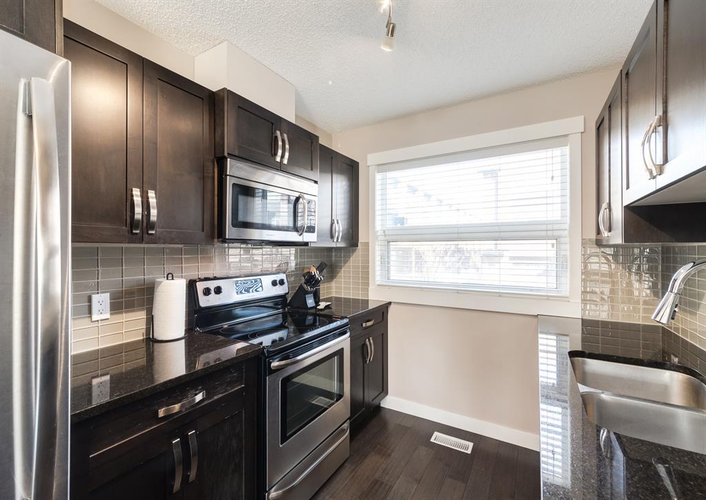 Welcome to what could be your new home in the desirable and established community of Coventry Hills! This immaculate, move in ready 3 storey townhome consists of 2 bedrooms, 2 full baths and a functional layout with 1065 square feet of total living space. You’ll love how bright and airy this home feels thanks to the natural light that streams in through its many windows and the fact that it backs onto a green belt that overlooks the community. The main floor boasts gorgeous engineered hardwood flooring and a galley style kitchen with stainless steel appliances and granite countertops that provide lots of prep space ideal for those who love to cook. The kitchen flows into a great size living room with a dining area and access to the first of two sunny West facing balconies. This one is perfect for BBQ’ing and eating al fresco since there’s even room for your patio furniture. The tranquil primary suite spans the entire upper floor and offers access to your private balcony where you can take time to yourself before or after work or just step out onto it when you want a breath of fresh air or to gaze up at the stars at night. The primary suite features a walk-in closet and a spacious 4 piece ensuite with a deep soaker tub and a vanity with granite countertop. You’ll find a large second bedroom with a good sized closet and an ample sized 3pc bathroom with an oversized shower with seat and another large vanity with a granite countertop. An under the stair closet with stackable laundry and lots of storage complete the fully finished basement. Your personal parking stall is located directly out your front door for optimal convenience with bringing in groceries. There’s additional visitor and street parking available nearby for guests. This low maintenance townhome means you can let someone else shovel the snow and mow the lawn. The location is unbeatable in this amenity rich community with 3 schools (including North Calgary High coming this Fall) all within walking distan ce, along with parks, pathways, playgrounds, shopping centres, grocery stores, restaurants, a movie theatre and more all just minutes away. It’s fantastic for those commuting to work with easy access to Stoney & Deerfoot Trails and Country Hills Boulevard - jet setters will love the quick drive to the airport. Come check it out today! (id:22211)