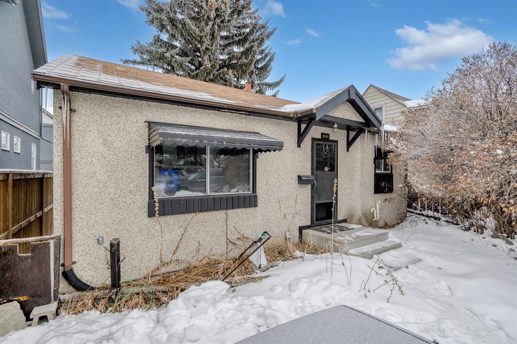 Fantastic opportunity to build your custom home in the sought after community of Winston Heights. Rebuild now or hold it as a long-term investment property! This bungalow sits on a 37.5 x 125 ft, RC-2 zoned lot on a quiet tree-lined street. This 1 bedroom home has laminate flooring, modern paint colours, and a 4 piece bathroom. A beautiful archway separates the living room from the dining and kitchen area. The fully fenced backyard has mature trees and a double detached garage. There is a front driveway as well for additional parking. Very convenient location just minutes from The Winston Golf Club, parks, schools, shopping and transit for quick downtown access. Take advantage of this excellent investment or redevelopment opportunity! (id:22211)