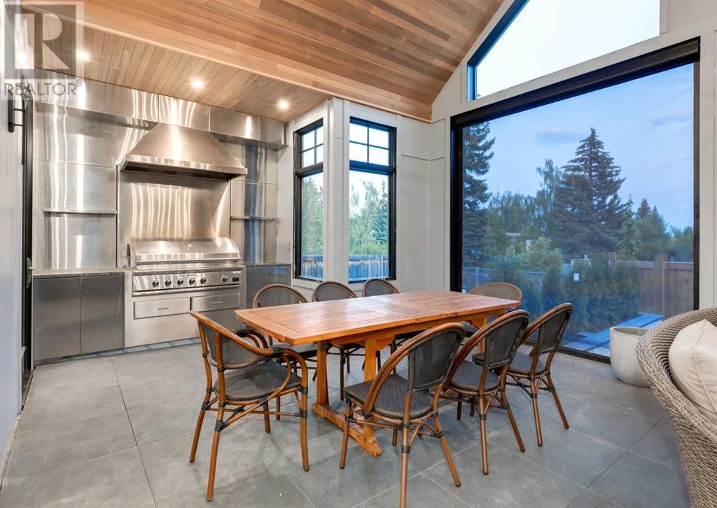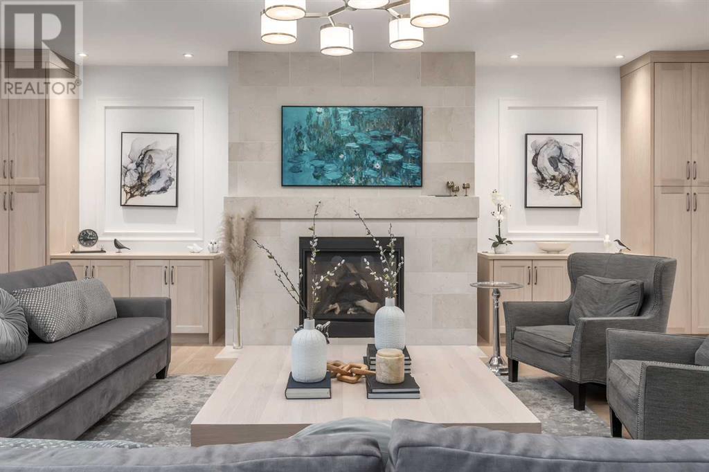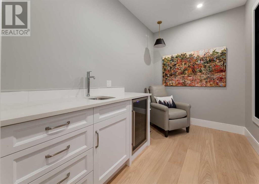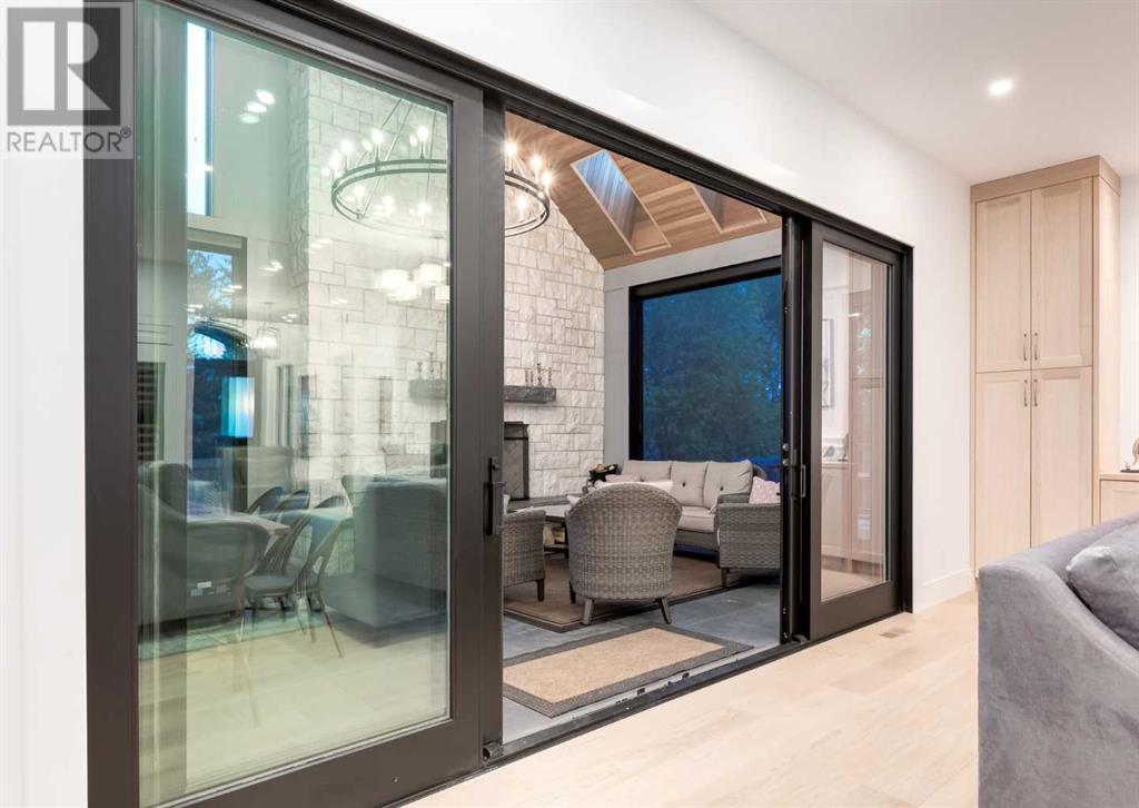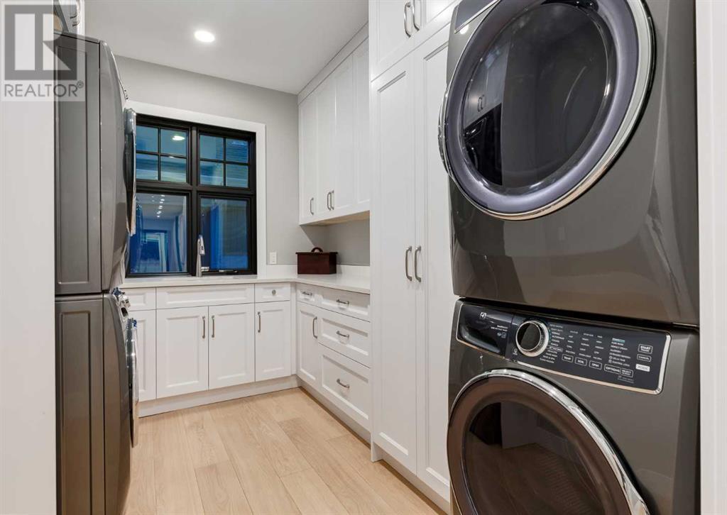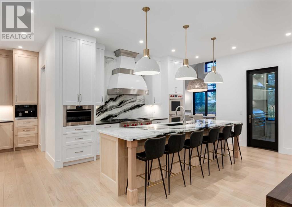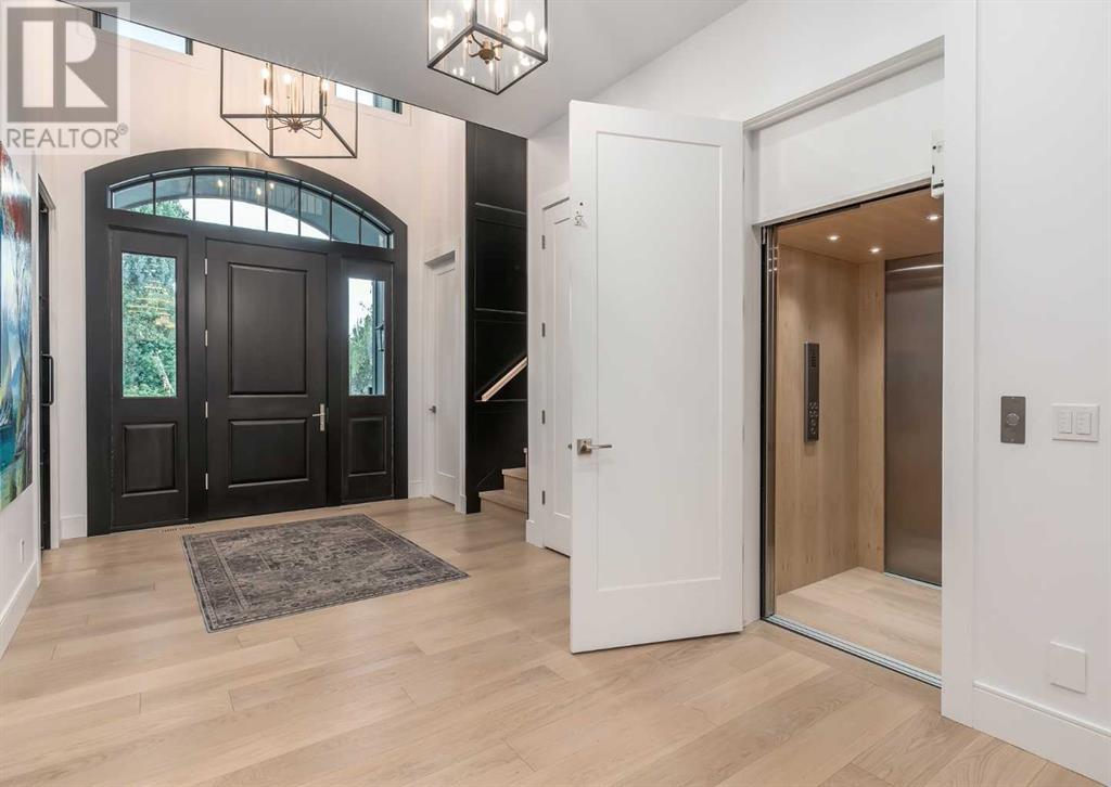 Welcome to this prestigious custom home of true craftsmanship in Britannia, located steps away from the renowned Calgary Golf & Country Club. This dream property offers luxurious living spaces and remarkable amenities. Prepare to be captivated by the ease of lifestyle and unparalleled living experience this property will provide. The grand foyer features two-story ceilings, an opulent chandelier, and ample hidden storage. The impressive staircase with wood detailing beckons exploration across four levels. Convenience is ensured by the spacious elevator connecting the 4-car garage to the fourth-floor entertainment space. This home boasts 5 bedrooms, all with ensuite bathrooms, totaling 10 bathrooms in this home for ultimate comfort and privacy. Spanning over 7,600 square feet, this custom build exudes refined ambiance. The main level showcases an open concept living room and kitchen with white oak flooring and custom cabinetry. A stunning fireplace and built-in cabinetry make the living room perfect for relaxation and gatherings. The gourmet kitchen is a literal chef's dream, equipped with both gas and induction ranges, 3 dishwashers, pot-filler faucet, double ovens, 2 refrigerators, a large island with seating, and a butler's pantry with a food prep area and deep freeze. The built-in Miele espresso/cappuccino machine ensures you can enjoy your own at-home cafe experience whenever you desire. Indulge in the pleasures of wine with the temperature-controlled, on-demand dispenser conveniently located in the living/kitchen area. Entertaining is effortless with a formal dining room that leads you to a secret living room with a fireplace - a cozy hideaway for after dinner relaxation. An informal dining area next to the kitchen offers additional seating options. Large sliding glass doors open to the outdoor living area, complete with a grilling kitchen and wood-burning fireplace. The backyard oasis includes a paved driveway, green space, and a custom hot tub area with showe r, bathroom, and laundry. The second level comprises four bedrooms with ensuites, a laundry room, and ample storage. Included here is the primary suite offering luxurious amenities such as a fireplace, wet bar, and spacious ensuite and closet. Going up to another floor is a space designed for ultimate entertainment - a family room, wet bar, patio, and outdoor kitchen with stunning views of Calgary's downtown skyline. The basement is a haven for fun and recreation as it boasts a full bar, wine cellar with an old-world feel, family room/media area with a fireplace, a built-in golf simulator/viewing bar. Additional features of this level include an oversized garage with parking for six vehicles and a workshop area, storage rooms, guest suite, and two bathrooms. Words can hardly capture the magnificence of this property. Call today to book a private viewing and experience the sheer luxury and elegance of this outstanding home in person. Don't miss this opportunity to make it your own. (id:22211)