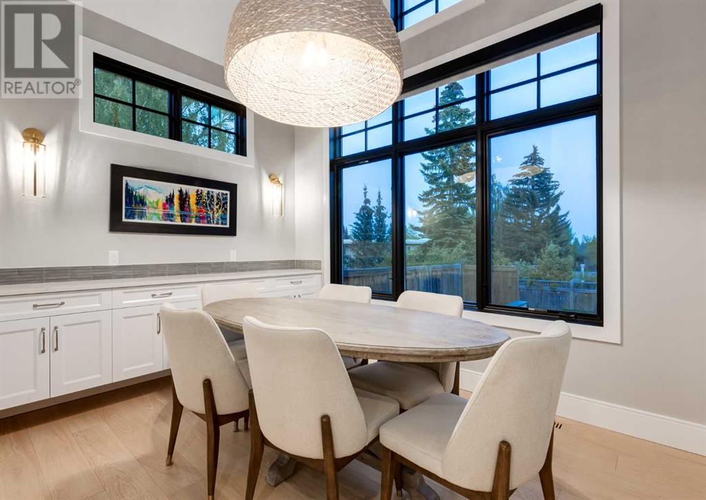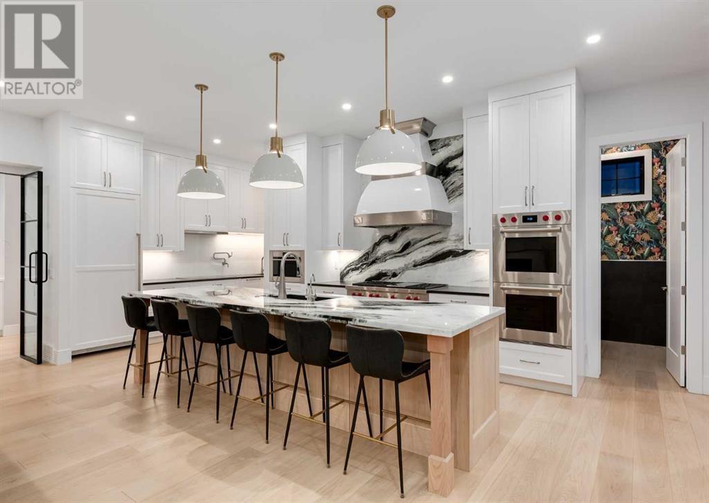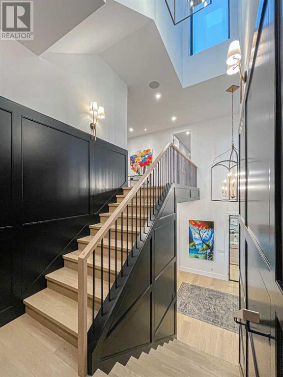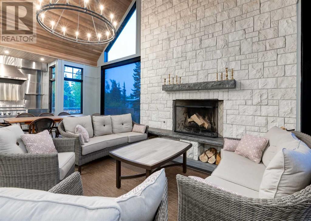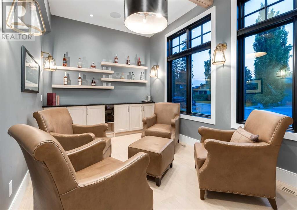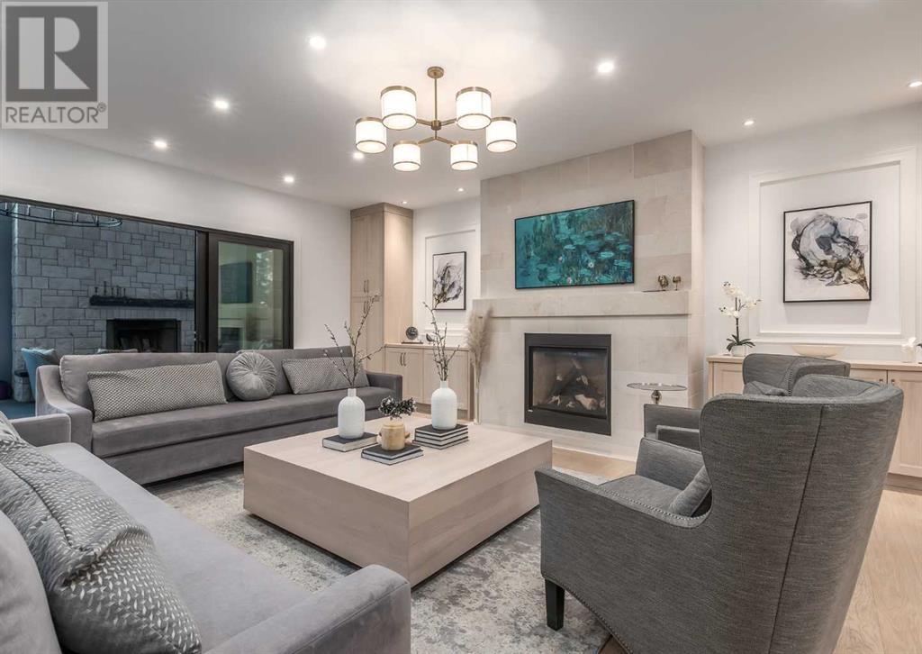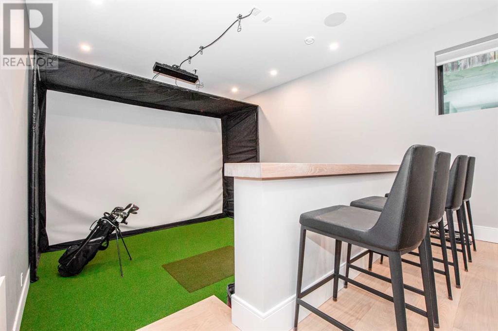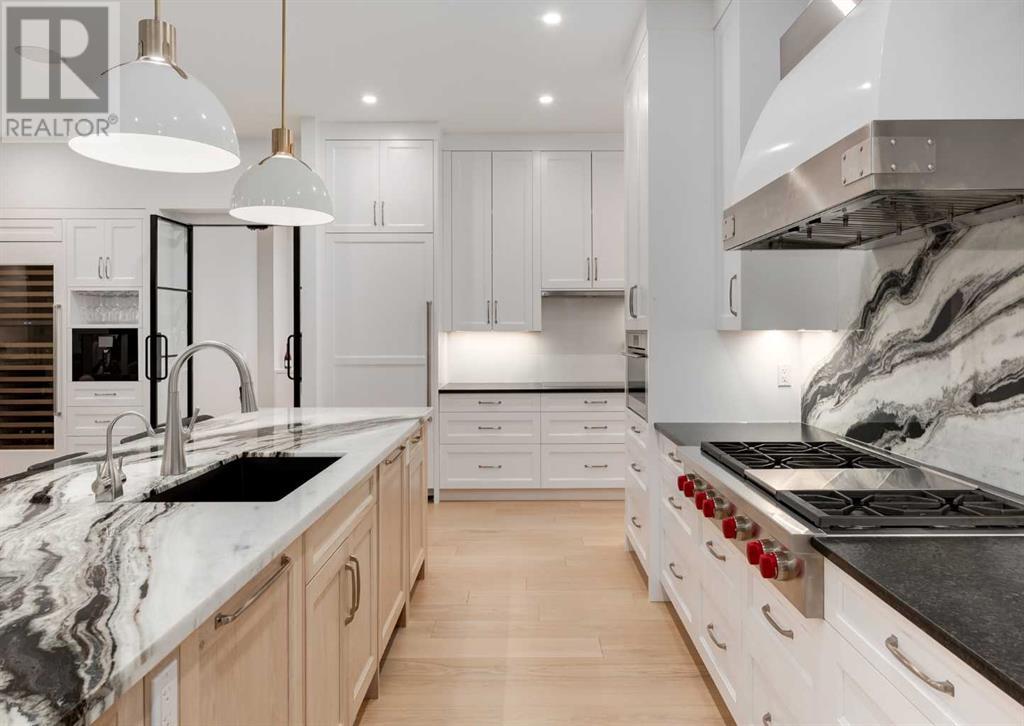 Welcome to this prestigious custom home of true craftsmanship in Britannia, located steps away from the renowned Calgary Golf & Country Club. This dream property offers luxurious living spaces and remarkable amenities. Prepare to be captivated by the ease of lifestyle and unparalleled living experience this property will provide. The grand foyer features two-story ceilings, an opulent chandelier, and ample hidden storage. The impressive staircase with wood detailing beckons exploration across four levels. Convenience is ensured by the spacious elevator connecting the 4-car garage to the fourth-floor entertainment space. This home boasts 5 bedrooms, all with ensuite bathrooms, totaling 10 bathrooms in this home for ultimate comfort and privacy. Spanning over 7,600 square feet, this custom build exudes refined ambiance. The main level showcases an open concept living room and kitchen with white oak flooring and custom cabinetry. A stunning fireplace and built-in cabinetry make the living room perfect for relaxation and gatherings. The gourmet kitchen is a literal chef's dream, equipped with both gas and induction ranges, 3 dishwashers, pot-filler faucet, double ovens, 2 refrigerators, a large island with seating, and a butler's pantry with a food prep area and deep freeze. The built-in Miele espresso/cappuccino machine ensures you can enjoy your own at-home cafe experience whenever you desire. Indulge in the pleasures of wine with the temperature-controlled, on-demand dispenser conveniently located in the living/kitchen area. Entertaining is effortless with a formal dining room that leads you to a secret living room with a fireplace - a cozy hideaway for after dinner relaxation. An informal dining area next to the kitchen offers additional seating options. Large sliding glass doors open to the outdoor living area, complete with a grilling kitchen and wood-burning fireplace. The backyard oasis includes a paved driveway, green space, and a custom hot tub area with showe r, bathroom, and laundry. The second level comprises four bedrooms with ensuites, a laundry room, and ample storage. Included here is the primary suite offering luxurious amenities such as a fireplace, wet bar, and spacious ensuite and closet. Going up to another floor is a space designed for ultimate entertainment - a family room, wet bar, patio, and outdoor kitchen with stunning views of Calgary's downtown skyline. The basement is a haven for fun and recreation as it boasts a full bar, wine cellar with an old-world feel, family room/media area with a fireplace, a built-in golf simulator/viewing bar. Additional features of this level include an oversized garage with parking for six vehicles and a workshop area, storage rooms, guest suite, and two bathrooms. Words can hardly capture the magnificence of this property. Call today to book a private viewing and experience the sheer luxury and elegance of this outstanding home in person. Don't miss this opportunity to make it your own. (id:22211)