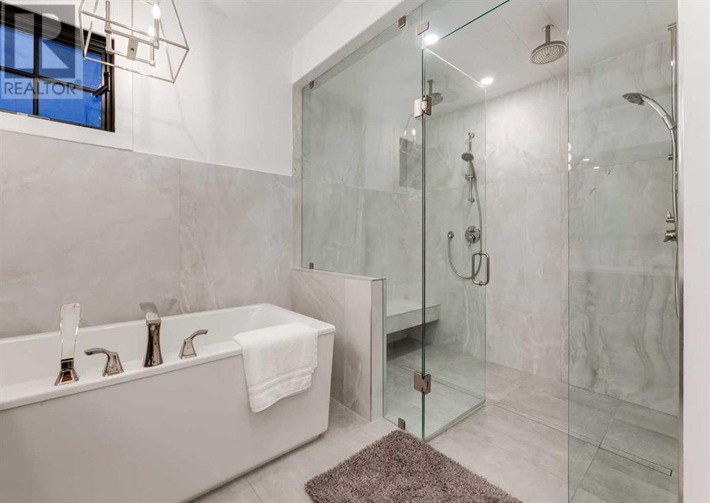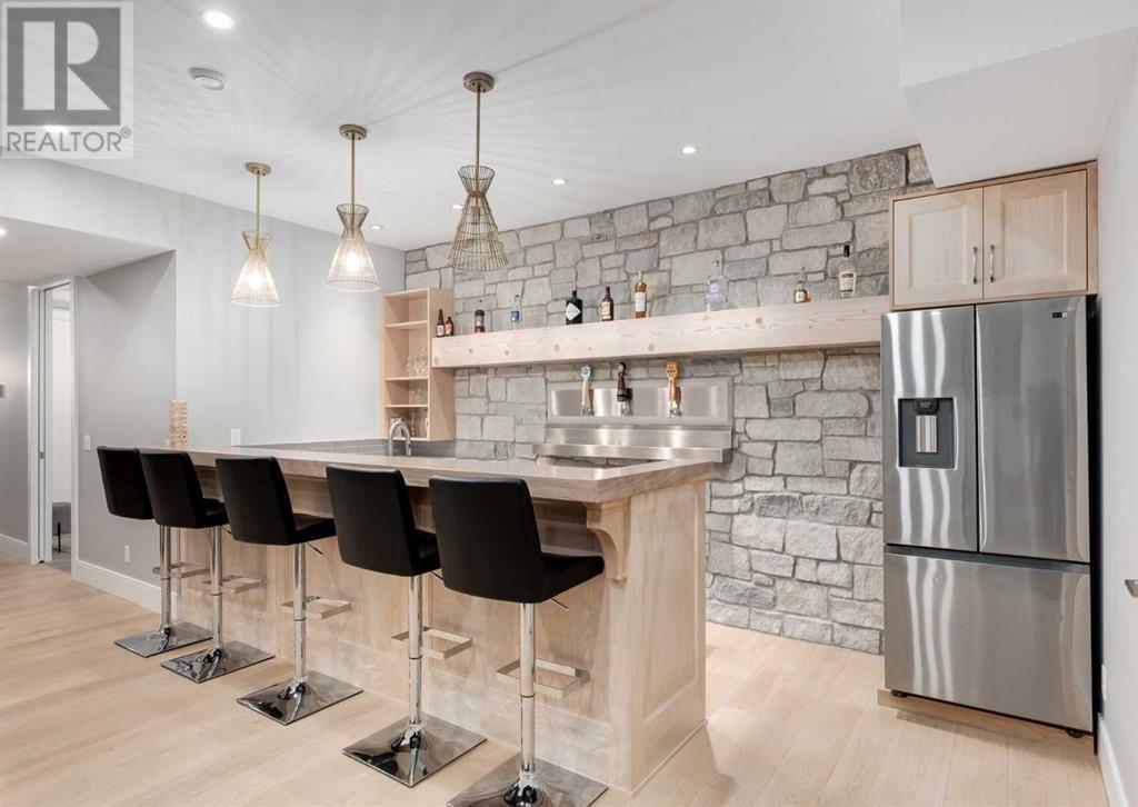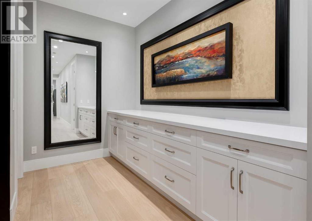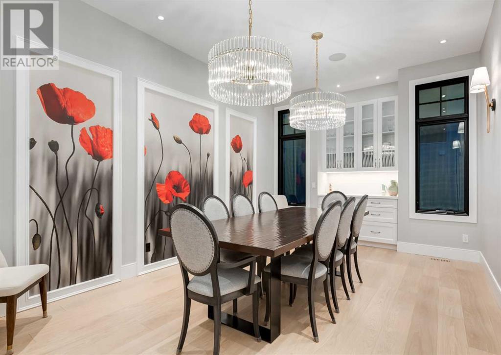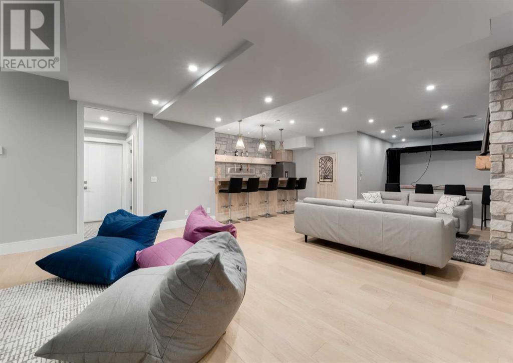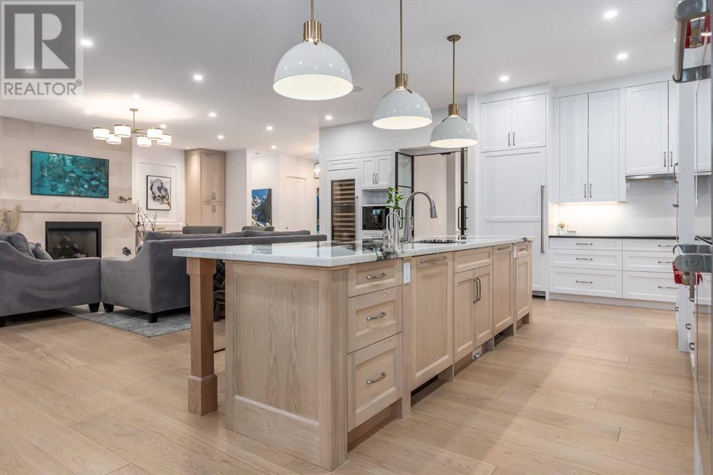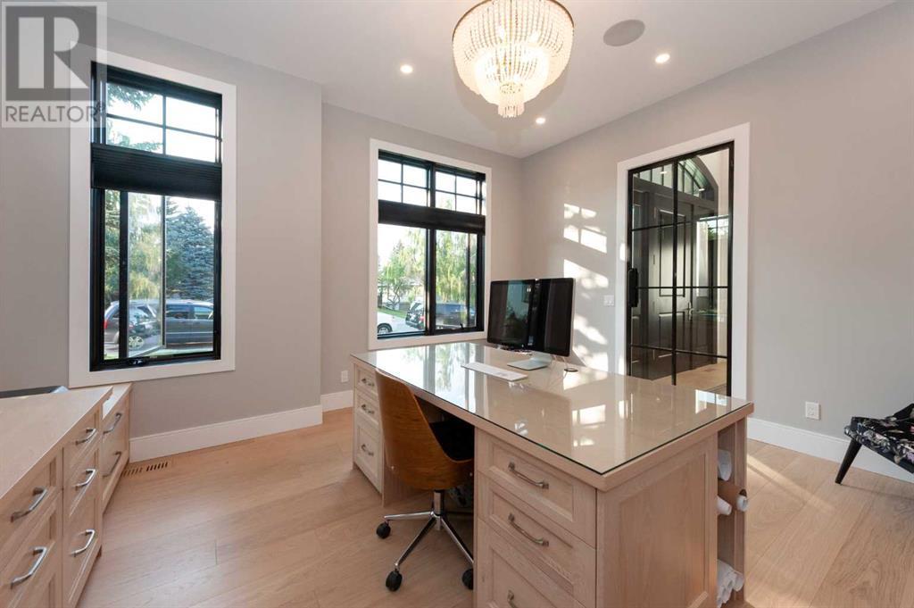 Welcome to this prestigious custom home of true craftsmanship in Britannia, located steps away from the renowned Calgary Golf & Country Club. This dream property offers luxurious living spaces and remarkable amenities. Prepare to be captivated by the ease of lifestyle and unparalleled living experience this property will provide. The grand foyer features two-story ceilings, an opulent chandelier, and ample hidden storage. The impressive staircase with wood detailing beckons exploration across four levels. Convenience is ensured by the spacious elevator connecting the 4-car garage to the fourth-floor entertainment space. This home boasts 5 bedrooms, all with ensuite bathrooms, totaling 10 bathrooms in this home for ultimate comfort and privacy. Spanning over 7,600 square feet, this custom build exudes refined ambiance. The main level showcases an open concept living room and kitchen with white oak flooring and custom cabinetry. A stunning fireplace and built-in cabinetry make the living room perfect for relaxation and gatherings. The gourmet kitchen is a literal chef's dream, equipped with both gas and induction ranges, 3 dishwashers, pot-filler faucet, double ovens, 2 refrigerators, a large island with seating, and a butler's pantry with a food prep area and deep freeze. The built-in Miele espresso/cappuccino machine ensures you can enjoy your own at-home cafe experience whenever you desire. Indulge in the pleasures of wine with the temperature-controlled, on-demand dispenser conveniently located in the living/kitchen area. Entertaining is effortless with a formal dining room that leads you to a secret living room with a fireplace - a cozy hideaway for after dinner relaxation. An informal dining area next to the kitchen offers additional seating options. Large sliding glass doors open to the outdoor living area, complete with a grilling kitchen and wood-burning fireplace. The backyard oasis includes a paved driveway, green space, and a custom hot tub area with showe r, bathroom, and laundry. The second level comprises four bedrooms with ensuites, a laundry room, and ample storage. Included here is the primary suite offering luxurious amenities such as a fireplace, wet bar, and spacious ensuite and closet. Going up to another floor is a space designed for ultimate entertainment - a family room, wet bar, patio, and outdoor kitchen with stunning views of Calgary's downtown skyline. The basement is a haven for fun and recreation as it boasts a full bar, wine cellar with an old-world feel, family room/media area with a fireplace, a built-in golf simulator/viewing bar. Additional features of this level include an oversized garage with parking for six vehicles and a workshop area, storage rooms, guest suite, and two bathrooms. Words can hardly capture the magnificence of this property. Call today to book a private viewing and experience the sheer luxury and elegance of this outstanding home in person. Don't miss this opportunity to make it your own. (id:22211)