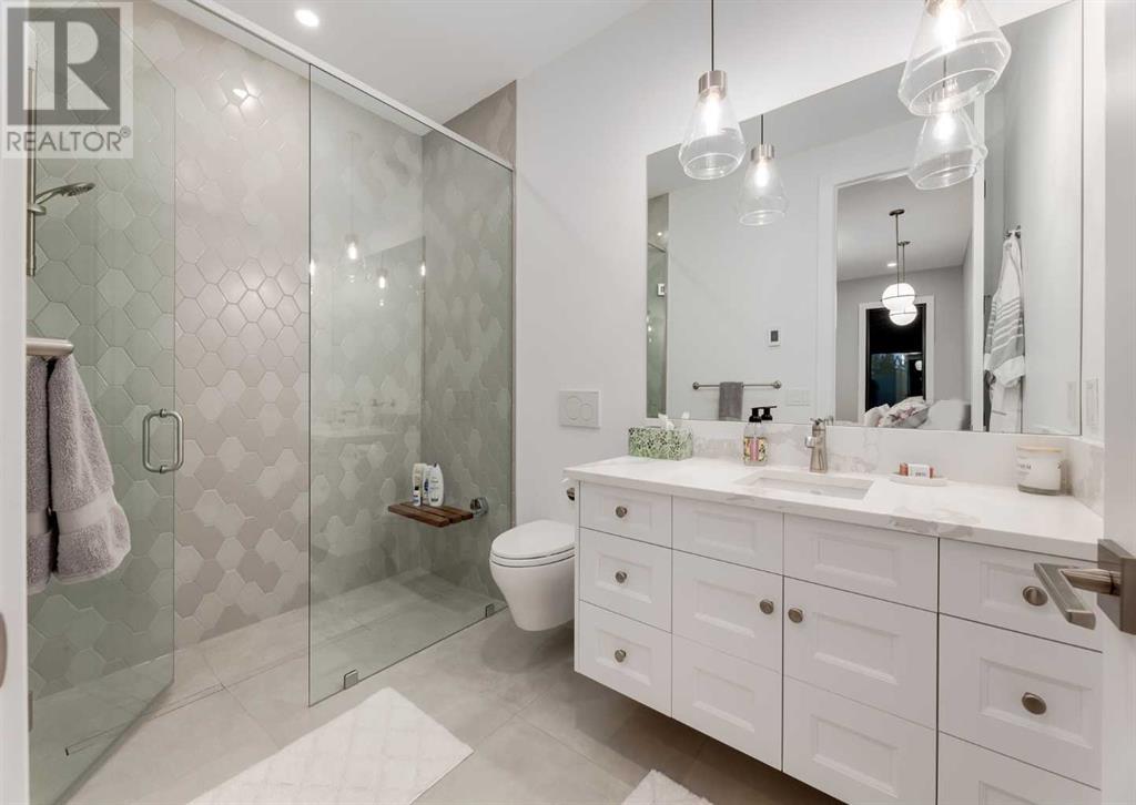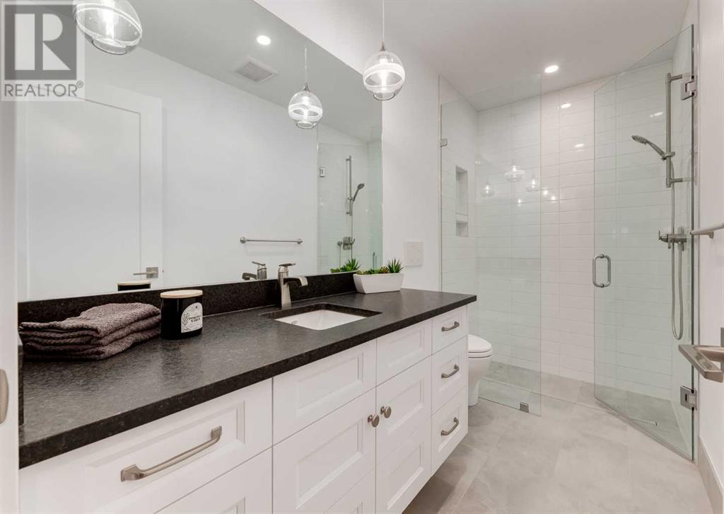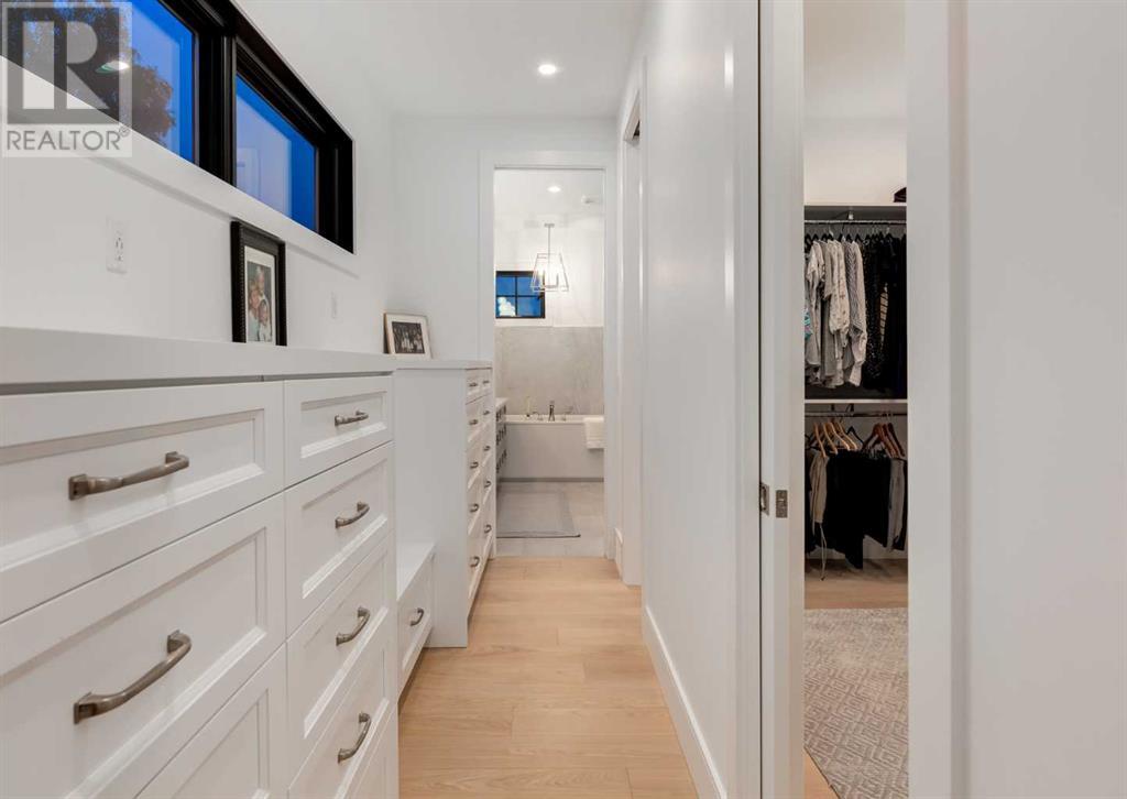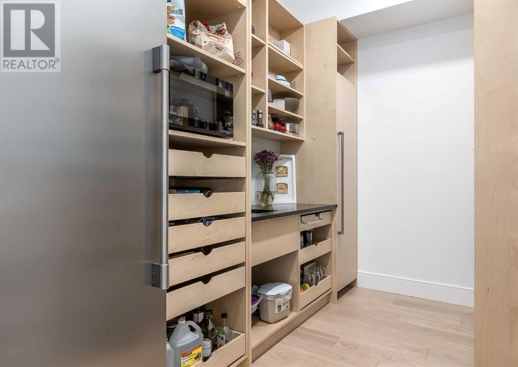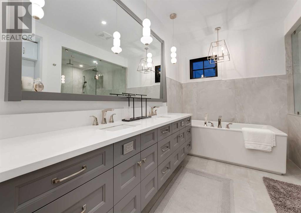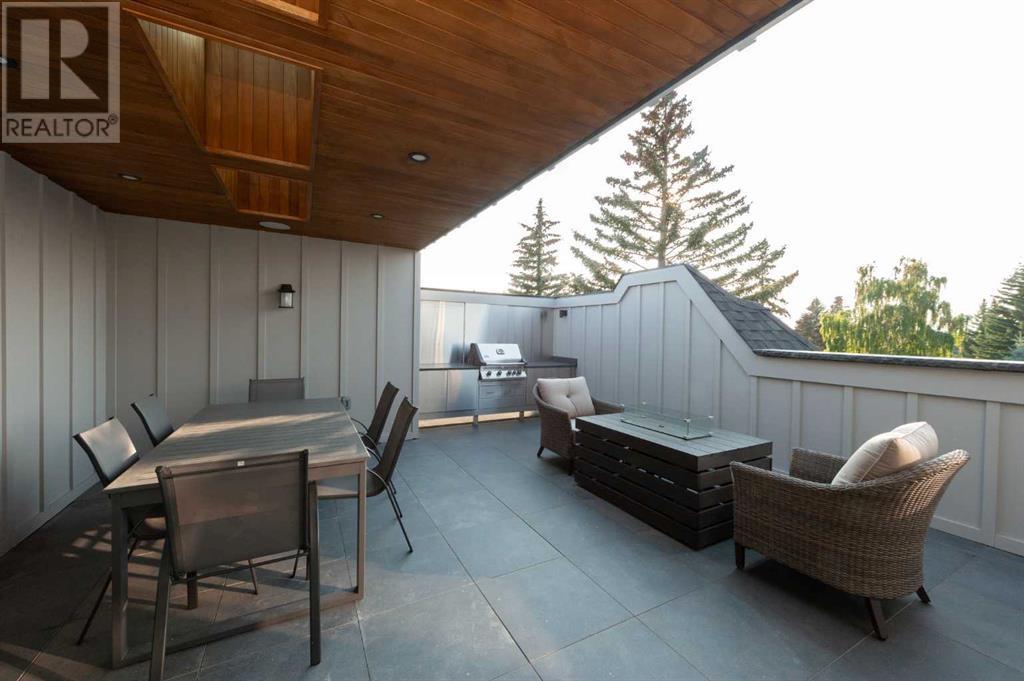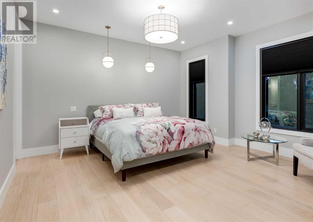 Welcome to this prestigious custom home of true craftsmanship in Britannia, located steps away from the renowned Calgary Golf & Country Club. This dream property offers luxurious living spaces and remarkable amenities. Prepare to be captivated by the ease of lifestyle and unparalleled living experience this property will provide. The grand foyer features two-story ceilings, an opulent chandelier, and ample hidden storage. The impressive staircase with wood detailing beckons exploration across four levels. Convenience is ensured by the spacious elevator connecting the 4-car garage to the fourth-floor entertainment space. This home boasts 5 bedrooms, all with ensuite bathrooms, totaling 10 bathrooms in this home for ultimate comfort and privacy. Spanning over 7,600 square feet, this custom build exudes refined ambiance. The main level showcases an open concept living room and kitchen with white oak flooring and custom cabinetry. A stunning fireplace and built-in cabinetry make the living room perfect for relaxation and gatherings. The gourmet kitchen is a literal chef's dream, equipped with both gas and induction ranges, 3 dishwashers, pot-filler faucet, double ovens, 2 refrigerators, a large island with seating, and a butler's pantry with a food prep area and deep freeze. The built-in Miele espresso/cappuccino machine ensures you can enjoy your own at-home cafe experience whenever you desire. Indulge in the pleasures of wine with the temperature-controlled, on-demand dispenser conveniently located in the living/kitchen area. Entertaining is effortless with a formal dining room that leads you to a secret living room with a fireplace - a cozy hideaway for after dinner relaxation. An informal dining area next to the kitchen offers additional seating options. Large sliding glass doors open to the outdoor living area, complete with a grilling kitchen and wood-burning fireplace. The backyard oasis includes a paved driveway, green space, and a custom hot tub area with showe r, bathroom, and laundry. The second level comprises four bedrooms with ensuites, a laundry room, and ample storage. Included here is the primary suite offering luxurious amenities such as a fireplace, wet bar, and spacious ensuite and closet. Going up to another floor is a space designed for ultimate entertainment - a family room, wet bar, patio, and outdoor kitchen with stunning views of Calgary's downtown skyline. The basement is a haven for fun and recreation as it boasts a full bar, wine cellar with an old-world feel, family room/media area with a fireplace, a built-in golf simulator/viewing bar. Additional features of this level include an oversized garage with parking for six vehicles and a workshop area, storage rooms, guest suite, and two bathrooms. Words can hardly capture the magnificence of this property. Call today to book a private viewing and experience the sheer luxury and elegance of this outstanding home in person. Don't miss this opportunity to make it your own. (id:22211)