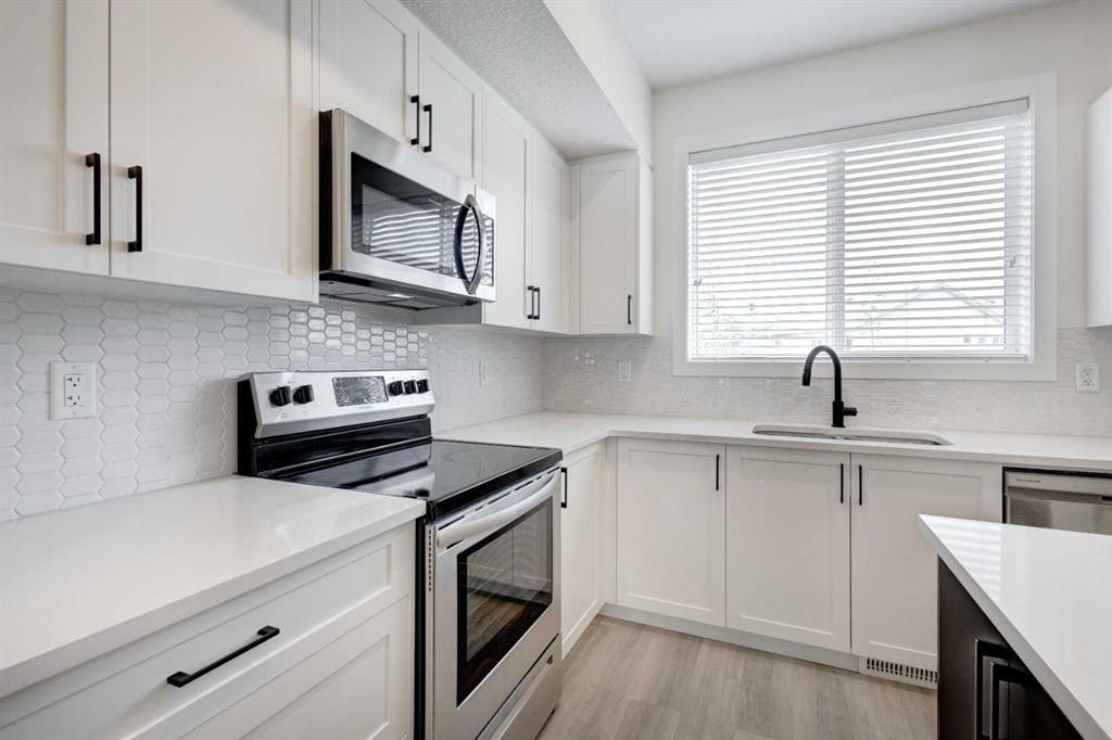 Welcome to Copperfield, where luxury and modern living blend seamlessly in this newly built Row Townhouse! This 1400 sq ft exquisite two-bedroom, two-bathroom townhome, constructed in 2022, offers a captivating living experience from the moment you step inside. As you enter the main you are immediately enveloped in an abundance of natural light that floods the entire space, courtesy of the East facing front and West back with large windows and thoughtfully designed layout. The brightness creates an inviting ambiance, making you feel right at home.No expense has been spared in the selection of luxurious finishes throughout this townhouse. High-quality materials and impeccable craftsmanship are evident in every corner, ensuring a sophisticated and elegant living environment. From gleaming Luxury Vinyl plank floors to sleek fixtures and fittings, every detail has been carefully curated to create a harmonious blend of style and functionality.The townhome offers a well-designed floor plan that maximizes the efficient use of space. The main level features an open-concept living area, seamlessly connecting the living room, dining area, and kitchen with access to you balcony with gas line . This open layout promotes a sense of togetherness, ideal for entertaining guests or spending quality time with loved ones. The kitchen boasts stainless steel appliances, ample storage space, pantry, quartz countertops and a stylish island that serves as a centerpiece for culinary adventures. Upstairs, you'll find two spacious bedrooms, each with its own en-suite bathroom and convenient laundry room. These tranquil retreats offer privacy and comfort, providing the perfect sanctuary to unwind and recharge. The primary bathroom is beautifully appointed, showcasing modern fixtures, dual vanities, and glass shower that creates a spa-like atmosphere with easy access to the the spacious walk in closet. One of the standout features of this home is the attached double garage, conveniently l ocated just off the entrance. As you enter through the garage, you're greeted with access to the back deck facing a green belt that showcases the home's design and layout, giving you a glimpse of what awaits within.Located in the desirable Copperfield neighborhood, this townhome offers convenience and access to a wealth of amenities; parks, shopping centers, recreational facilities, schools, providing endless opportunities for leisure and entertainment. Commuting is a breeze with easy access to major highways and public transportation options.This is a remarkable opportunity to own a newly built, two-bedroom, two-bathroom townhome in Copperfield. With its bright and welcoming atmosphere, attached double garage, and thoughtful design. Don't miss out on the chance to make this stunning property your own and experience the epitome of modern living. Book a private viewing and immerse yourself in the charm of this exceptional home. (id:22211)