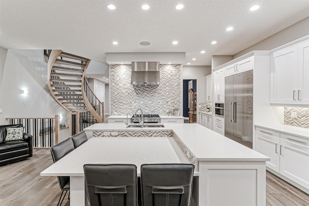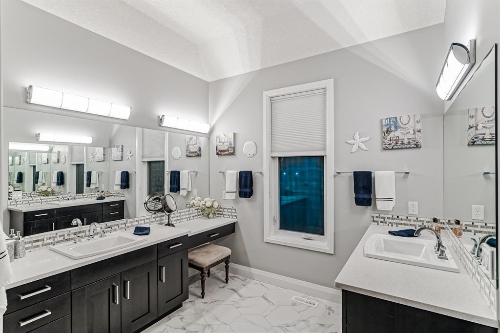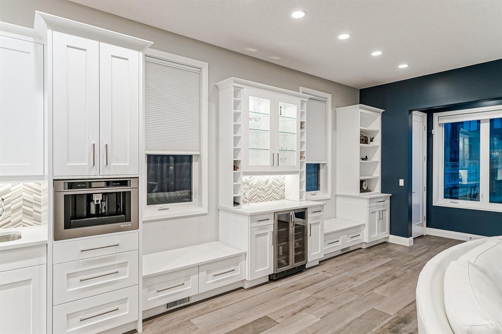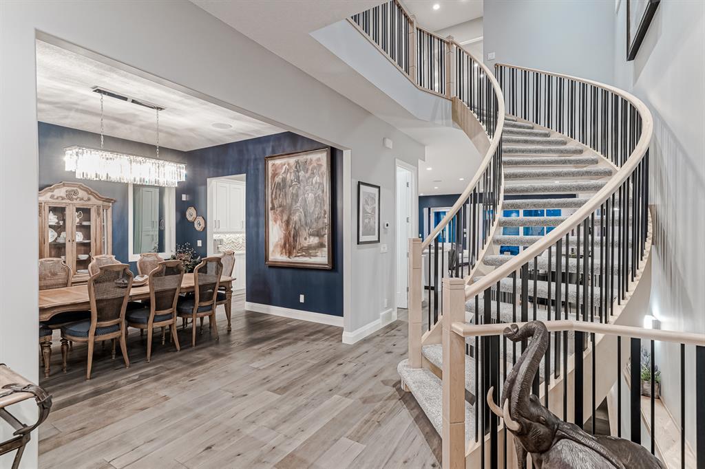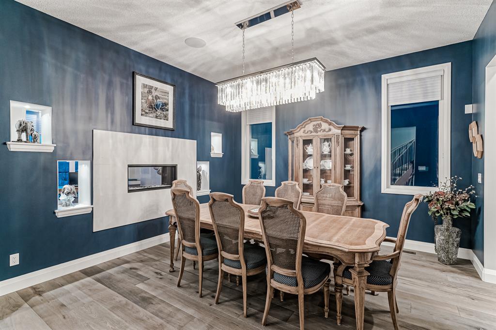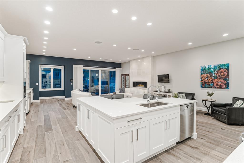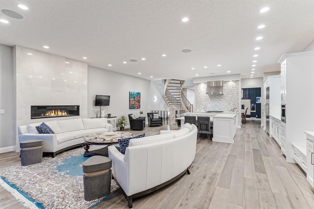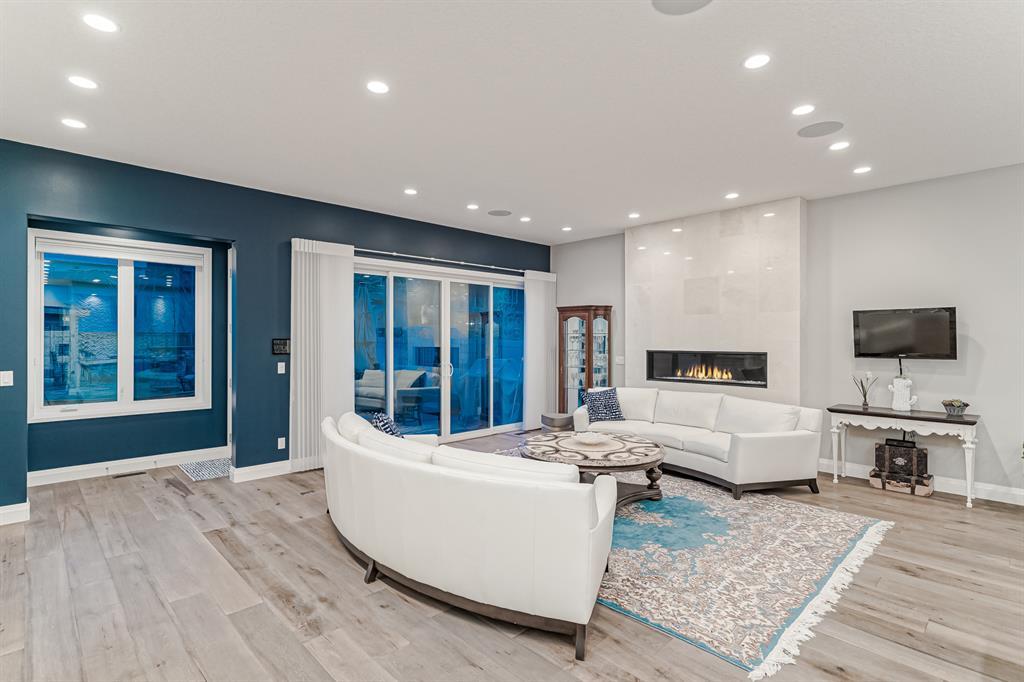 Welcome to this luxurious custom-built home, boasting an impressive list of upgrades and high-end finishes. These original owners have spared no expense in creating a stunning property that offers comfort, elegance, and style in abundance. As you step into the large welcoming foyer, you’ll be drawn to the breathtaking valley views visible through the expansive windows in the main floor office. The elegant formal dining room features a double-sided gas fireplace, providing a warm and inviting atmosphere for hosting family dinners and entertaining guests. The gourmet kitchen is a chef's dream, complete with a large island with plenty of seating, stone countertops, walk through butler's pantry, custom white cabinetry, a built-in coffee station, a large separate counter with prep sink, and a dry bar with custom built-ins and beverage fridge. The Miele appliance package includes a 6-burner gas range, built-in oven, dishwasher, and oversized refrigerator, ensuring that cooking and entertaining are a breeze. The main living area is centered around a stunning marble gas fireplace and offers a wonderful flow to the beautiful south-facing backyard with the large sliding doors. The outdoor living space features a large composite deck, a stunning water fountain, and a stone gas fireplace, perfect for summer barbecues and relaxing evenings under the stars. Heading upstairs led by the beautiful curved stairway, you'll find a generous bonus room and two large bedrooms, each with their own 4-piece ensuite, as well as a laundry room with a sink. The primary bedroom is a true retreat, complete with a dry bar and plenty of room for a seating area overlooking the gorgeous backyard. The 5 pc. ensuite features in-floor heating, dual vanities, a dressing table, a free-standing soaker tub, an oversized glass-enclosed shower, and a large walk-in closet with custom built-ins. The full-sized basement is fully finished with high 9’ ceilings, complete with in-floor heating, custom cabinetry wit h a wet bar and beverage fridge, a spacious family room, a 4th bedroom, stunning 3-pc. bath, and a fitness room with commercial-grade gym flooring. The double attached garage is conveniently located on this level with an entrance to a large mudroom. It features water taps and even a drain for washing your car. Other features of this stunning property include speakers throughout the inside and outside the home, 2 air conditioners, a yard irrigation system, a 10x10 storage shed, and many more! This is a truly exceptional home that offers luxurious living at its finest. (id:22211)