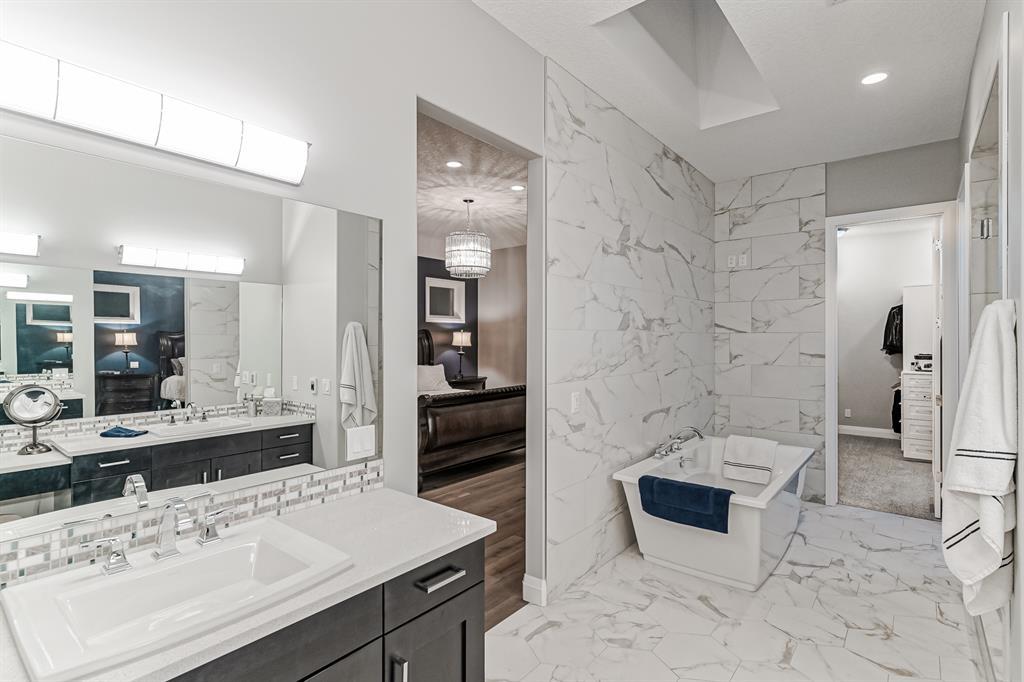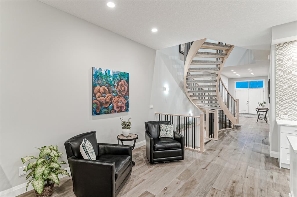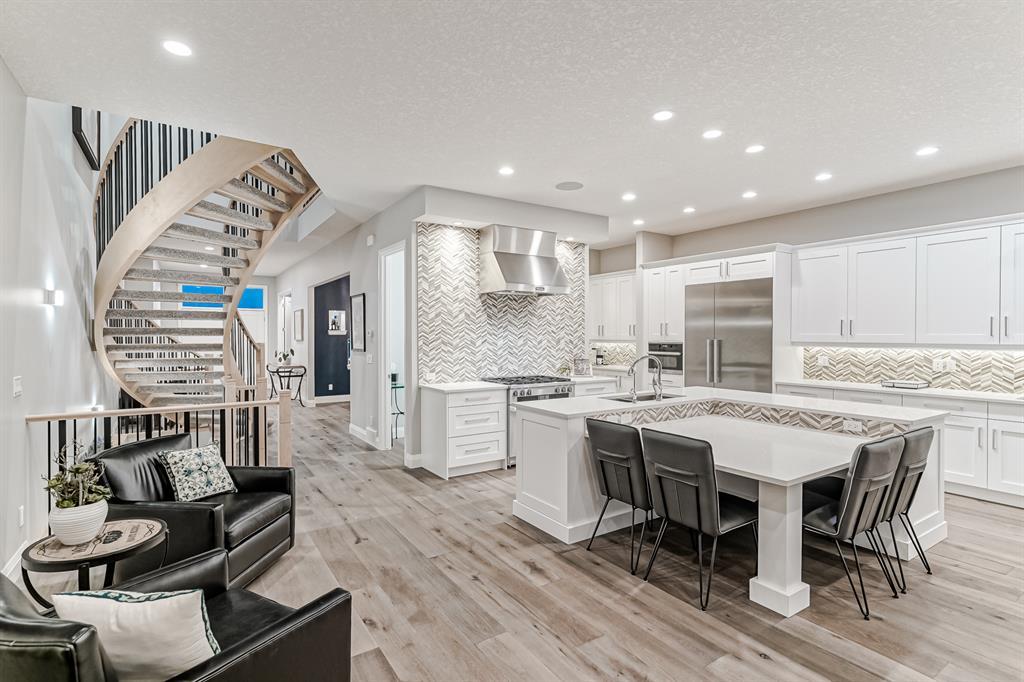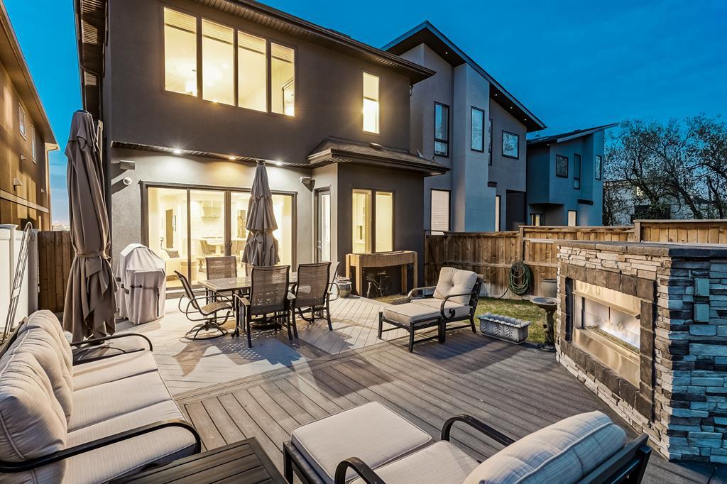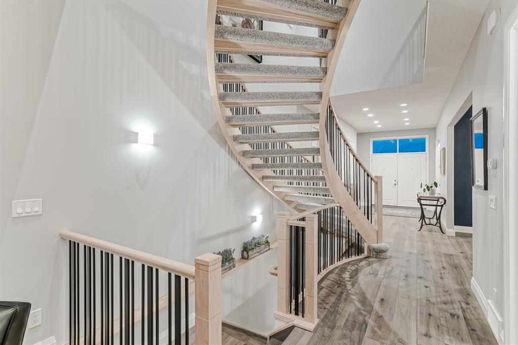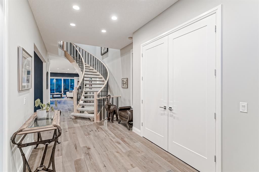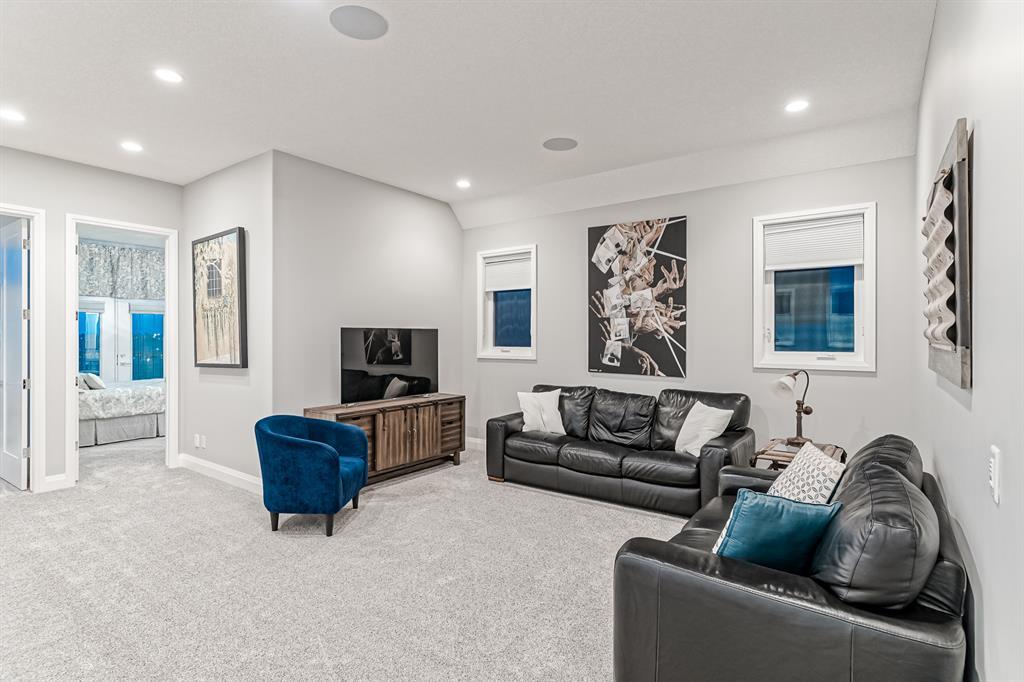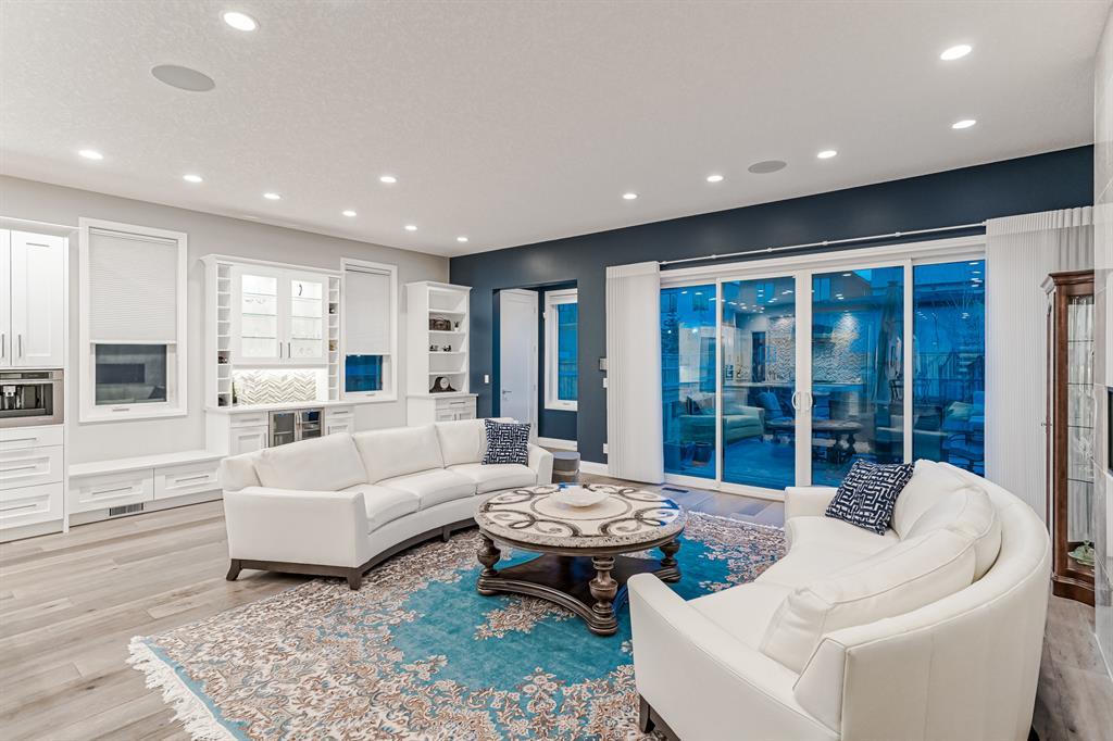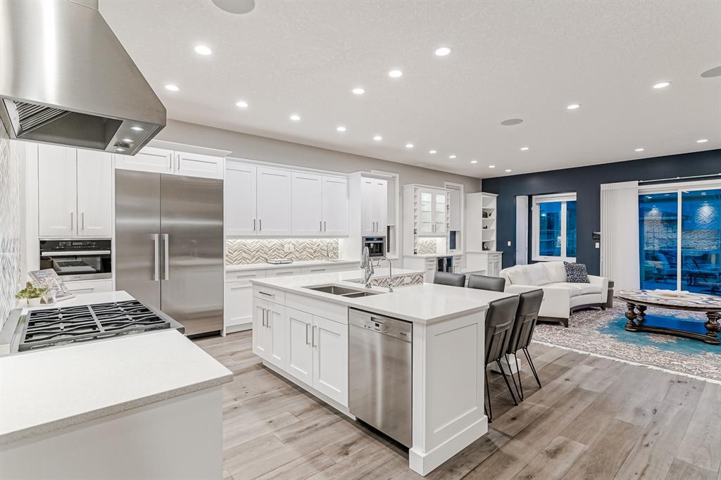Welcome to this luxurious custom-built home, boasting an impressive list of upgrades and high-end finishes. These original owners have spared no expense in creating a stunning property that offers comfort, elegance, and style in abundance. As you step into the large welcoming foyer, you’ll be drawn to the breathtaking valley views visible through the expansive windows in the main floor office. The elegant formal dining room features a double-sided gas fireplace, providing a warm and inviting atmosphere for hosting family dinners and entertaining guests. The gourmet kitchen is a chef's dream, complete with a large island with plenty of seating, stone countertops, walk through butler's pantry, custom white cabinetry, a built-in coffee station, a large separate counter with prep sink, and a dry bar with custom built-ins and beverage fridge. The Miele appliance package includes a 6-burner gas range, built-in oven, dishwasher, and oversized refrigerator, ensuring that cooking and entertaining are a breeze. The main living area is centered around a stunning marble gas fireplace and offers a wonderful flow to the beautiful south-facing backyard with the large sliding doors. The outdoor living space features a large composite deck, a stunning water fountain, and a stone gas fireplace, perfect for summer barbecues and relaxing evenings under the stars. Heading upstairs led by the beautiful curved stairway, you'll find a generous bonus room and two large bedrooms, each with their own 4-piece ensuite, as well as a laundry room with a sink. The primary bedroom is a true retreat, complete with a dry bar and plenty of room for a seating area overlooking the gorgeous backyard. The 5 pc. ensuite features in-floor heating, dual vanities, a dressing table, a free-standing soaker tub, an oversized glass-enclosed shower, and a large walk-in closet with custom built-ins. The full-sized basement is fully finished with high 9’ ceilings, complete with in-floor heating, custom cabinetry wit h a wet bar and beverage fridge, a spacious family room, a 4th bedroom, stunning 3-pc. bath, and a fitness room with commercial-grade gym flooring. The double attached garage is conveniently located on this level with an entrance to a large mudroom. It features water taps and even a drain for washing your car. Other features of this stunning property include speakers throughout the inside and outside the home, 2 air conditioners, a yard irrigation system, a 10x10 storage shed, and many more! This is a truly exceptional home that offers luxurious living at its finest. (id:22211)