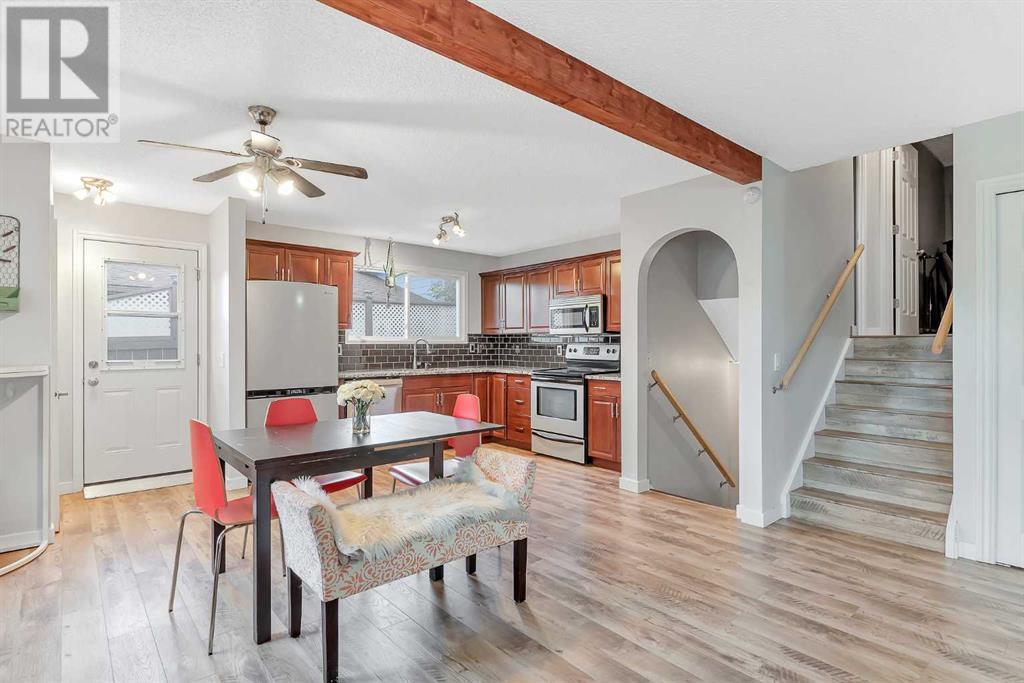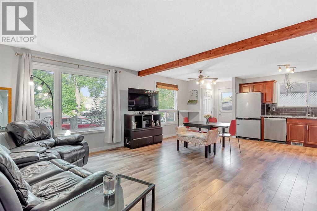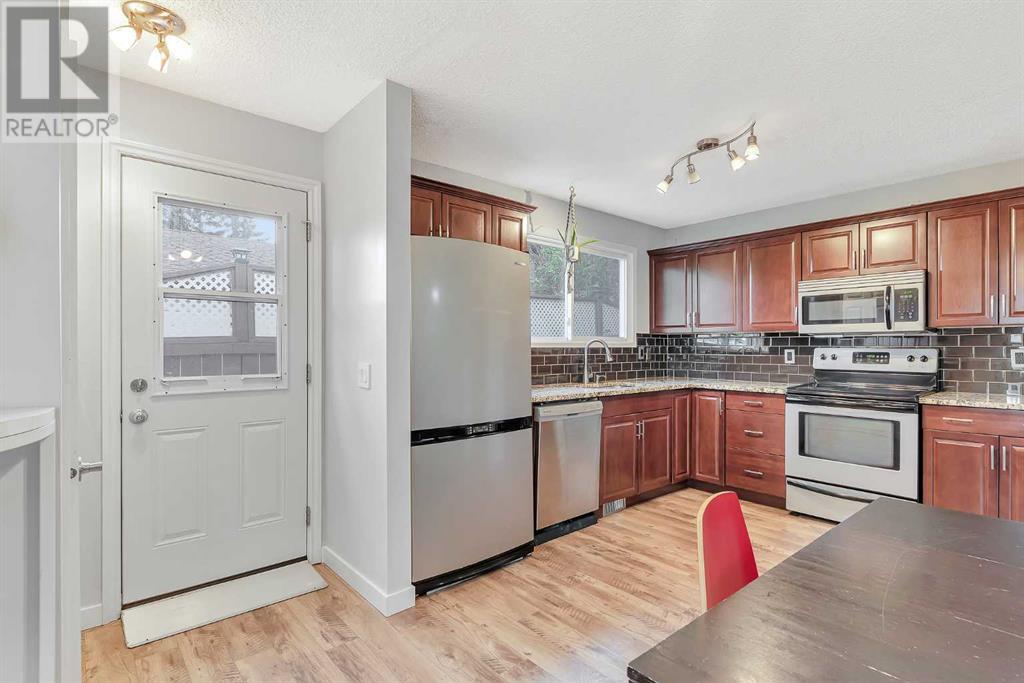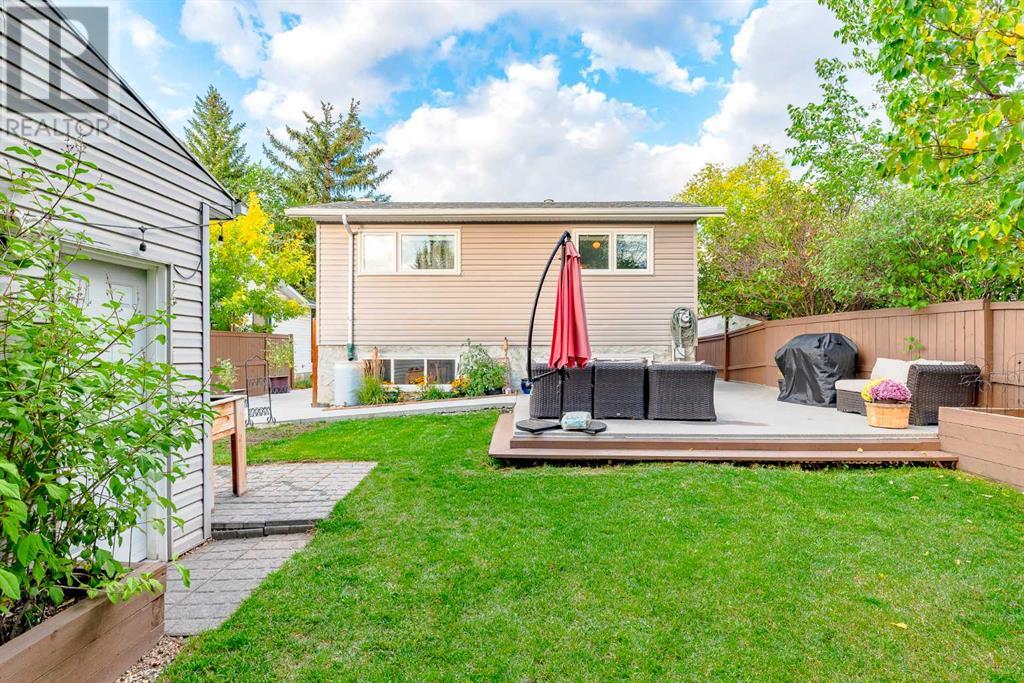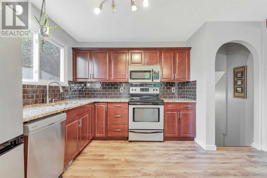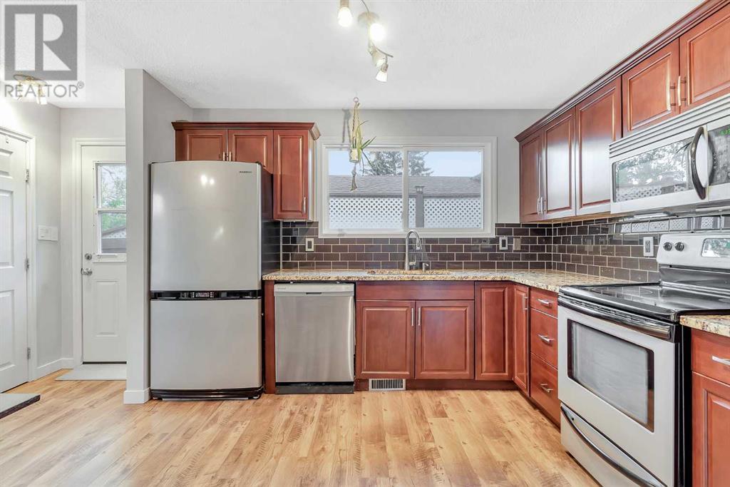 Amazing opportunity to own this fully developed 4-level split family home – lots of living space. A total of 3 bedrooms, 2 full bathrooms and over-sized single garage in this well-maintained & air-conditioned home with lots of upgrades and a massive backyard with mature trees and a garden. Move-in ready. The main level is open and spacious with newer flooring and big windows, allowing for lots of natural light to flood in. It features a big living room, a dining room and renovated kitchen with SS appliances and granite countertops, subway tile backsplash. A back door off the dining area giving access to your own private deck and backyard oasis. The huge yard faces southwest with lots of sunshine and features a large deck and a fire pit. Perfect for entertaining or relaxing. The new concrete driveway can easily accommodate 4 cars or an RV or trailer. The upper floor has primary and second bedrooms. There is a 4-piece bathroom with deep soaker tub, granite countertop, marble tile flooring and tub surround. The 3rd level has a third bedroom and an office – great for work from home. The basement has a large playroom with a kitchenette and 4 pc bathroom. The laundry room includes a new Samsung washer and dryer set and lots of storage. The oversized garage (16X21) is heated, insulated, drywalled and comes with 220v power. Recent upgrades include shingles and siding (2021), all the windows have been replaced (triple pane windows in the lower 2 levels), new deck. Just steps to Fish Creek Park with miles of scenic pathways, ideal for walkers or bikers. A mature neighbourhood with shopping and schools nearby. This is a MUST SEE. Call to book your private viewing today! (id:22211)