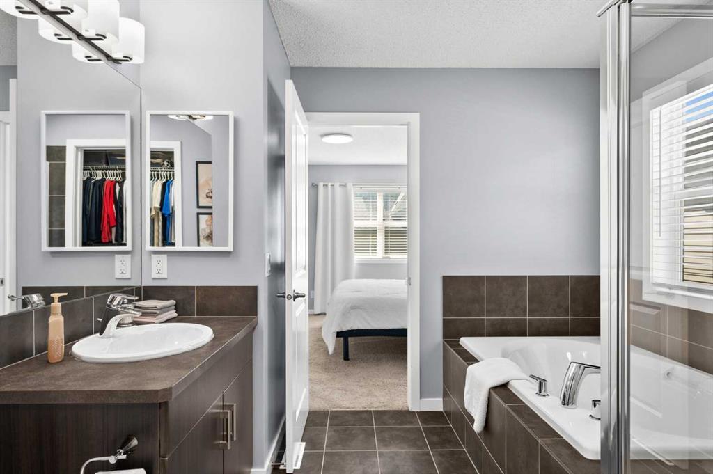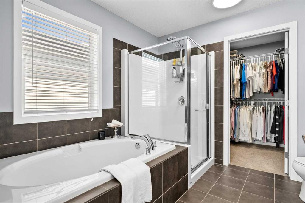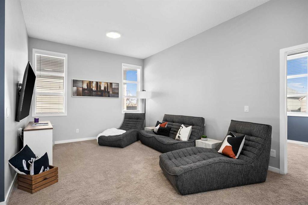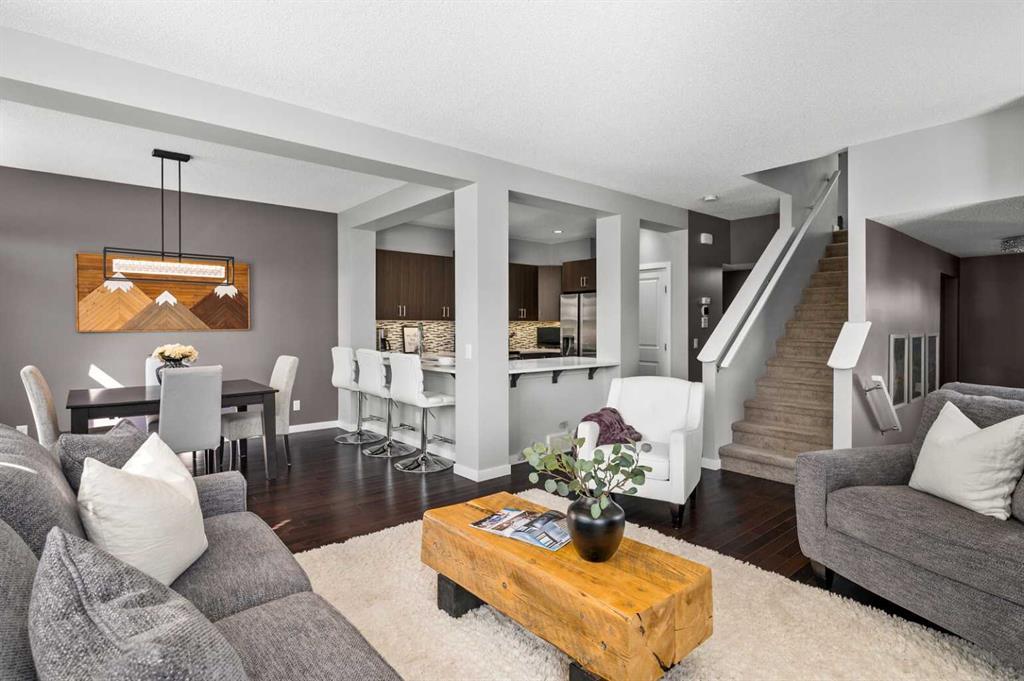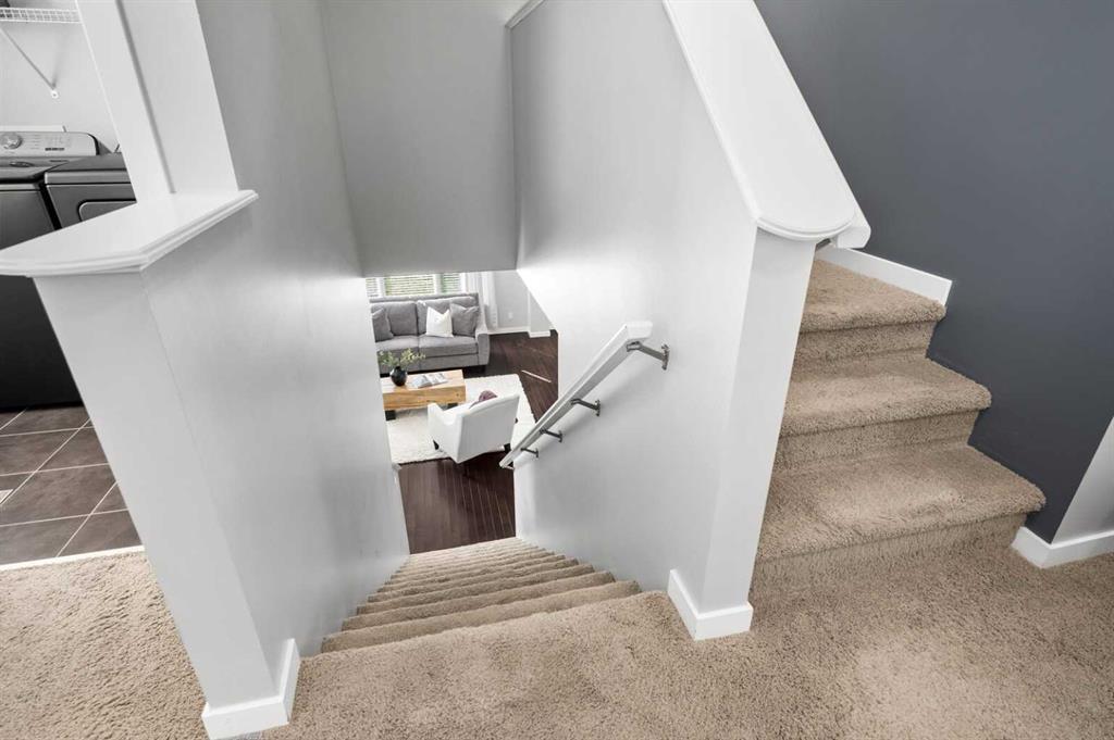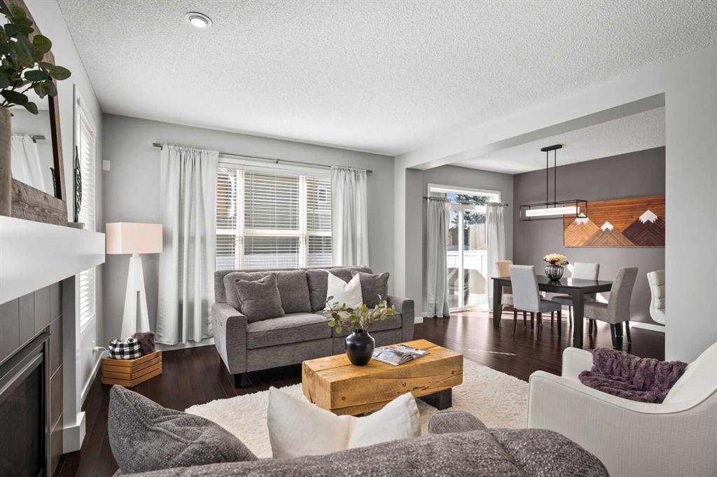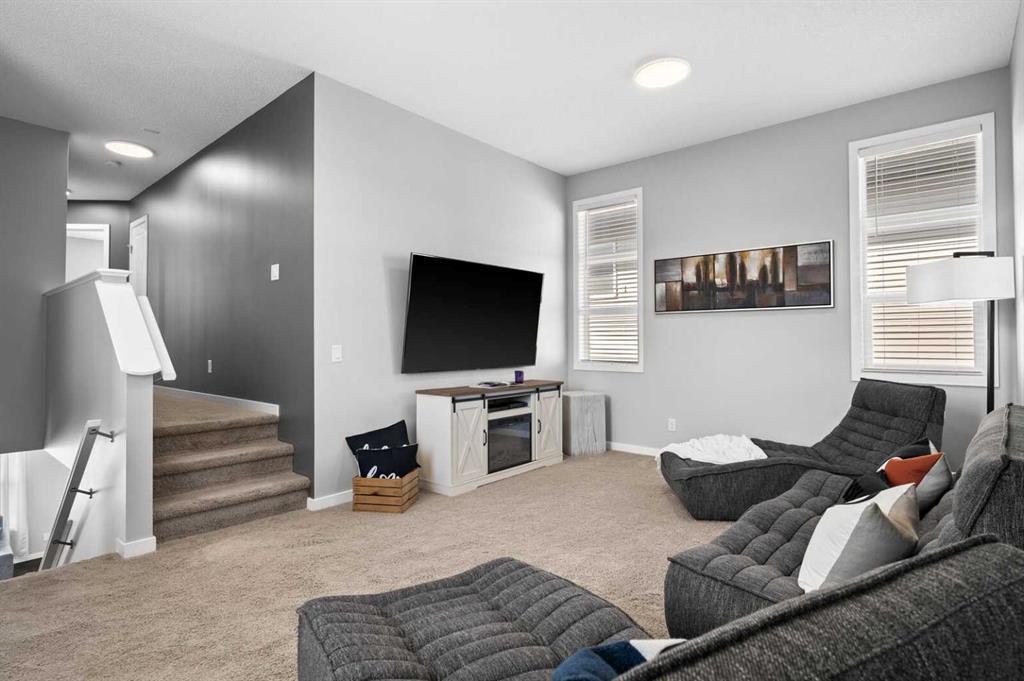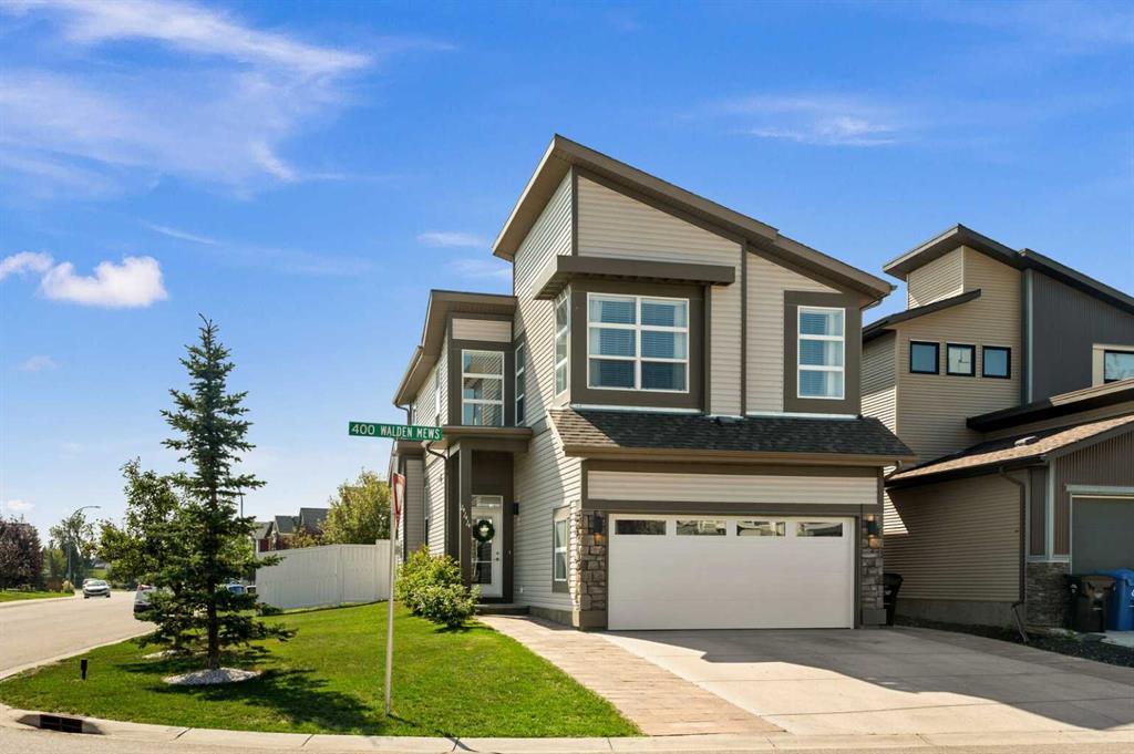 > Introducing a stunning new listing in the coveted Walden neighbourhood. This impeccably maintained home offers over 1900 sq ft of developed living space, 3 bedrooms and 2.5 bathrooms, providing ample space for comfortable living. Situated on a spacious corner lot, the residence boasts an abundance of windows that flood the interior with natural light, enhancing the welcoming atmosphere. Enjoy the feeling of openness with 9 ft ceilings and the elegance of hardwood floors on the main level. Entertain or watch the kids play made easy as you enter the large south-west facing yard through sliding glass doors off of the dining area that can accommodate 6-8 guests. Stay cool during warmer months with air conditioning, and cozy up to the gas fireplace in the living room during colder seasons. The kitchen features quartz counters, complemented by new appliances. Head to the upper level and find a generously sized bonus room with 12 ft ceilings, allowing for versatile use. Convenience is at its peak with an upstairs laundry room featuring top-of-the-line washer and dryer. The upper level is also home to two secondary bedrooms, one located next to the primary and the other unique bedroom with 12 ft ceilings is off of the bonus room. The primary bedroom can comfortably hold a king size bed, dresser and nightstands which leads into the 4 piece ensuite and large walk-in closet. The heated double garage, brand new siding and widened driveway are also valuable practical additions. Embrace the outdoors with easy access to amenities, parks, and pathways—all within walking distance. Don't miss the opportunity to make this exceptional property your new home! (id:22211)