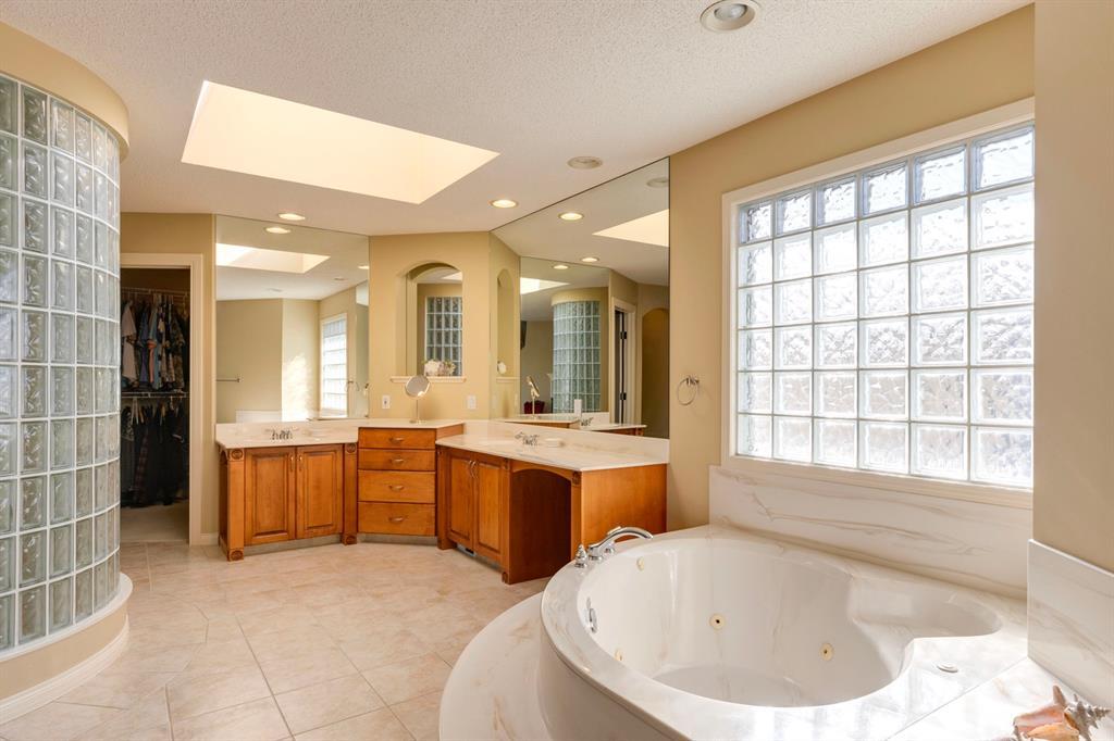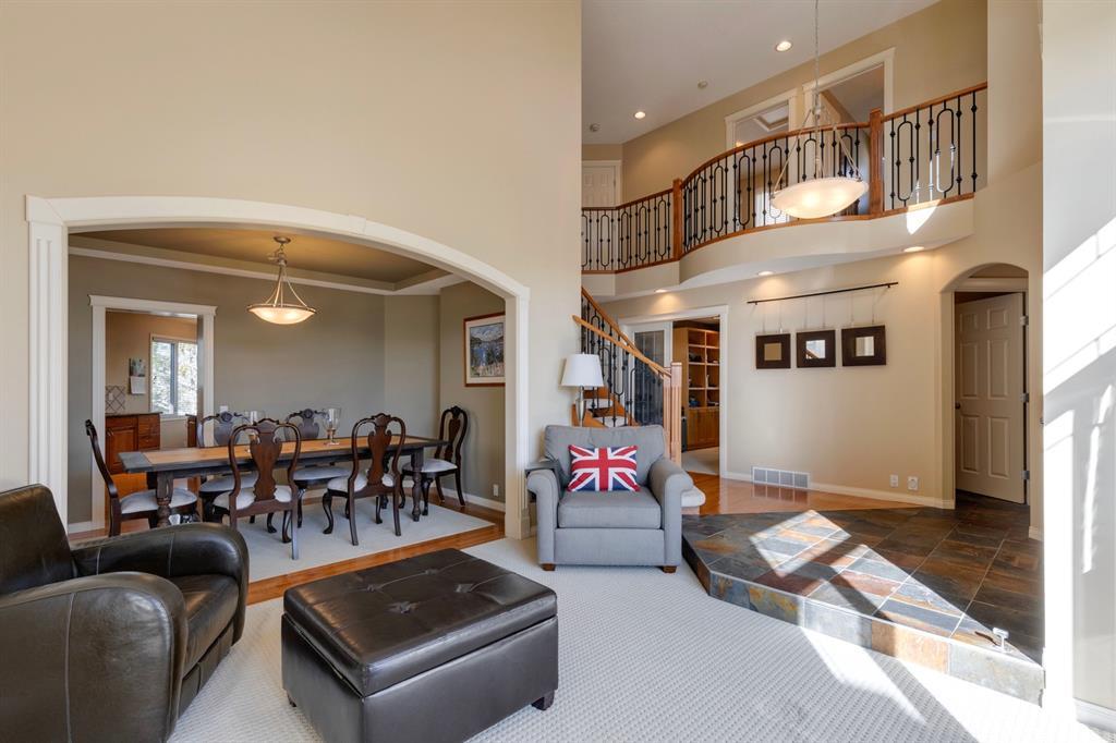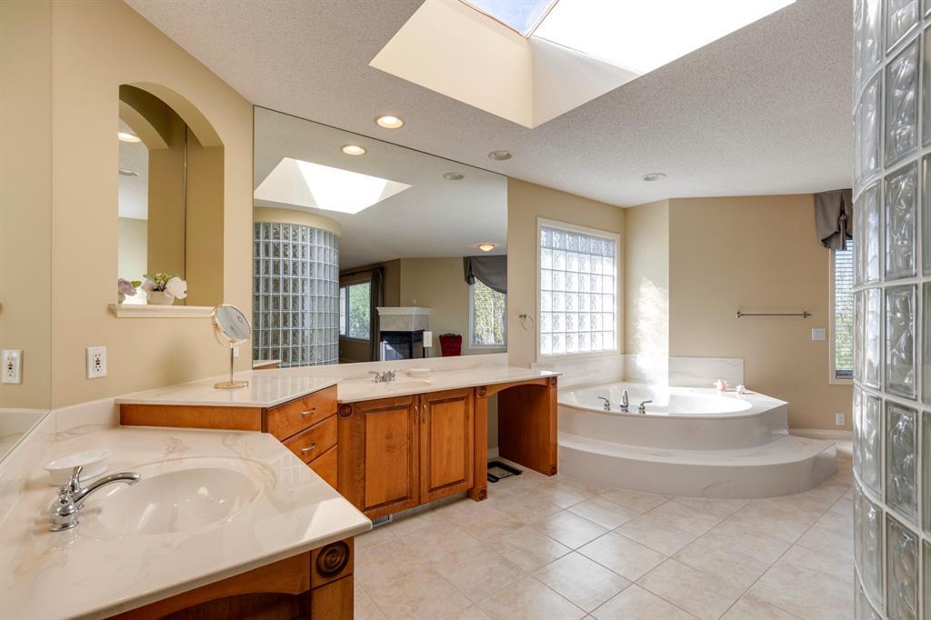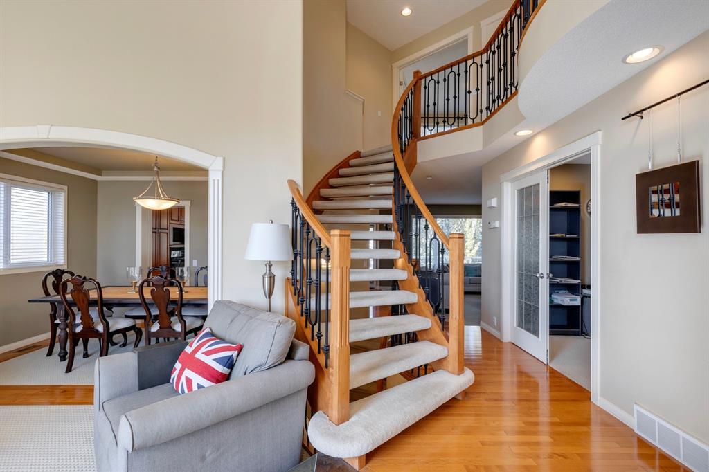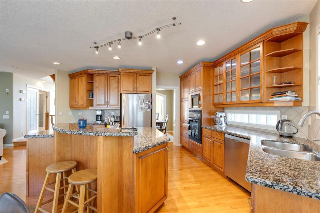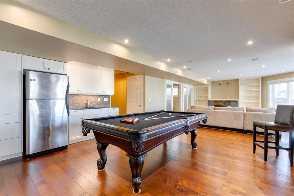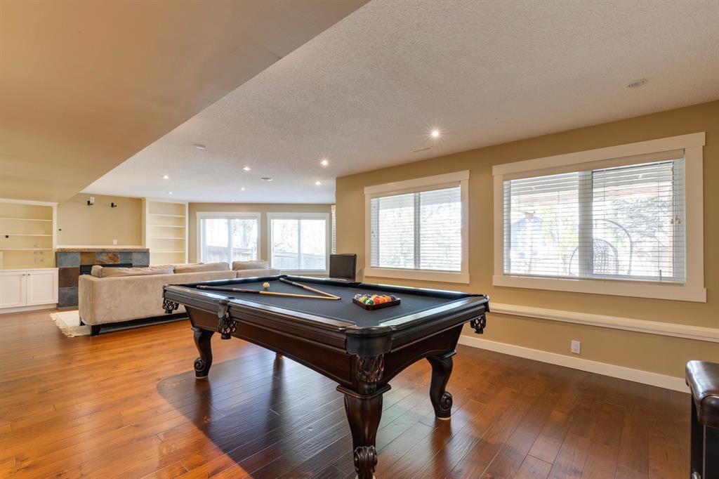 This large executive walkout basement home is located on a quiet cul-de -sac walking distance to parks and schools!! When you first enter the home you are greeted by the feature curved staircase with metal spindles and 20' soaring ceilings. The living room offers huge windows and is a great size for entertaining. The formal dining room can accommodate a large table and offers featured hardwood inlay and detailed ceilings. There is a large family room at the rear of the house with a gas fireplace, built in cabinets, infloor electrical plugs for floor lamps and a buildout so large flat screen TV's can work. The huge kitchen offers granite countertops, breakfast bar, bill paying desk, eating area and a chefs dream island. The main level also offers a den with frosted glass doors and is well located for clients to enter from the front door. The basement has a huge rec room with gas fireplace and built in cabinets, pool table area (table stays), wet bar/snack station and a separate gym with a TV that stays. There is also a good size bedroom with a walk in closet and a 3pc bathroom with heated floors and oversized shower. Primary bedroom is huge and has a great walk in closet and a retreat area. The 6pc ensuite has 2 shower heads in the oversized shower, two sinks, make up area and the toilet is out of sight. Second bedroom has a built in desk area. Third bedroom has a bench seat with storage underneath. There is a large upper deck off the kitchen and a lower patio. The patio has had a recent $30,000 renovation that included a pergola and exposed aggregate patio extensions and gas line hookups. There is professional landscaping in the front including raised flower beds, underground sprinklers and exposed aggregate walkway along the east side. (id:22211)