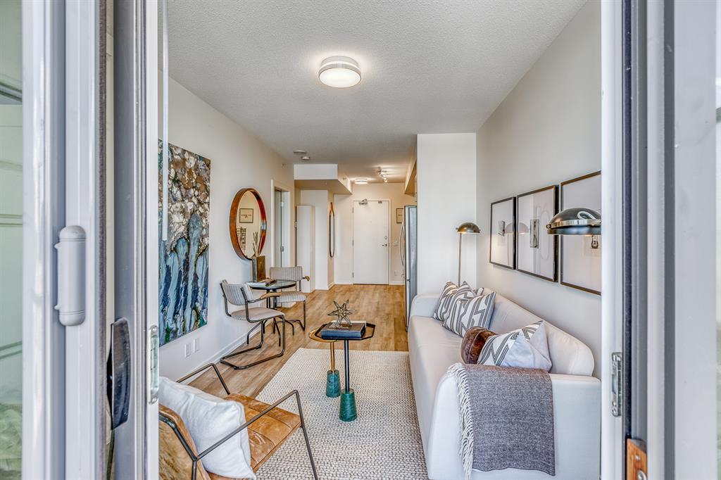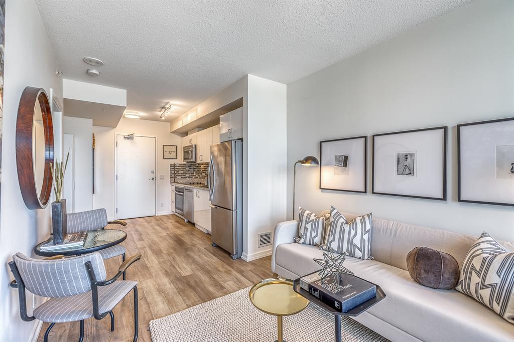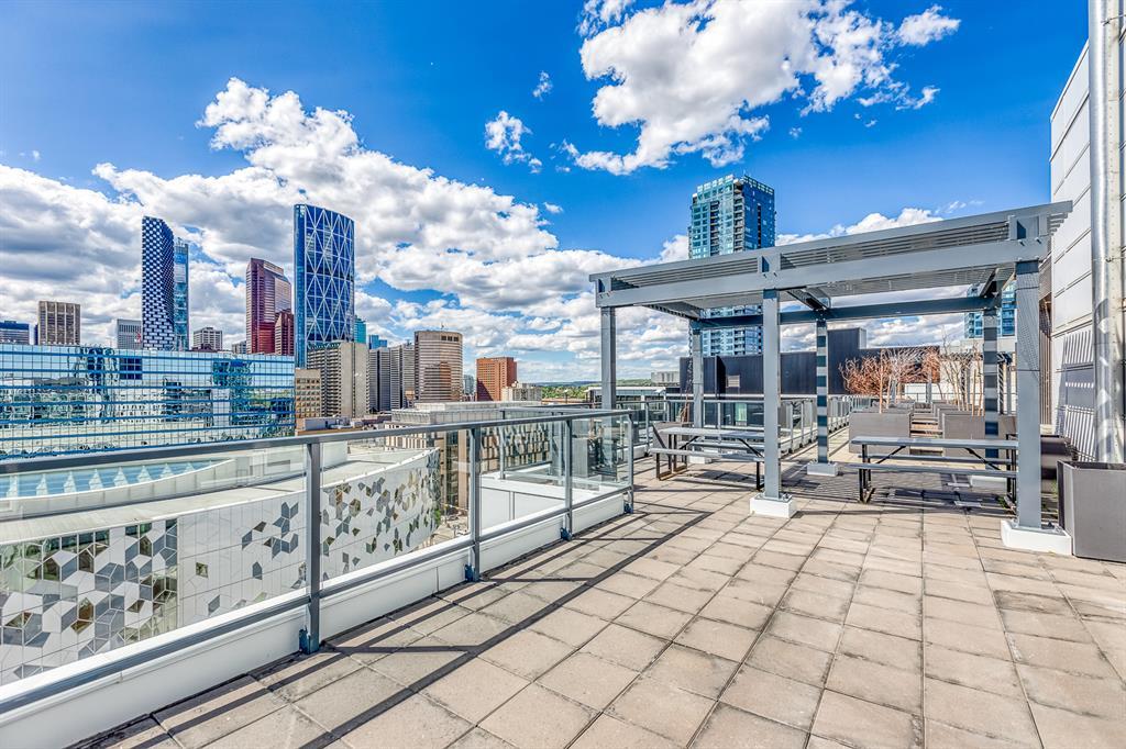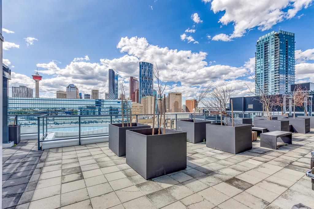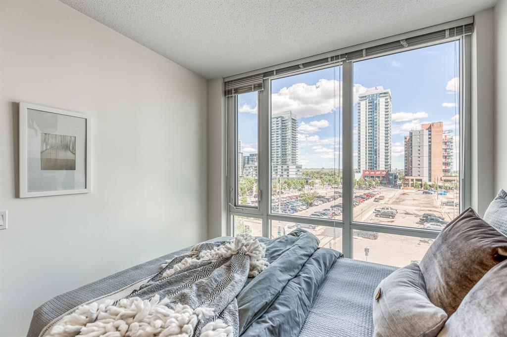 Welcome to N3 in the East Village, Calgary's most vibrant and sought-after urban village. Prepare to be captivated by this efficient and modern 2-bedroom, 1-bathroom home offering a spacious, bright, and tastefully designed living space spanning close to 500 square fee. Step inside and be greeted by a contemporary atmosphere enhanced by stainless steel appliances, blackout blinds, ample counter space, and thoughtful storage solutions. This home boasts an abundance of natural light, creating an inviting and comfortable ambiance.The N3 building is conveniently located a mere 273 steps away from the City Hall LRT station, making commuting a breeze. With a car-free development approach, the community encourages an active and social lifestyle.Indulge in the 2-story fitness center, equipped with cardio machines and free weights, to maintain your wellness routine. Cycling enthusiasts will appreciate the dedicated underground bike storage that comes complete with bike cleaning and repair facilities.Entertain guests or mingle with neighbors on the rooftop patio, which offers intimate seating, gas fireplaces, communal barbecues, and an unforgettable panoramic city view.Fronting onto the vibrant 8th Avenue, you'll have easy access to the urban basketball court BOUNCE for some friendly competition. Explore locally-made goods or unwind at LUKE's Cafe, conveniently located at the Central Library.Rest easy knowing that overnight security, secure entrances, and a dedicated storage locker are provided for your peace of mind.Nestled in the heart of the East Village, this master-planned, mixed-use redevelopment focuses on public realm, culture, and amenities. Wide urban boulevards lead you to C-Square and 5th Street Square, where you can enjoy St. Patrick's Island, Riverwalk, Fort Calgary, an off-leash dog park, a community garden, a children's playground, and even an apple orchard.Satisfy your cultural cravings with easy access to the Saddledome, BMO Centre, Studio Bell, Central Library, Fort Calgary, Raw Canvas, and Loft 112.Discover the full range of amenities and services in the neighborhood, including dental care, makeup studios, personal grooming, shopping, retail outlets, and a variety of dining options. Indulge in East Village Dental, Merle Norman Cosmetics, East Village Barbers, Liz & Lottie, Charbar, and many more.If you're looking to expand your horizons, venture further and explore the nearby neighborhoods of Inglewood, Bridgeland, Victoria Park, and Beltline.Pet owners will be delighted to know that 1 dog or 1 cat, weighing a maximum of 20 lbs, is welcome. The minimum short-term stay is 30 days, allowing flexibility to suit your needs. Don't miss out on this incredible opportunity to be part of the thriving East Village community. Experience urban living at its finest in the N3 condo. Contact us now to make this exceptional property your new home! (id:22211)