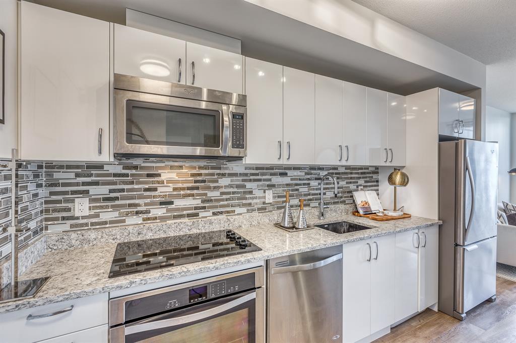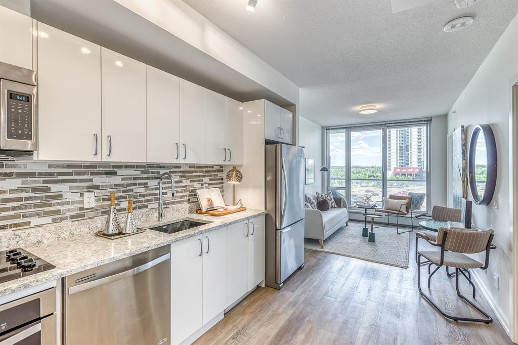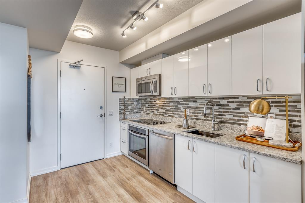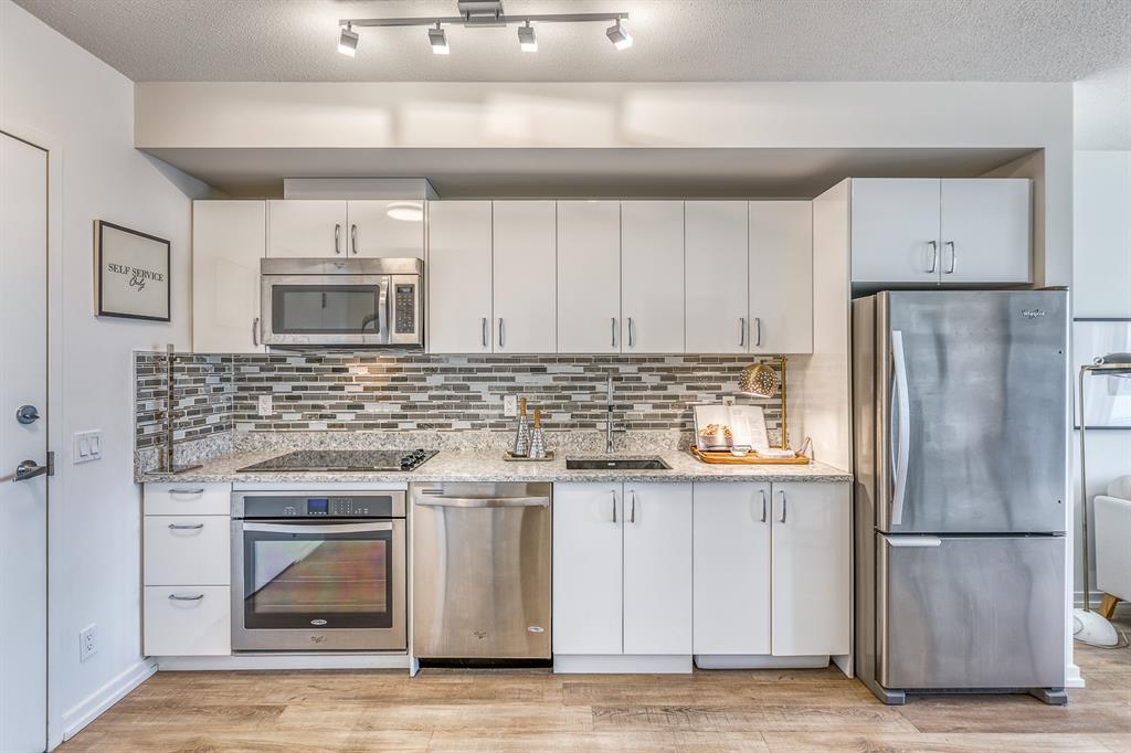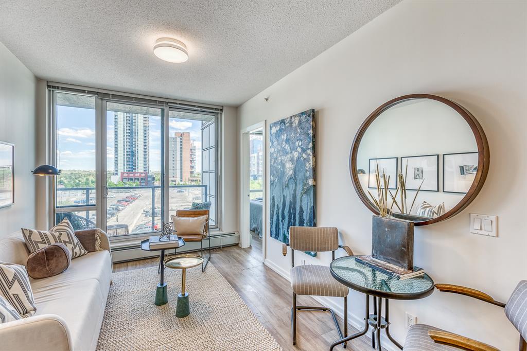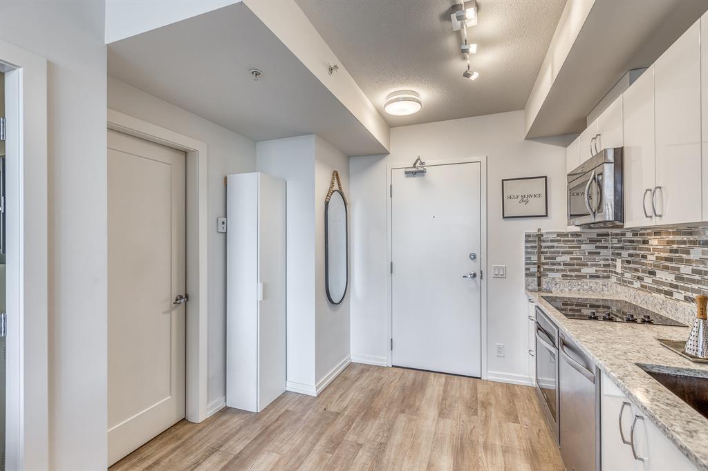 Welcome to N3 in the East Village, Calgary's most vibrant and sought-after urban village. Prepare to be captivated by this efficient and modern 2-bedroom, 1-bathroom home offering a spacious, bright, and tastefully designed living space spanning close to 500 square fee. Step inside and be greeted by a contemporary atmosphere enhanced by stainless steel appliances, blackout blinds, ample counter space, and thoughtful storage solutions. This home boasts an abundance of natural light, creating an inviting and comfortable ambiance.The N3 building is conveniently located a mere 273 steps away from the City Hall LRT station, making commuting a breeze. With a car-free development approach, the community encourages an active and social lifestyle.Indulge in the 2-story fitness center, equipped with cardio machines and free weights, to maintain your wellness routine. Cycling enthusiasts will appreciate the dedicated underground bike storage that comes complete with bike cleaning and repair facilities.Entertain guests or mingle with neighbors on the rooftop patio, which offers intimate seating, gas fireplaces, communal barbecues, and an unforgettable panoramic city view.Fronting onto the vibrant 8th Avenue, you'll have easy access to the urban basketball court BOUNCE for some friendly competition. Explore locally-made goods or unwind at LUKE's Cafe, conveniently located at the Central Library.Rest easy knowing that overnight security, secure entrances, and a dedicated storage locker are provided for your peace of mind.Nestled in the heart of the East Village, this master-planned, mixed-use redevelopment focuses on public realm, culture, and amenities. Wide urban boulevards lead you to C-Square and 5th Street Square, where you can enjoy St. Patrick's Island, Riverwalk, Fort Calgary, an off-leash dog park, a community garden, a children's playground, and even an apple orchard.Satisfy your cultural cravings with easy access to the Saddledome, BMO Centre, Studio Bell, Central Library, Fort Calgary, Raw Canvas, and Loft 112.Discover the full range of amenities and services in the neighborhood, including dental care, makeup studios, personal grooming, shopping, retail outlets, and a variety of dining options. Indulge in East Village Dental, Merle Norman Cosmetics, East Village Barbers, Liz & Lottie, Charbar, and many more.If you're looking to expand your horizons, venture further and explore the nearby neighborhoods of Inglewood, Bridgeland, Victoria Park, and Beltline.Pet owners will be delighted to know that 1 dog or 1 cat, weighing a maximum of 20 lbs, is welcome. The minimum short-term stay is 30 days, allowing flexibility to suit your needs. Don't miss out on this incredible opportunity to be part of the thriving East Village community. Experience urban living at its finest in the N3 condo. Contact us now to make this exceptional property your new home! (id:22211)