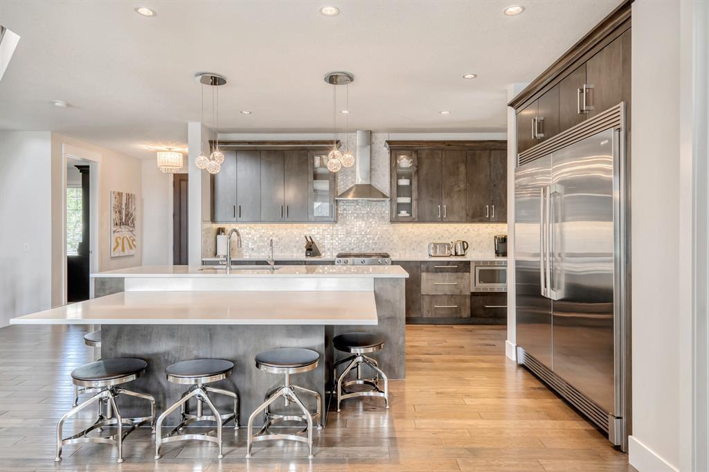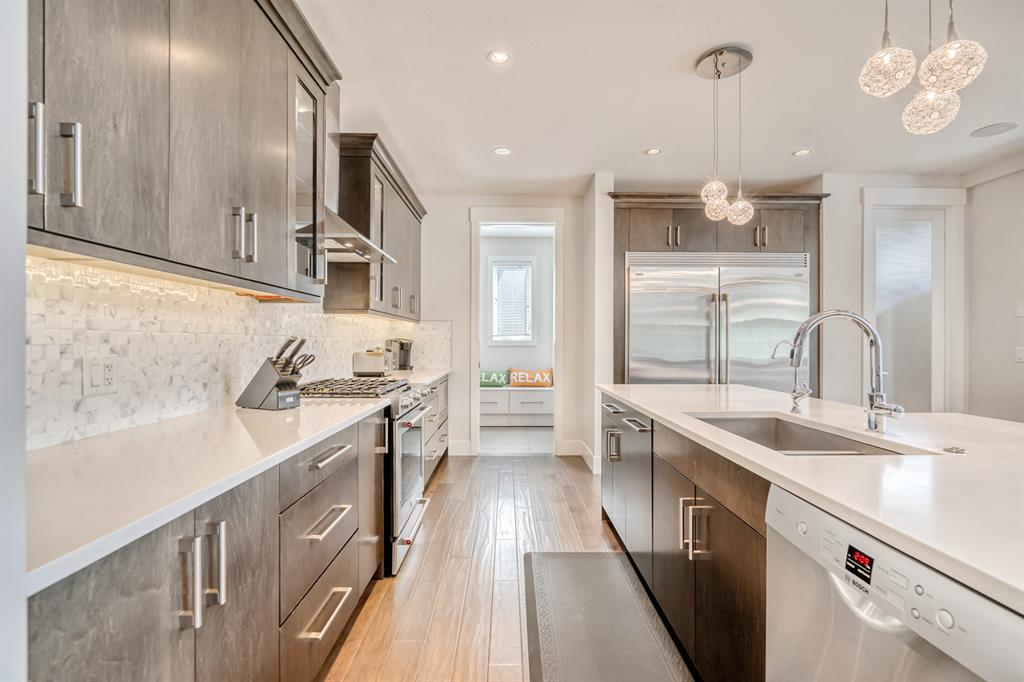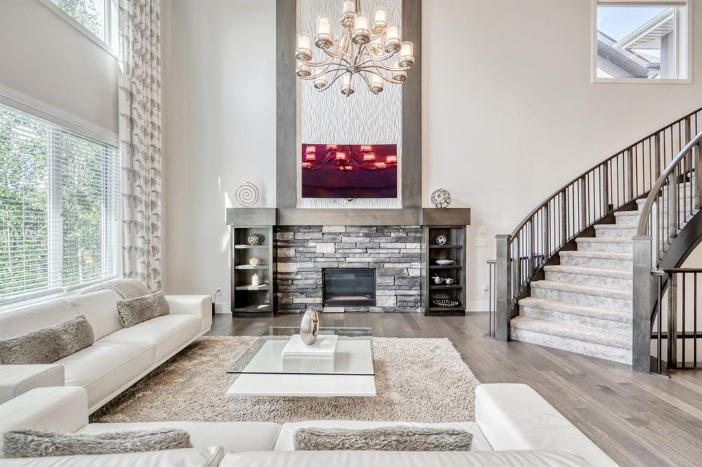 Welcome to this warm and inviting home located in the ideal community of Aspen Woods Estates just steps from Aspen Landing and many of Calgary’s best schools including, Webber Academy, Rundle College, Calgary Academy and Calgary French and International School. This south facing walk-out home backs onto a green belt and boasts three fully developed and spacious levels. Main floor includes large den with custom built-ins, mudroom and pantry, with a beautiful kitchen and bright dining area centrally located creating an open concept layout where the grand spiral staircase and impressive open to above great room with custom 18’ tall built-in are showcased. Great room also includes large south facing windows allowing an abundance of natural light into the home. Upper floor includes large primary suite with impressive ensuite and walk-in closet. Three additional bedrooms all with walk-in closets, main bathroom and bonus room complete the perfect upper floor for a growing family. Fully developed basement includes rec area, custom built-in storage, theatre room, bedroom and full bathroom. The south facing rear yard is a perfect getaway with mature landscaping, ample sun and access to the community pathway. This home has been well maintained as well as fenced and fully landscaped. This is a beautiful space, do not miss your chance to check it out! (id:22211)