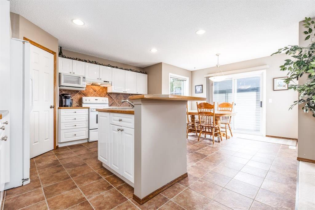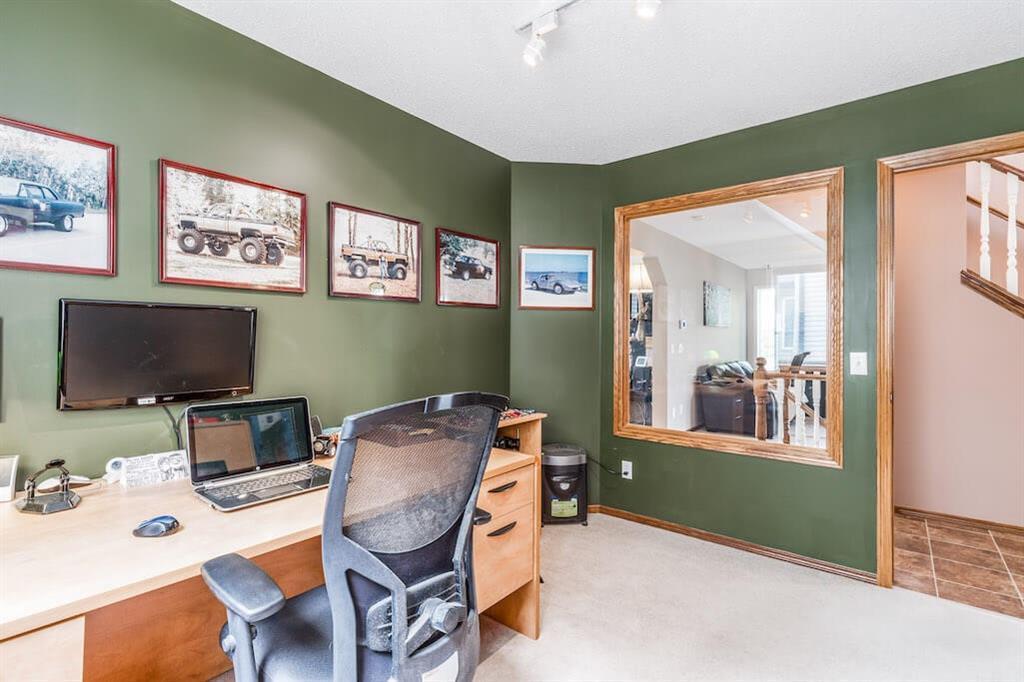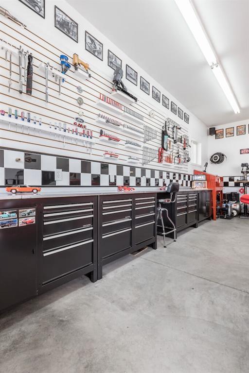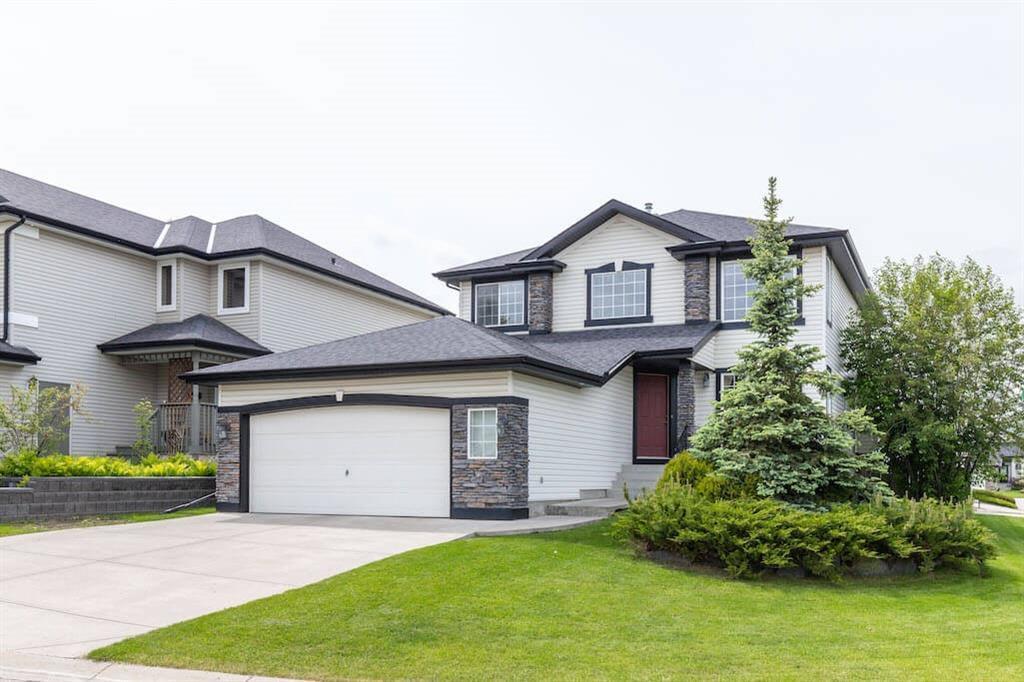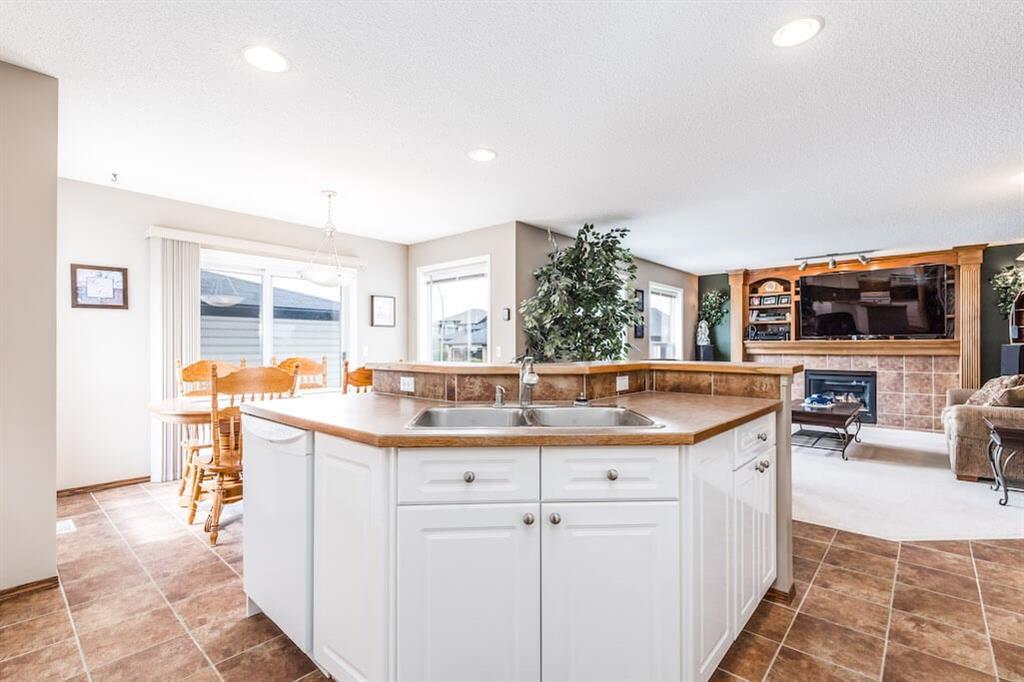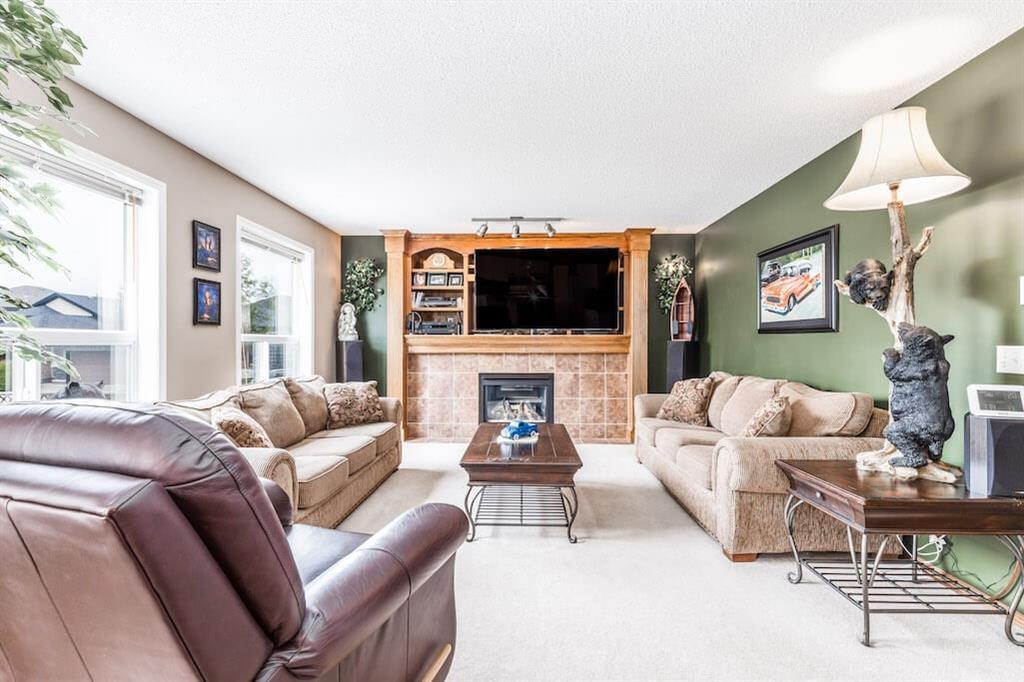 Car enthusiast dream home with a 24x24 attached double garage PLUS a 24x24 detached garage/shop with concrete pad with road access from this corner lot. The shop has built-in air lines, 220v for welding, power outlets every 4, infrared heating, 9 door, and is wired for a car hoist & media system. As you step inside the two-storey foyer you are met with an open living and dining room and are greeted with morning east facing sun. Moving inside to a family room with shelving unit, gas fireplace and entertainment area. The kitchen has bright white cabinetry and appliances, an island and sunny breakfast nook. The west exposure provides a nice bright living area. Entertain on the 2 yr old, 14x15' main deck or relax with a coffee by the fully automated waterfall feature. Den, laundry & powder room complete the main. Upstairs has 4 bedrooms including the master with ensuite bath & walk-in closet. Basement is framed, insulated, and has a walk-up entrance ready for your personal design or mother-in-law suite. All this is situated on a large corner lot near an extensive network of trails leading to the Bow River. Amazing location only 20 minutes from downtown and 45 minutes from the mountains for the ideal work/play lifestyle. Its a quiet community with only one way in/one way out access, offers ample parks, pathways, three playgrounds, a gorgeous golf course, and a shopping centre with all the amenities. (id:22211)