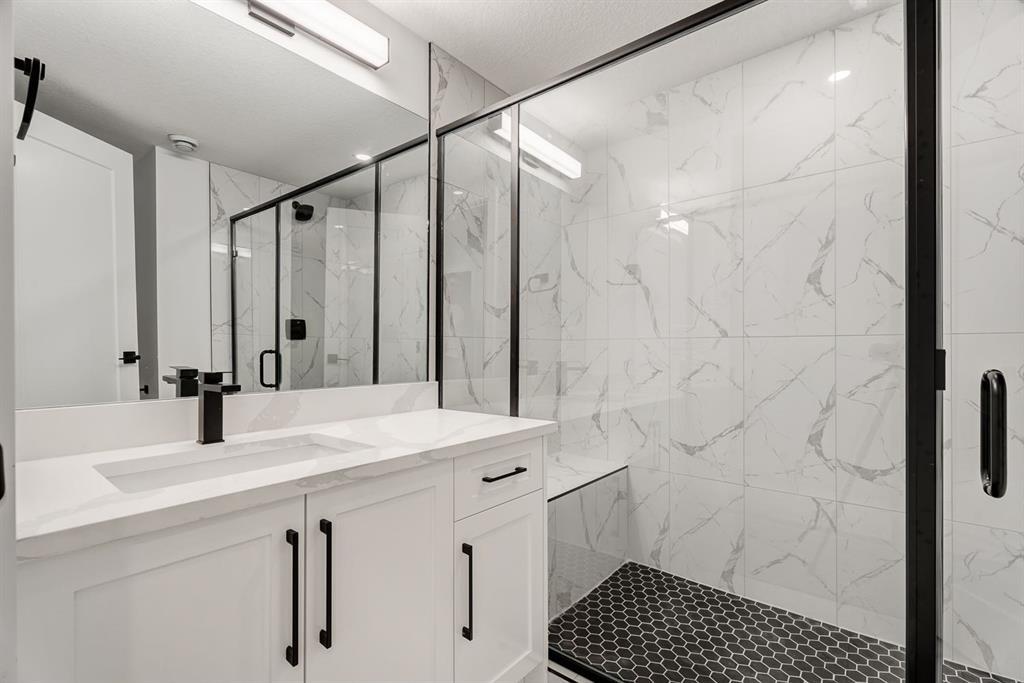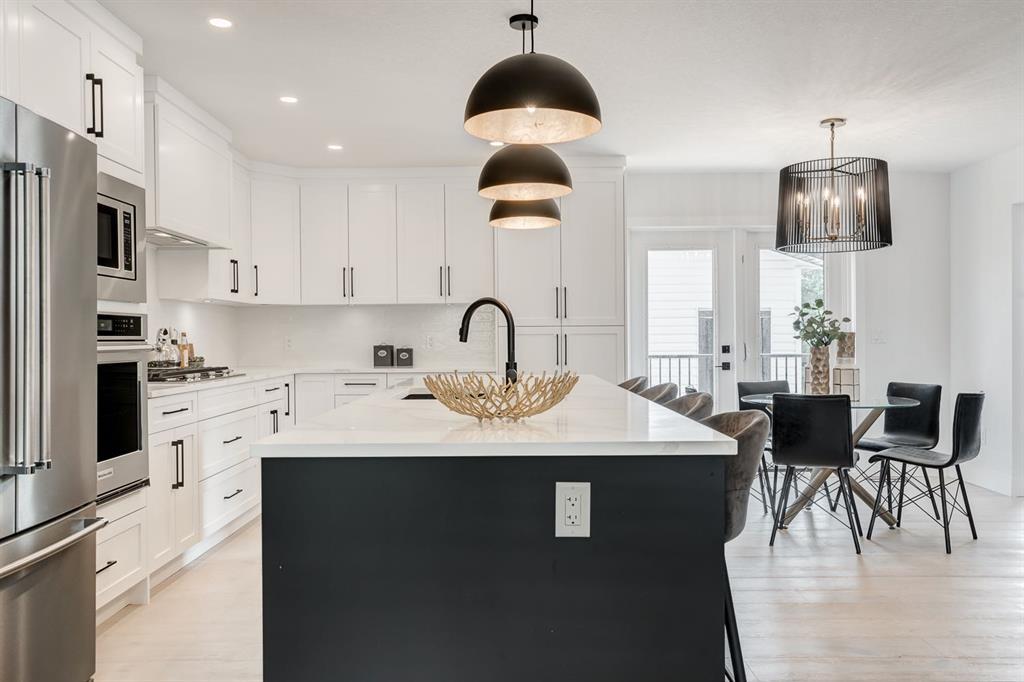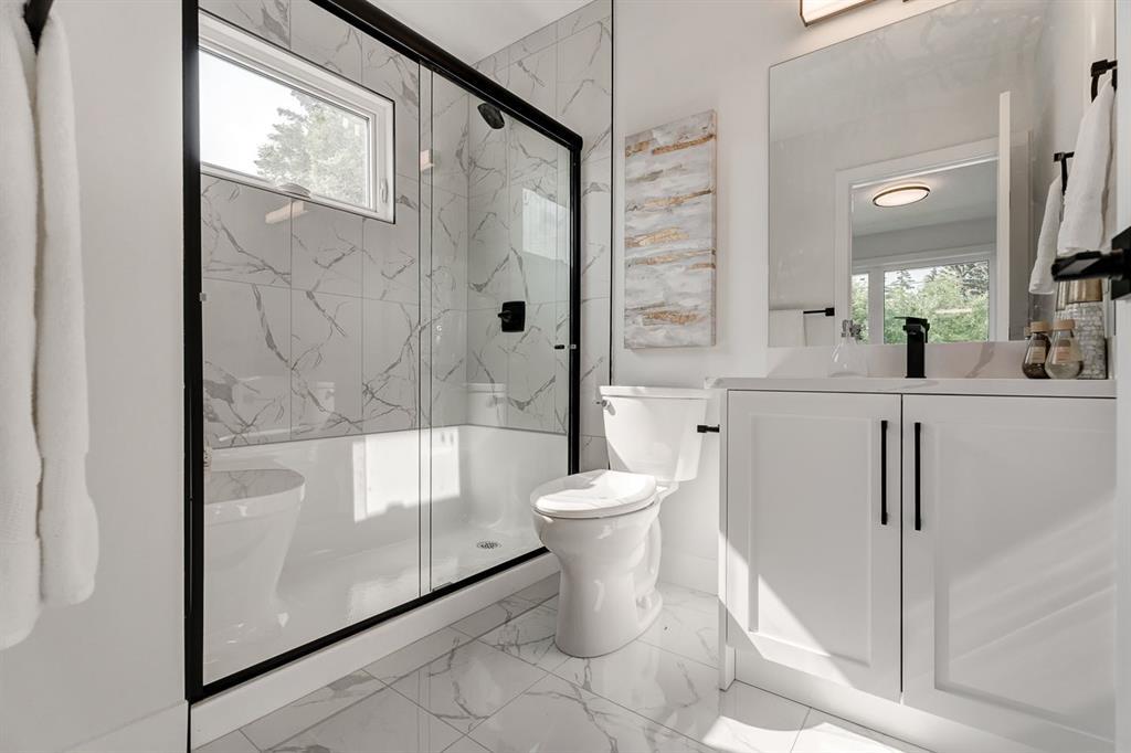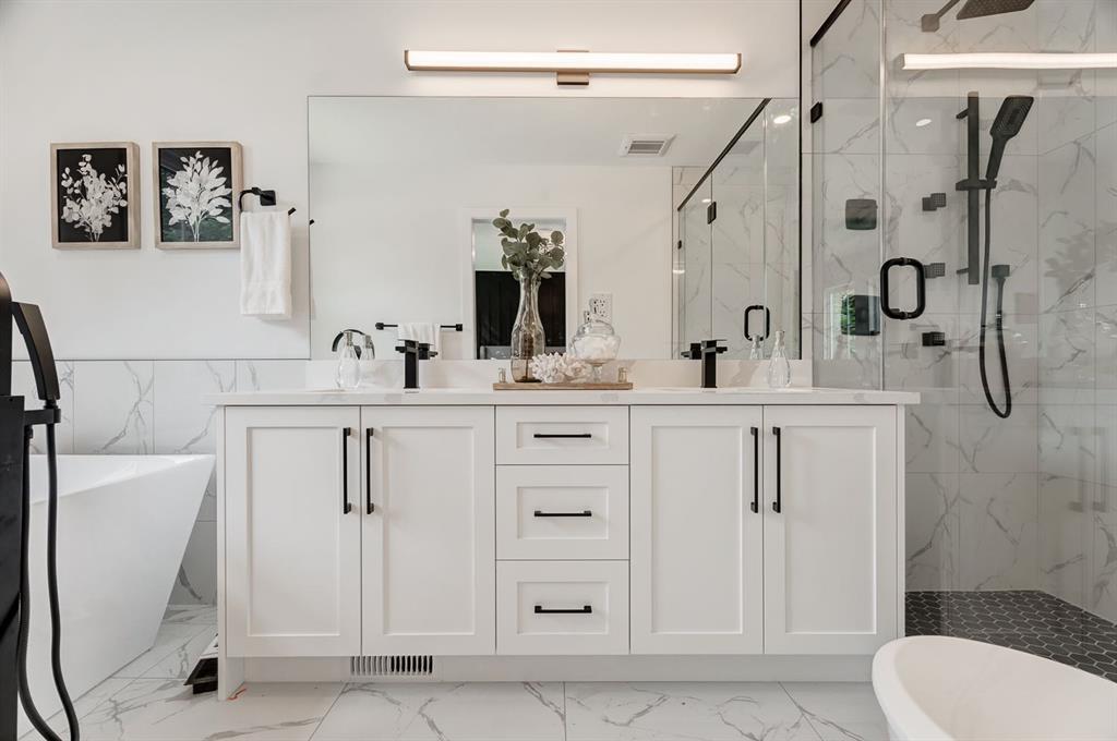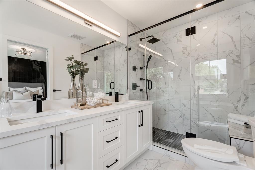 ***NEW PRICE **** Welcome to this customized Glenbrook gem, located in one of the best inner city communities in SW Calgary. This FULLY remodelled home offers spectacular value and an unbeatable design with a rich south facing backyard. You'll be blown away by the amount of space this home has to offer along with all the custom build-ins, boasting nearly 2300 Sq.ft of developed living space, this home featuring four beds including two primary suites on the main, four bathrooms, two laundry rooms and a convenient mudroom near the back entrance just off the double oversized garage. The home's exterior is finished in Hardie Panel boards paired with black fascia, soffits & gutters. The face of the home also pops and adds character from the aged red brick on the pillars and above the front door, giving this home a striking curb appeal. A double detached garage in the back is fully finished, making it perfect for those car enthusiasts. Once you step inside, you will be blown away by those massive windows letting in an immense amount of natural light. The foyer features a custom closet to store outdoor wear and also perfect for when guests arrive. Adjacent to the entrance is the open living room space with a north facing window, a custom entertainment unit and an electric fireplace to keep everyone happy. Beside the living room, we have the gourmet kitchen featuring floor-to-ceiling cabinetry, an oversized island with enough space to seat up to 6, KitchenAid appliances and quartz countertops. Across the kitchen will feature the formal dining space, complete with a patio door to the backyard and a designer light fixture. The mudroom is conveniently located steps from the garage. This floor features two master suites, the first being the largest. This suite offers ample space for a kingsize bed, a custom feature wall, custom light fixtures, a massive customized walk-in closet and a luxurious 5-piece ensuite featuring dual sinks, a free-standing soaker tub, plus a stand-up sh ower. The second suite offers ample space to fit a queen bed, a large window overlooking the backyard space, a customized walk in closet and a 3-piece ensuite. The lower living space is ideal for large families as it features a full laundry room with a sink, a large rec room with an entertainment unit, a convenient wet bar area, two additional large bedrooms and a shared 3-piece bathroom for family and guests. (id:22211)