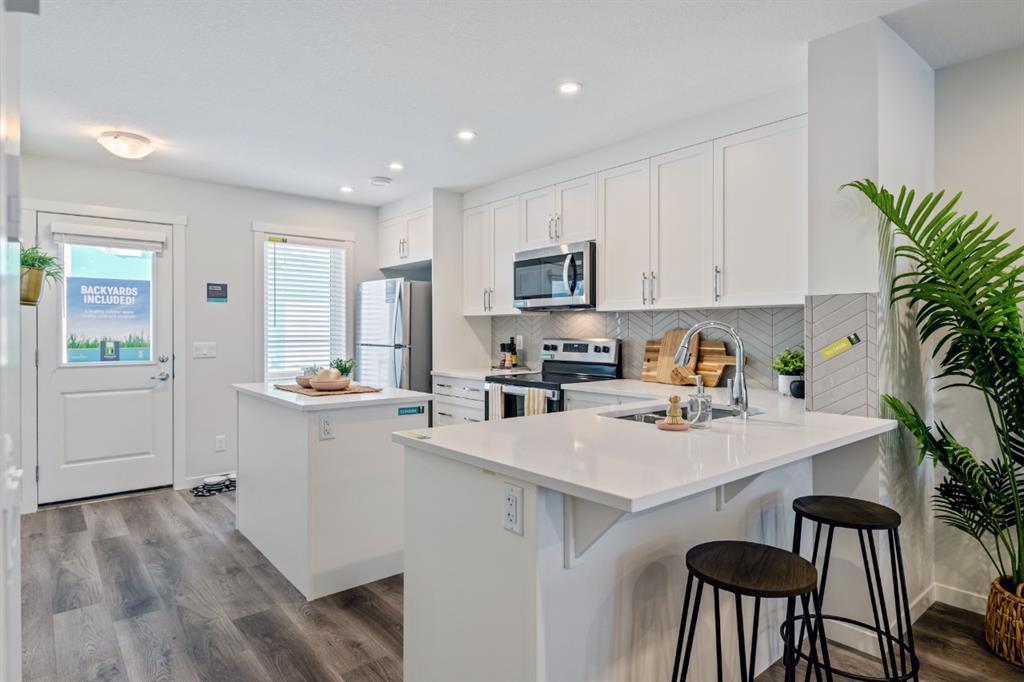 2 BEDROOMS, 2.5 BATHROOMS The Aston has all the comforts of a modern 2-storey home with an attached double tandem garage! The kitchen is well appointed with centre island. A convenient eating counter will be a perfect gathering spot for snacking and the open plan living and dining area is serviced by a half bath. The second floor provides two master bedrooms with en-suites – an attractive option for a roommate. A well-placed stackable washer/dryer and linen closet are also on this floor. Out back, family and friends can enjoy a private, fenced back yard – perfect for barbecues and summer fun. On the third level, a rooftop patio! If you choose, there is additional space can be developed and used as you wish! Seton is already established with an abundance of amenities including South Health Campus, shopping, restaurants, boutiques and the world’s largest YMCA, featuring a thrilling surf simulator, NHL sized ice rink, climbing wall and other activities the whole family will love. *Photos are representative* (id:22211)