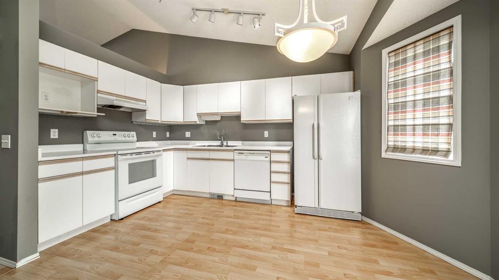 Terrific value in this 3 bedroom, 2 bathroom, bilevel townhouse in the Classics at Lake Sundance! Wonderful plan featuring a spacious living room with vaulted ceiling and large, east facing picture window and leading to a cheerful, white kitchen including white appliances and cabinetry. Two generous sized bedrooms, including the master bedroom, plus a 4 piece bath round out the upper level. Enjoy a huge family room with corner gas fireplace, 3rd bedroom, 3 piece bathroom and laundry room on the lower level. This great unit comes complete with a west facing 2 tiered deck and single attached garage. Welcome home! (id:22211)