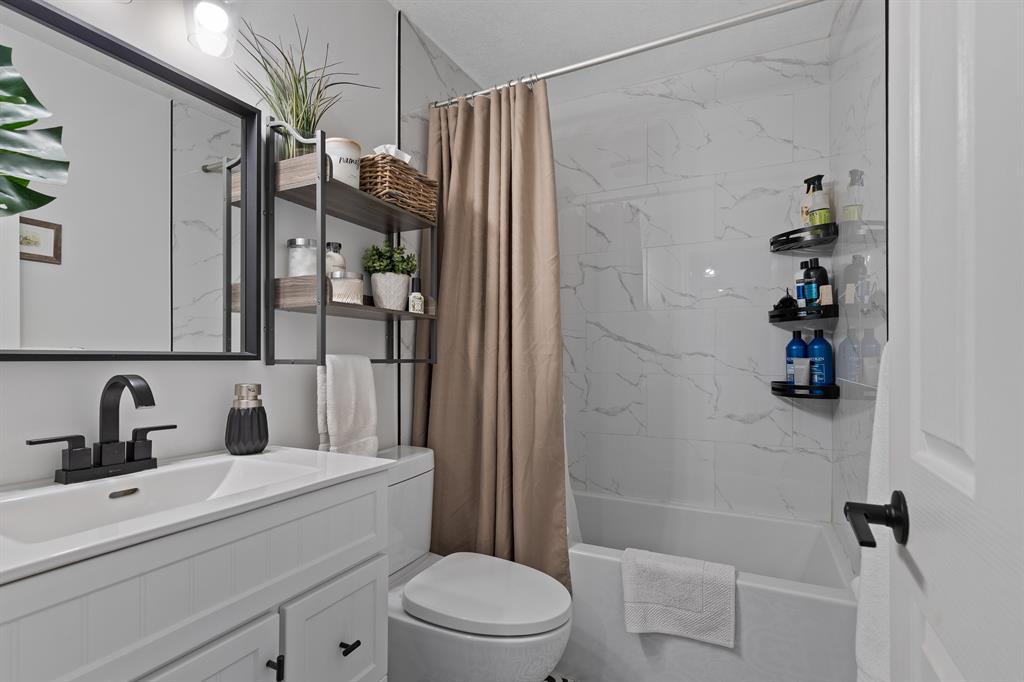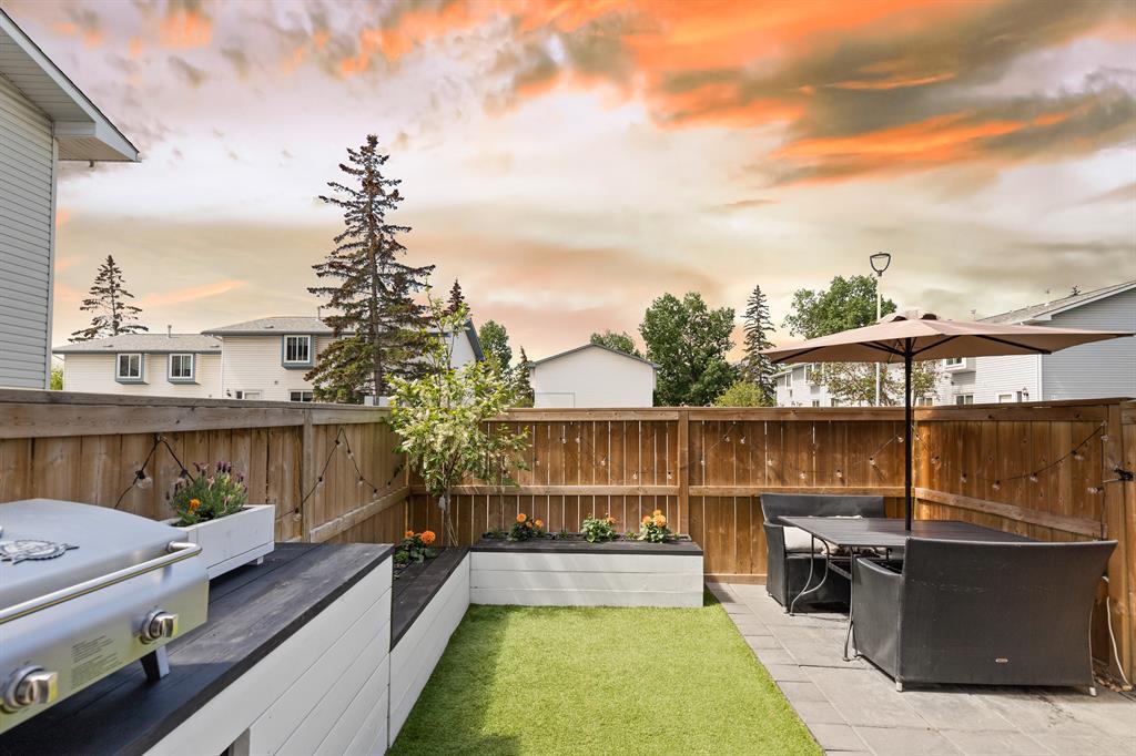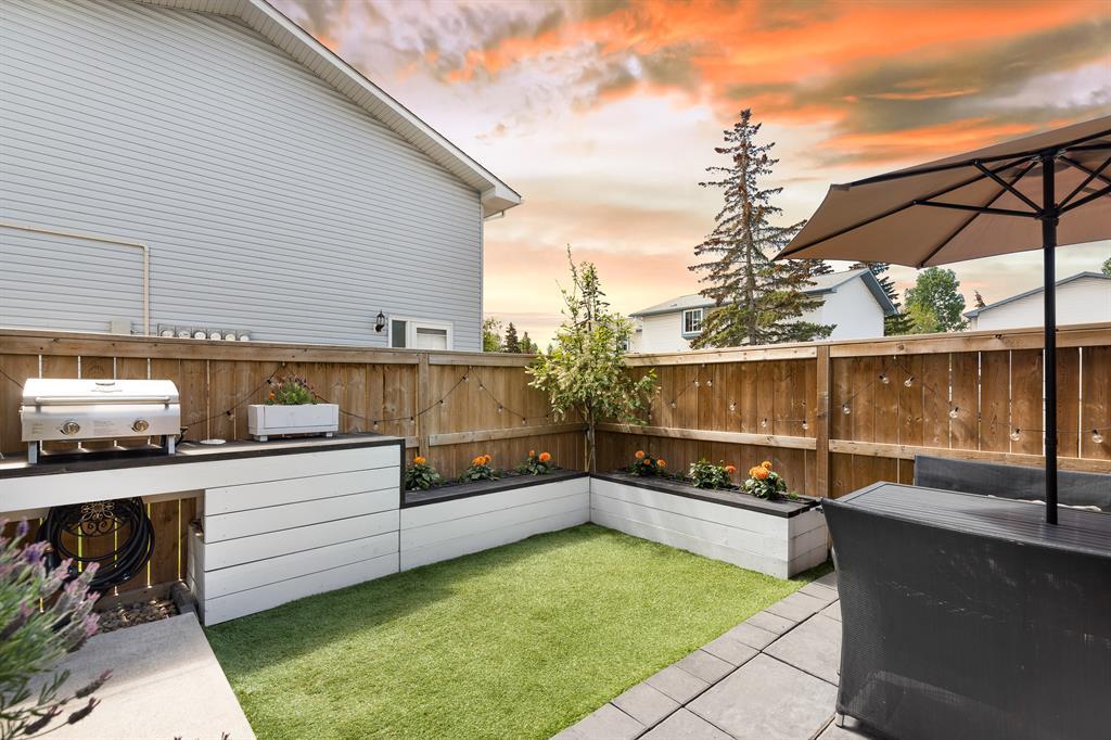 This amazing end unit townhome in the desirable community of Glamorgan is laid out to entertain. This beautifully renovated home has a large primary bedroom with a walk-in closet. The kitchen has all new hardware, fixtures, stainless steel appliances, quartz countertops and tile backsplash. The kitchen looks in to the gorgeous dining area and spacious living room which features a custom shiplap wall. The private, west facing backyard has been converted into a cozy, low maintenance oasis you won’t want to leave. The unfinished basement has potential to be a gym, game or movie room, it is up to you! There is a newer high efficiency washer and dryer, an oversized 50 gallon hot water tank (2021), as well as a custom workbench with plenty of storage space. The furnace was recently serviced and deemed to be in good shape. A new roof was installed on all the units in the last several years, as well as new fences (2019), and Telus FibreOptik (2021). This fantastic location offers a two minute drive to Westhills and Signal Hill Shopping Centres, several schools, playgrounds and parks, close access to public transportation, easy access to Sarcee, Stoney, and Glenmore, and only a 15 minute drive to downtown! (id:22211)