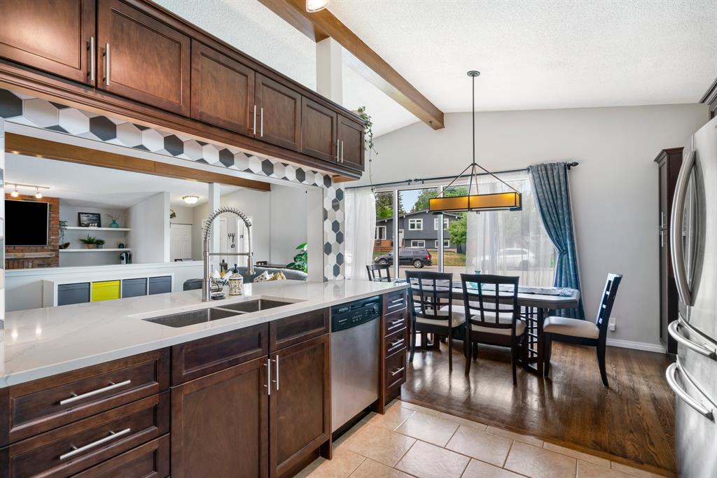 Welcome to 4828 Nipawin Crescent, located in the lovely community of North Haven! This 4-bedroom, 2-bathroom Bungalow features over 2200 sq ft of developed living space and has been renovated top to bottom over the recent years. When you enter the home, you will immediately notice that it is flooded with natural light. The vaulted ceilings showcase wood beams, giving the space a rustic-modern look. The main floor is open and features a wood burning fireplace complete with wood cubby and custom built-ins. The family room and dining room is central and makes for a perfect space to host friends and family. The kitchen has been updated with Stainless steel appliances and quartz counters, along with cabinets featuring remote lighting controlled through an app. The lower level was updated to include a large kitchen, Rec room, beautiful 3-piece bathroom, massive bedroom and a laundry room that is easily accessed by upstairs or downstairs. If you want to have guests come stay with you, this lower level will easily accommodate short or long-term stays. The yard is quite large and features gardens, concrete patio with an outdoor wood burning oven & a double swing gate at the back. The detached garage easily fits 2 vehicles and features a gas heater and a 220-volt plug (both installed in 2020). The furnace was replaced in 2013 as well as both hot water tanks in 2017. Book your appointment now to see this neighborhood gem! (id:22211)