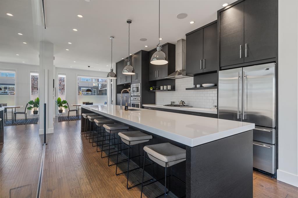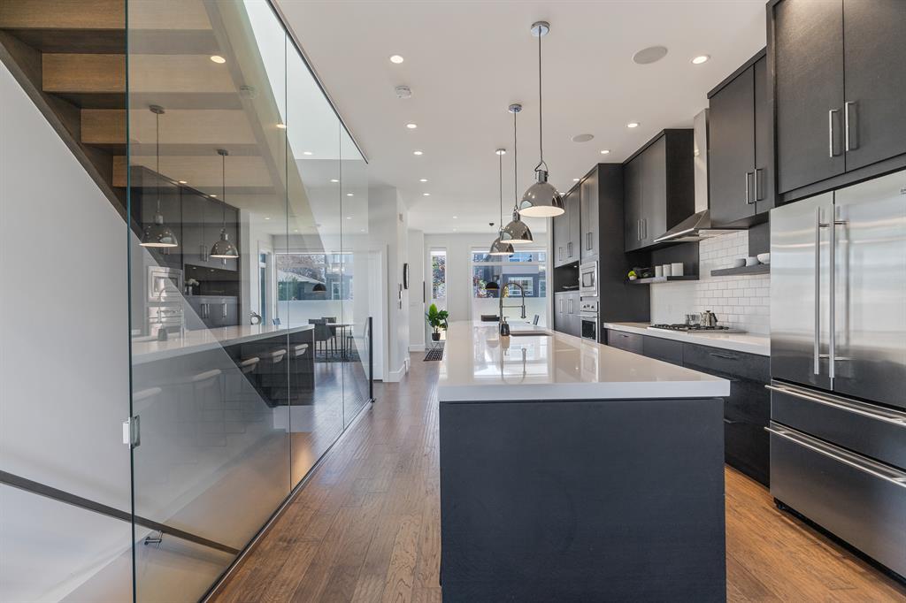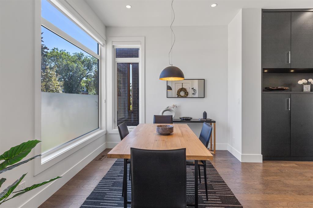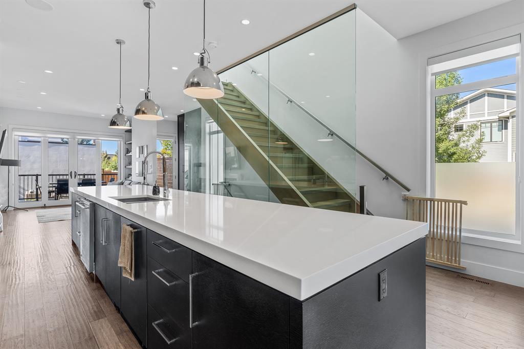 This is a stunning Executive family home located in the heart of Altadore, with a WEST-facing yard on a Corner Lot. The home features a beautiful and contemporary design with functional living at its core, offering 2,660sq. ft of living space. The 4 bedrooms with 4 bathrooms provide ample space for everyone to have their own private space. As you enter the home, you will notice the smoked ash oak Hardwood floors, open stairs with a full Wall Glass railing with open rise stairs, and stylish light fixtures illuminating the open and bright floor plan. The main floor boasts an open and spacious dining area encased in windows, a formal living area with a stunning Gas Fireplace, and access to the back Deck and Patio. The Gourmet Kitchen is sure to please any chef enthusiast with stainless steel appliances, ebony oak cabinets, Caesarstone countertops, and a large breakfast bar. The main floor also includes a mudroom and 2 piece powder room. Plus, enjoy the added luxury of a control 4 system equipped with 6 high quality speakers for an immersive audio experience. The upstairs features a vaulted ceiling in every room, including the gorgeous master retreat with huge windows, a large walk-in closet with access to attic storage, and a spa-like 5 piece ensuite with in-floor heat, soaker tub, and separate shower. Two additional bedrooms, laundry enclosed behind double barn doors, and a 3 piece main bath complete the upper level.The fully developed lower level includes a large family/recreation room with a bar area, 4th bedroom, 3 piece bath, and storage. In- floor heating throughout the basement provides the ultimate in home comfort and when temperatures rise, stay cool with refreshing air conditioning to beat the heat on even the sunniest of days. Whether you're looking to relax or entrain, this basement is the perfect setting, offering you the ultimate in-home experience. Beyond its attractive design and spacious interior, this home offers a range of appealing features, such as a deck and patio, and a convenient double detached garage. Not to mention, the backyard provides ample space for entertaining guests and allowing kids to play, while also offering an inviting and low maintenance outdoor living area fully fenced for privacy.The location of this home is ideal, as it is close to the vibrant Marda Loop, 2 golf courses, excellent schools, shopping, public transit, and just minutes to the core. Overall, this is a timeless and elegant executive family home that is sure to impress. (id:22211)