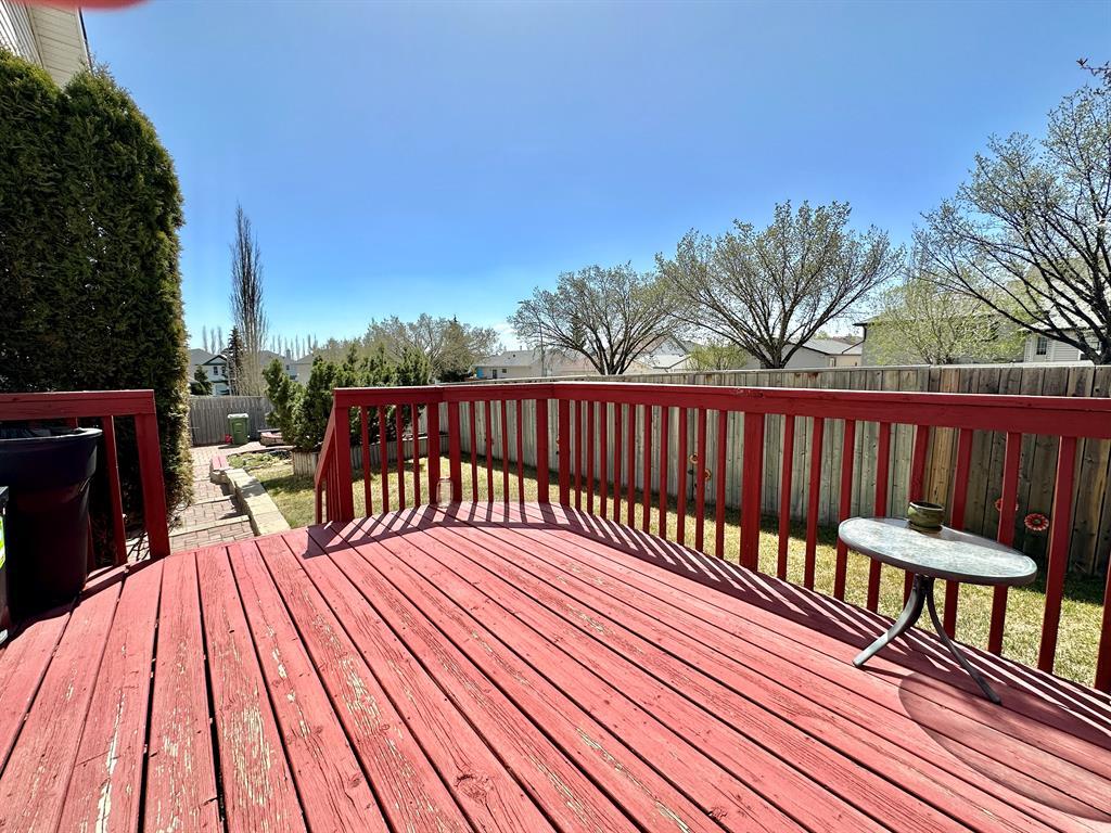 ***Back on the market! *** Welcome to this lovely 4-level split on a large corner lot, where the walk-out level brings you to a south-facing beautifully landscaped large yard. As soon as you walk in through the front door, you are greeted into a large sunny living room with vaulted ceilings. The living room gently nudges you through a semi-open concept kitchen and dining area with large windows to both sides. Noteworthy here is that the dining area opens up to your first deck where you can enjoy those morning sun-salutations in privacy followed by sun bathing with a cup of tea. Focusing back inside on the main level, a few steps to the upper floor (first level) is where the cheerful painted master bedroom has its own 4-pce ensuite. This level has an additional 2 bedrooms, and a 2nd full bathroom along with hallway closets to keep things organized for the whole family. Walk down from the upper floor, through the main floor, down to the 3rd level, you will enter into another beautiful sunlit and open floor space. This 3rd-level can be used as your heart desires, as it is a large space with a built-in bar in one corner and a beautiful brick-facing gas fireplace for those cold nights. This 3rd level has 2 large windows and the walkout space from the sliding patio doors into your gorgeous mature landscaped yard, with perennials, stone walkway into a gurgling little pond, wrapping around into a grassy green space and calming small trees. Back inside the home, the 4th level is where the developed basement provides more space, such as the laundry area, 2 extra rooms, a storage or craft room, and the utility space. This home shows extremely well with its 2 decks for you to enjoy warm summer nights and a large double detached garage! This home is located in the desirable community of Country Hills, near Vivo for Healthier Generations complex, a movie theater, public transportation, shopping, banks, parks and schools! This home has it all covered, call your favorite agent and book your showing today! (id:22211)