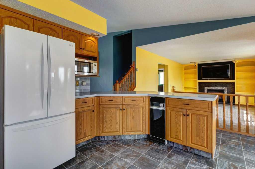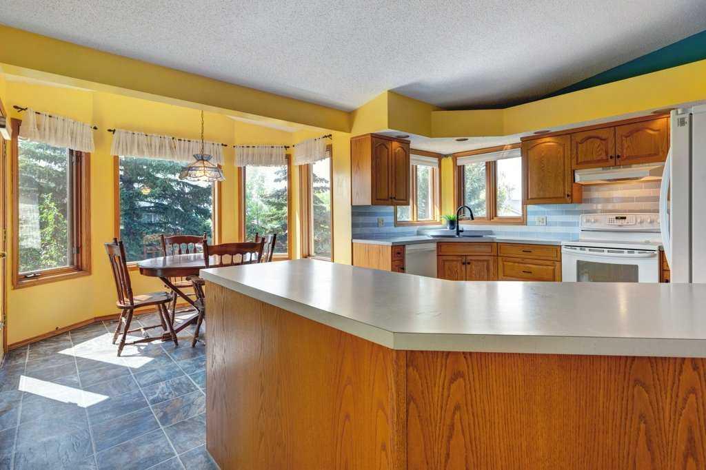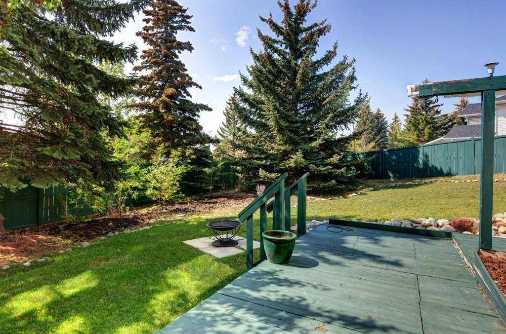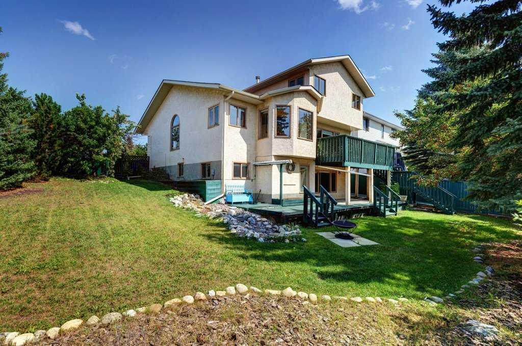 Your future looks bright in this 5 BEDROOM, WALKOUT basement home, sitting on a MASSIVE 755sqm PIE lot, siding pathways & nestled into the mature NW Calgary neighborhood of Hawkwood!! Step inside to high VAULTED ceilings and big beautiful windows, flooding the space with natural sunlight. The spacious Living Room looks out into the front yard that flows into a formal Dining room. As you're drawn into the Kitchen you'll find so much workspace with surrounding countertops & cabinetry, corner pantry, corner windows over the sink, matching appliances & an eating nook that's highlighted by the bay windows w/ garden door to the SW facing back deck! Overlooking the family room, perfect for entertaining, find a cozy FIREPLACE, anchored by built in shelving and another large window to enjoy even more natural sunlight. The Laundry room has great storage and is conveniently located on the main level as well as a 2-pc powder room, both close to the garage entryway w/ large closet. Upstairs, head into the inviting Primary suite with MOUNTIAN VIEWS that hosts a private ensuite w/ a standup shower, corner JET tub "as is", widespread vanity & provides lots of storage, plus a MASSIVE WALK-IN closet! Across the hall are 2 secondary bedrooms, one with built-in desk. There is a linen closet in the hallway & a polished 4-pc bathroom that's easy to share. The FINISHED WALKOUT BASEMENT provides any family with so much additional living space to entertain guests or stretch out and relax with family. An impressive Rec Room overlooks the backyard & opens out to the scenic backyard space and lower covered patio. Off the Rec room is a quiet Den space, perfect for a home office or hobby room, as well as 2 MORE BEDROOMS, both with lots of natural light, 1 accommodates a WALK-IN closet & these two bedrooms are conveniently separated by a 3-pc bathroom. Additional storage under the stairs is a great place to tuck everything away. The DOUBLE ATTACHED Oversized 20x22'3 garage has high ce ilings and a man door to the side of the home. Outside is an enjoyable oasis, that's treed in for privacy, while you sit on the upper deck in the sunshine or the COVERED lower cement patio that takes in the views of a gorgeous water feature & fully fenced, SW PIE LOT backyard. This house is settled into the perfect place within the community and ready for a fresh start with a new family! Please note that the furnaces are original and in working order. Call today for your private viewing!! (id:22211)