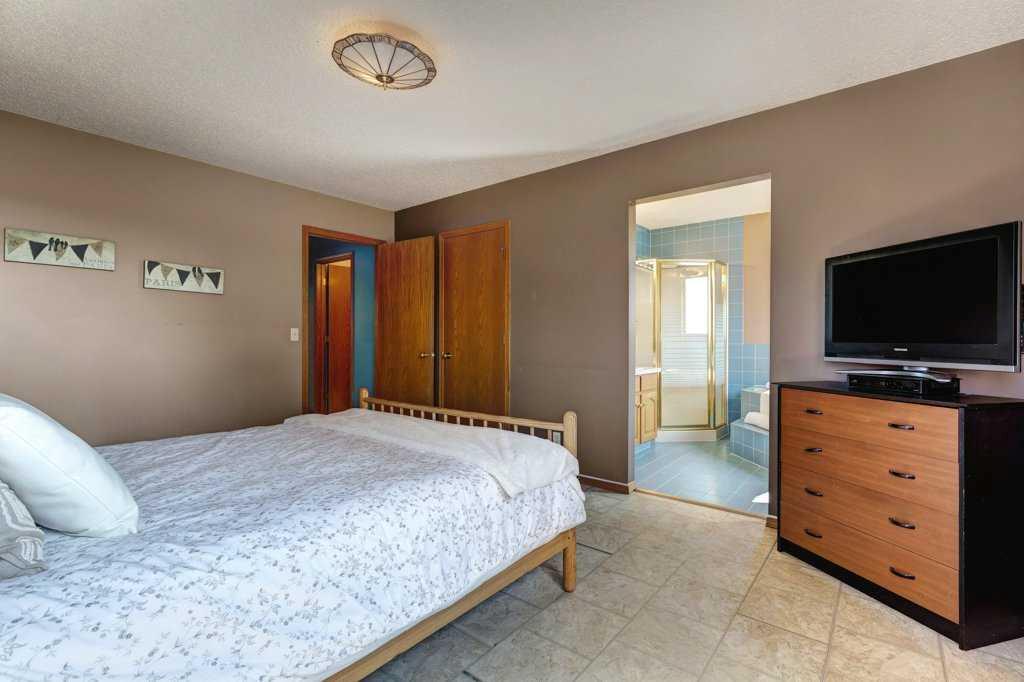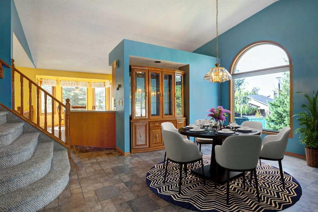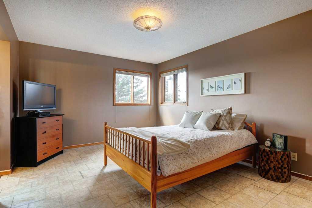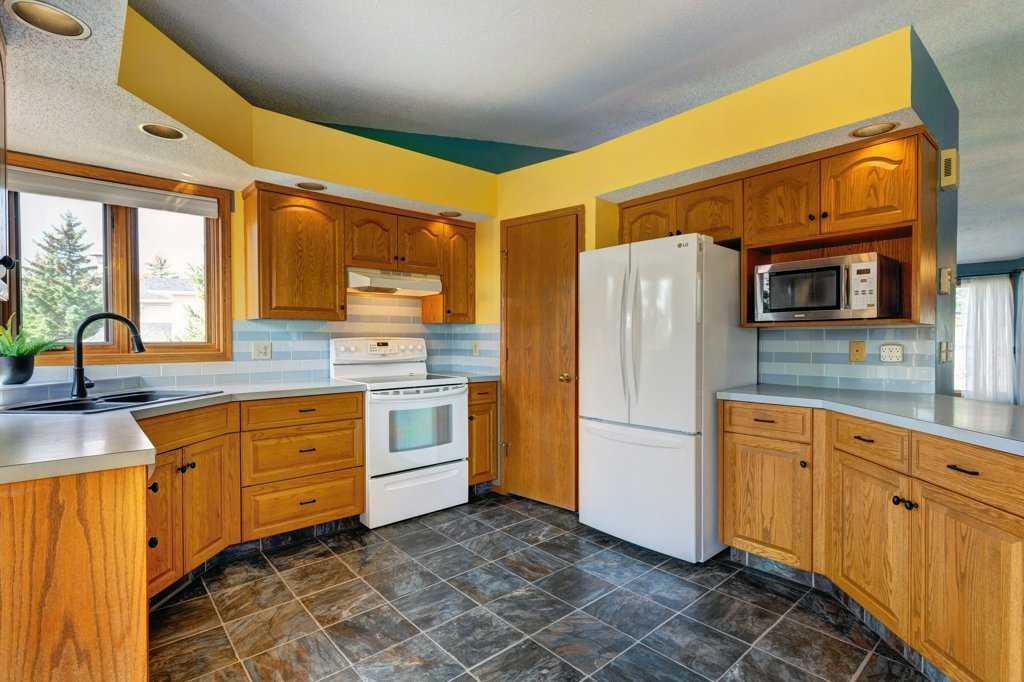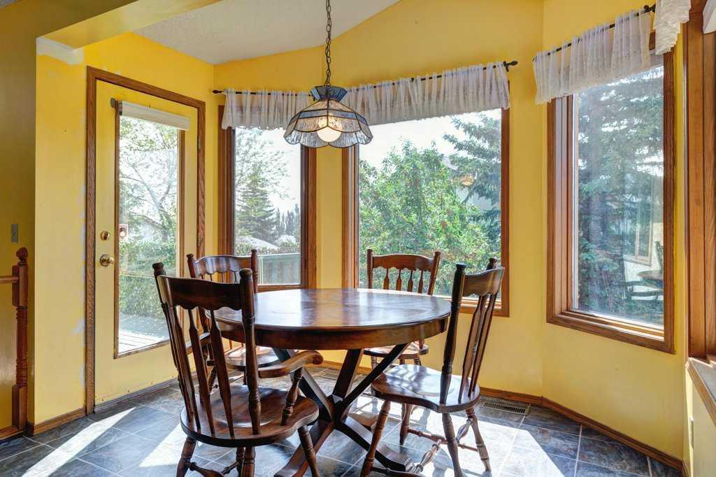 Your future looks bright in this 5 BEDROOM, WALKOUT basement home, sitting on a MASSIVE 755sqm PIE lot, siding pathways & nestled into the mature NW Calgary neighborhood of Hawkwood!! Step inside to high VAULTED ceilings and big beautiful windows, flooding the space with natural sunlight. The spacious Living Room looks out into the front yard that flows into a formal Dining room. As you're drawn into the Kitchen you'll find so much workspace with surrounding countertops & cabinetry, corner pantry, corner windows over the sink, matching appliances & an eating nook that's highlighted by the bay windows w/ garden door to the SW facing back deck! Overlooking the family room, perfect for entertaining, find a cozy FIREPLACE, anchored by built in shelving and another large window to enjoy even more natural sunlight. The Laundry room has great storage and is conveniently located on the main level as well as a 2-pc powder room, both close to the garage entryway w/ large closet. Upstairs, head into the inviting Primary suite with MOUNTIAN VIEWS that hosts a private ensuite w/ a standup shower, corner JET tub "as is", widespread vanity & provides lots of storage, plus a MASSIVE WALK-IN closet! Across the hall are 2 secondary bedrooms, one with built-in desk. There is a linen closet in the hallway & a polished 4-pc bathroom that's easy to share. The FINISHED WALKOUT BASEMENT provides any family with so much additional living space to entertain guests or stretch out and relax with family. An impressive Rec Room overlooks the backyard & opens out to the scenic backyard space and lower covered patio. Off the Rec room is a quiet Den space, perfect for a home office or hobby room, as well as 2 MORE BEDROOMS, both with lots of natural light, 1 accommodates a WALK-IN closet & these two bedrooms are conveniently separated by a 3-pc bathroom. Additional storage under the stairs is a great place to tuck everything away. The DOUBLE ATTACHED Oversized 20x22'3 garage has high ce ilings and a man door to the side of the home. Outside is an enjoyable oasis, that's treed in for privacy, while you sit on the upper deck in the sunshine or the COVERED lower cement patio that takes in the views of a gorgeous water feature & fully fenced, SW PIE LOT backyard. This house is settled into the perfect place within the community and ready for a fresh start with a new family! Please note that the furnaces are original and in working order. Call today for your private viewing!! (id:22211)